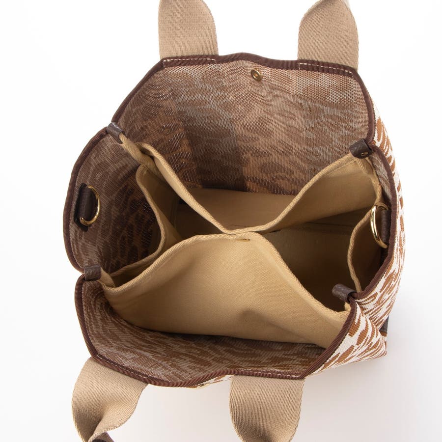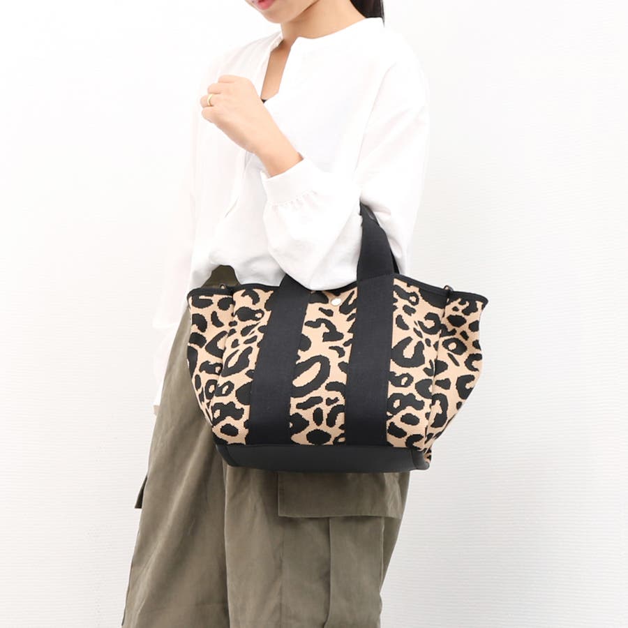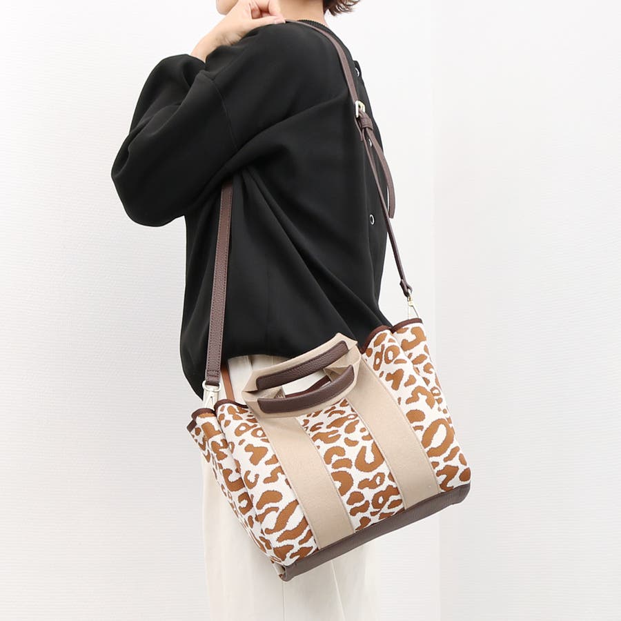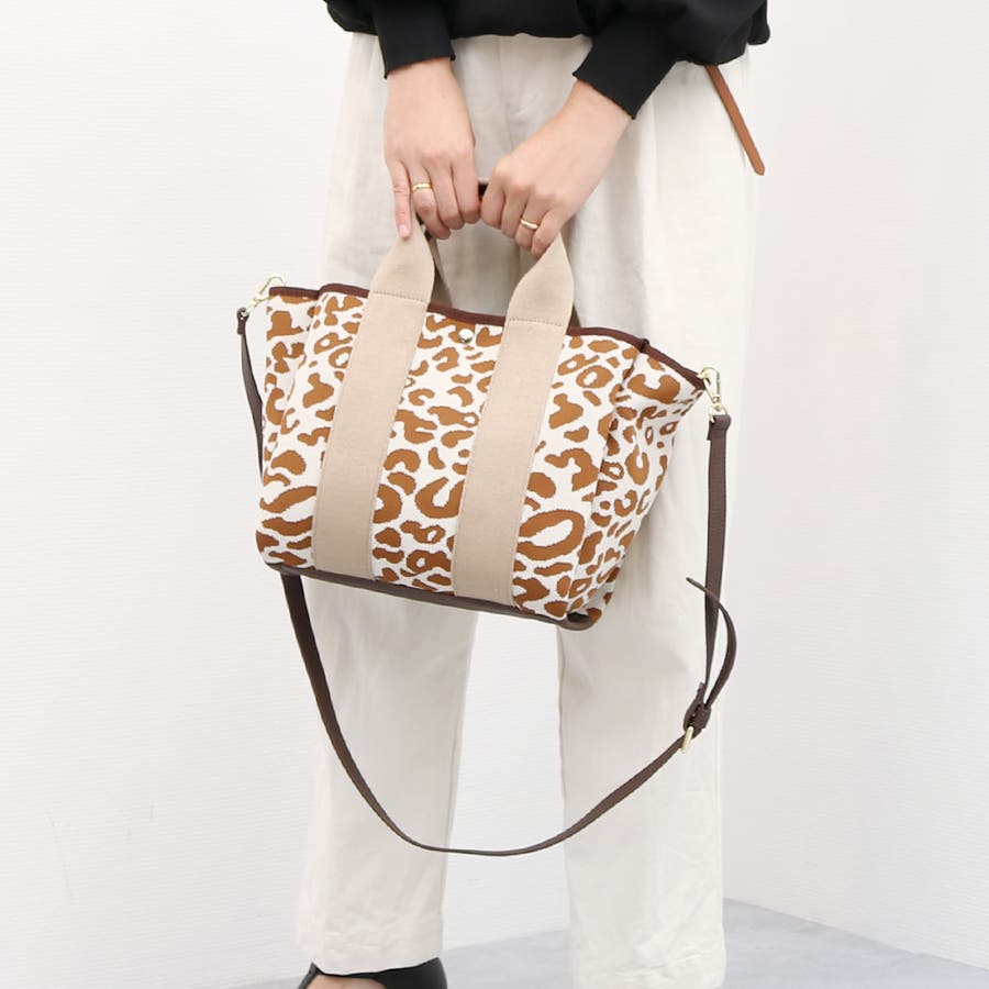 ヒョウ柄や幾何学模様のジャガードの2wayトートバッグ。