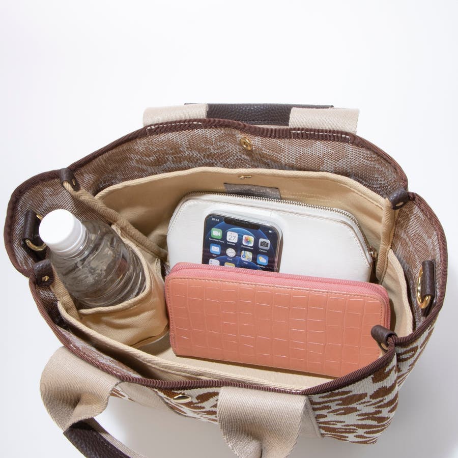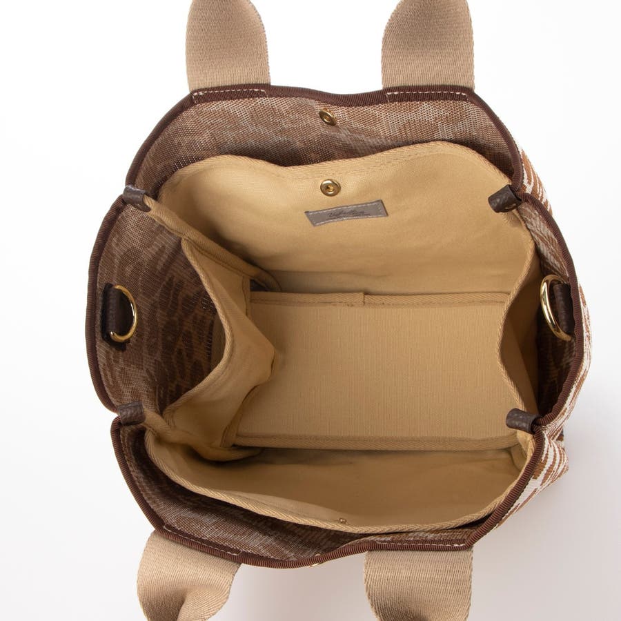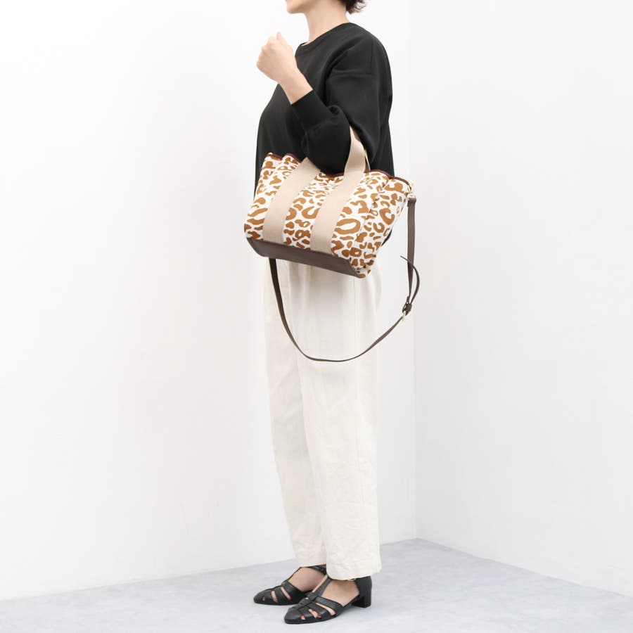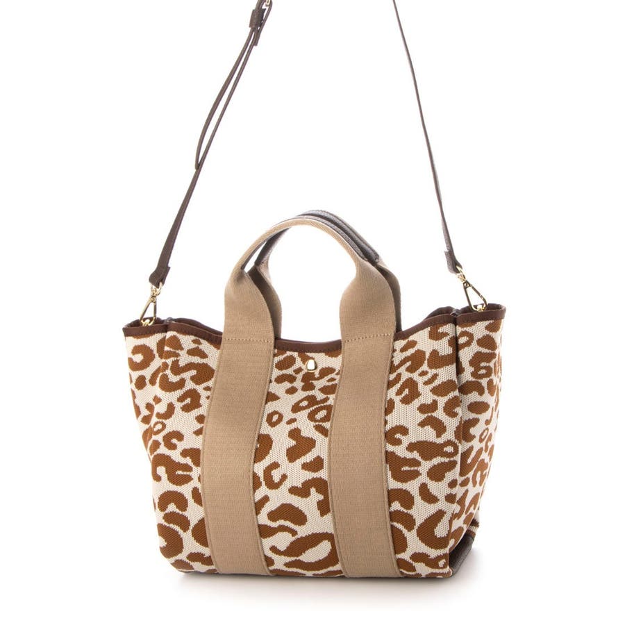 ヒョウ柄や幾何学模様のジャガードの2wayトートバッグ。