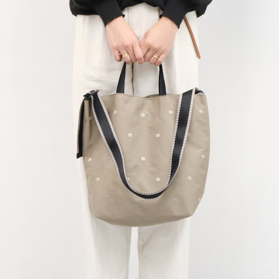 シンプルな2wayショルダーに生地同色のドット刺繍を施しさりげなくかわいさをプラスしました。