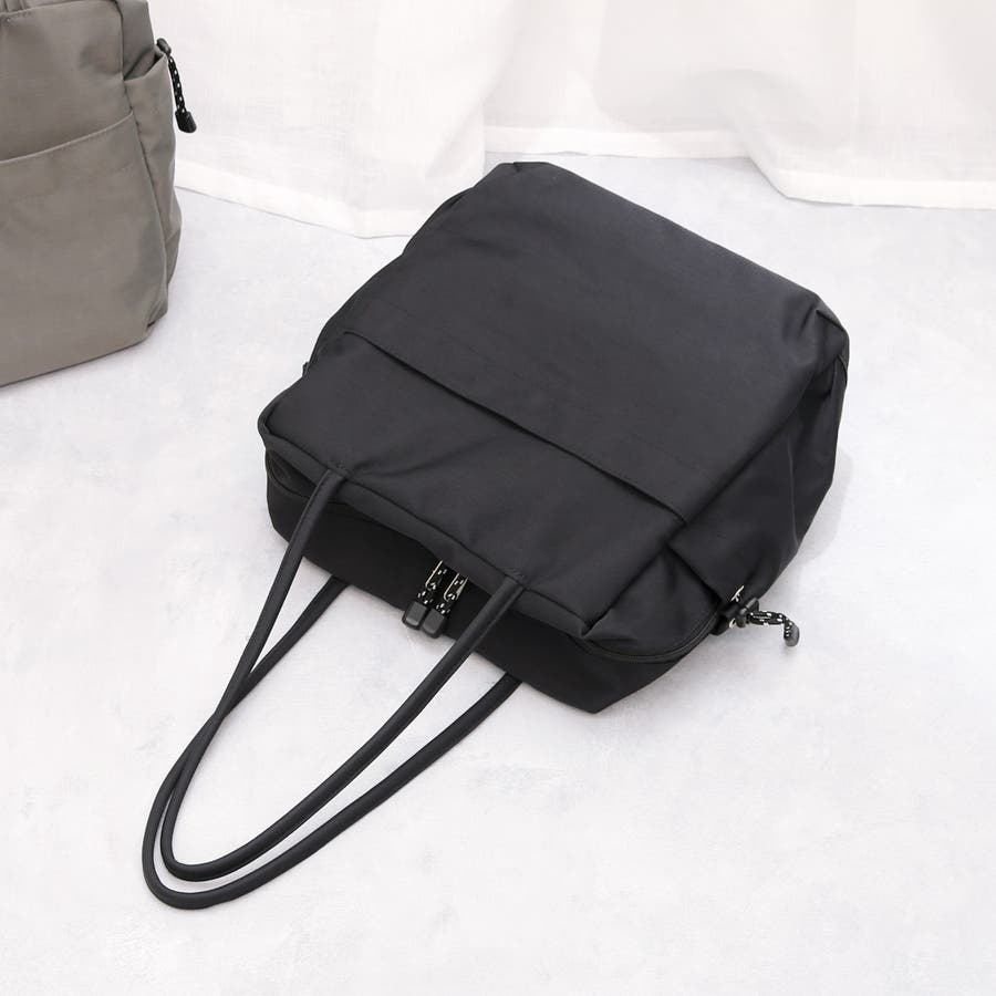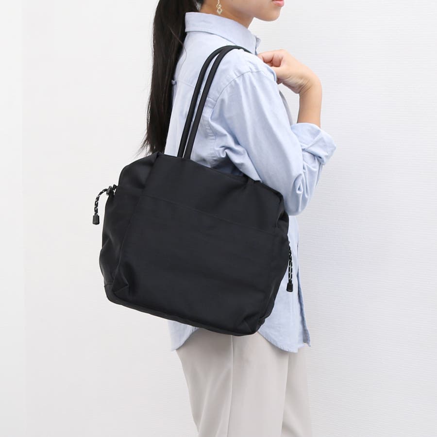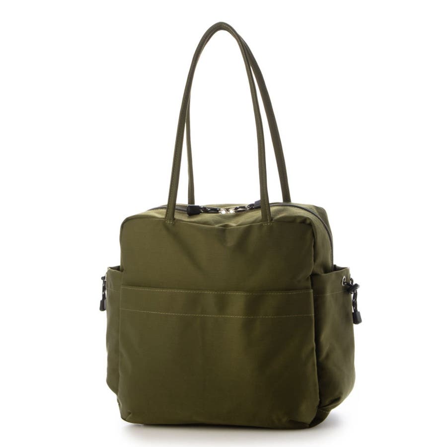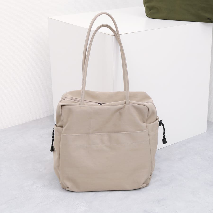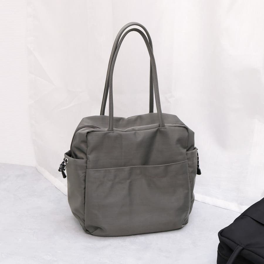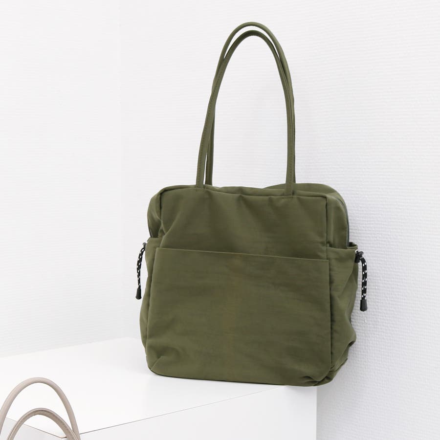 スクエア型のシンプルな形のナイロントートバッグ。