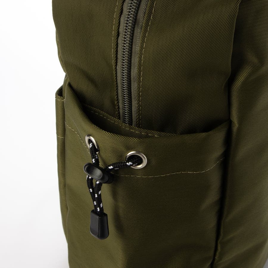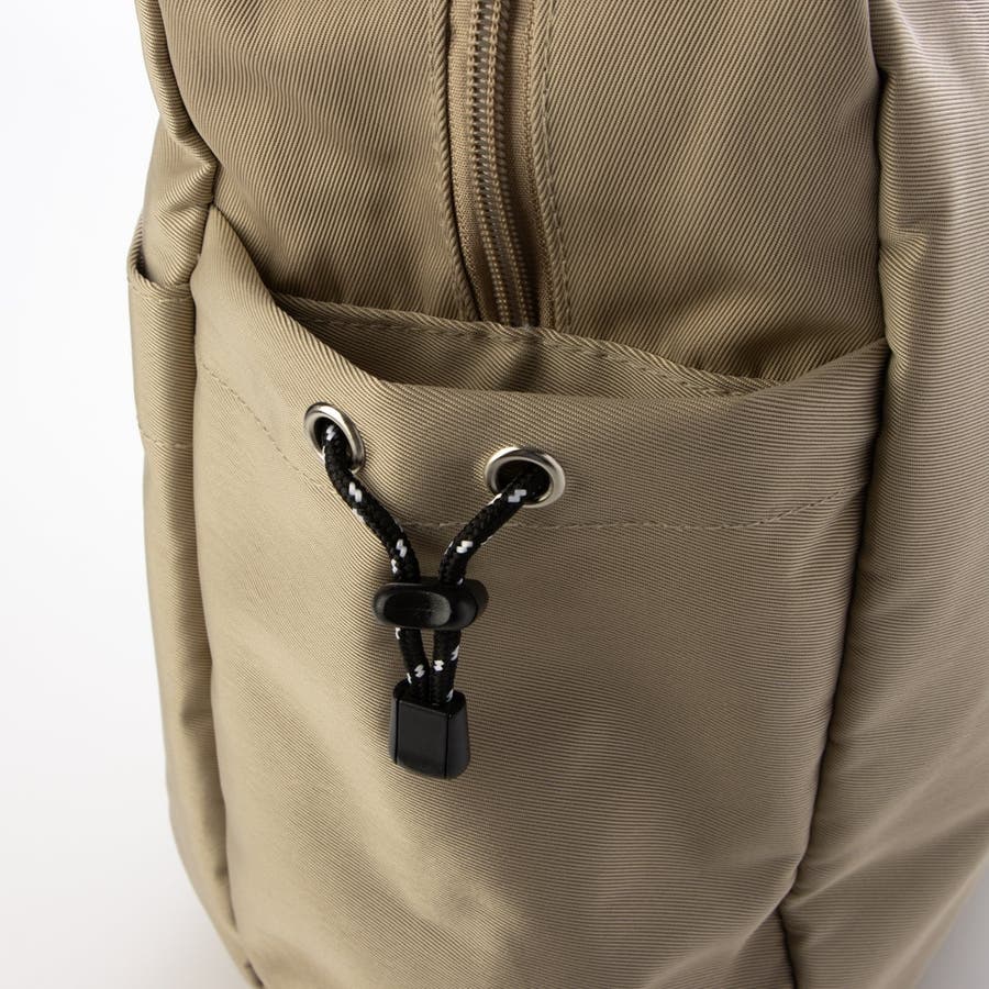 外ポケット部分にアウトドアテイストのコードを使い、ちょっとしたアクセントになっています。