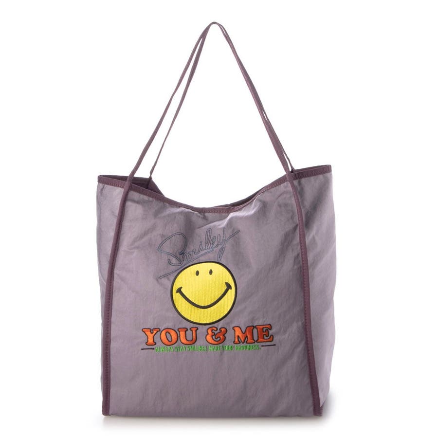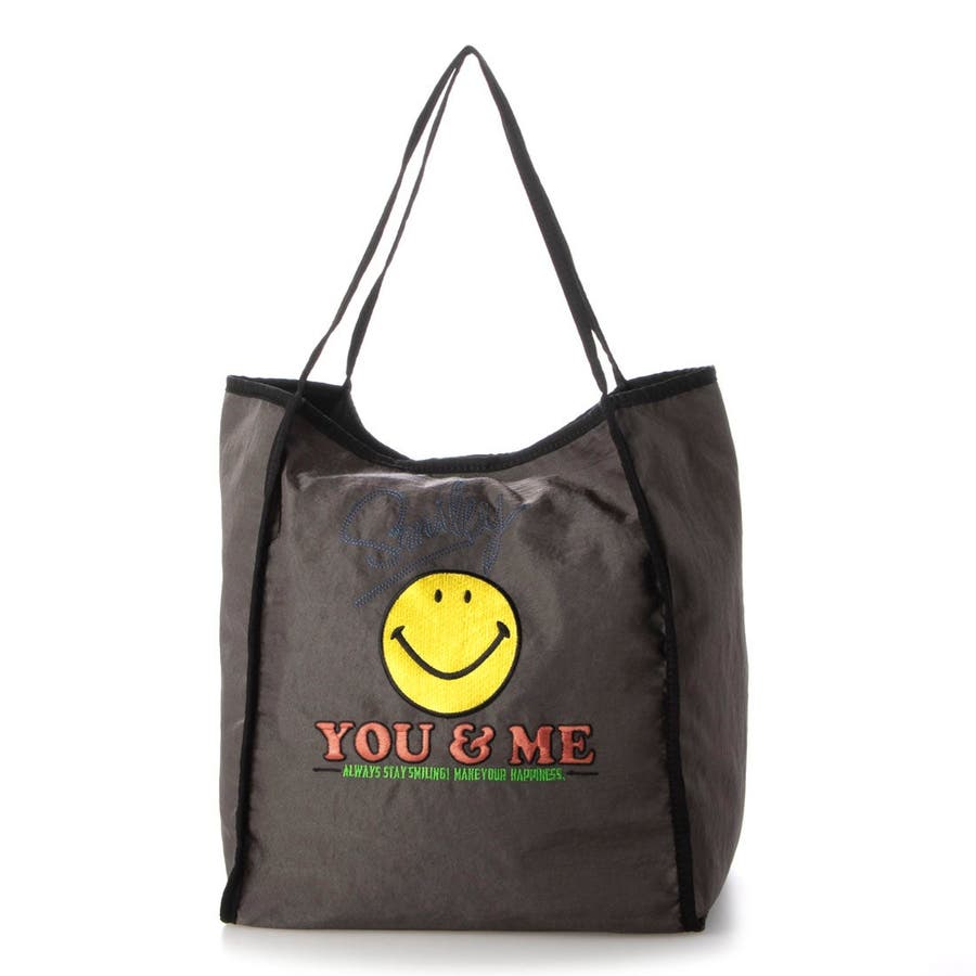 持つだけでみんながハッピーになれそうなスマイルモチーフを刺繍したトートバッグ。