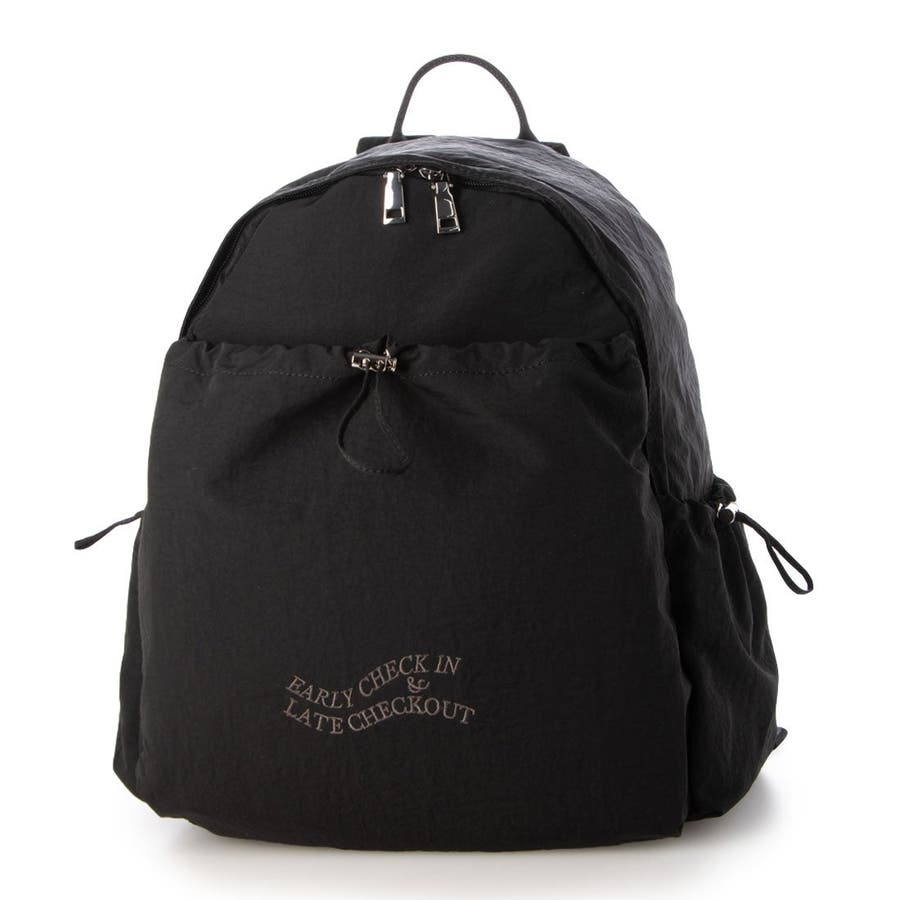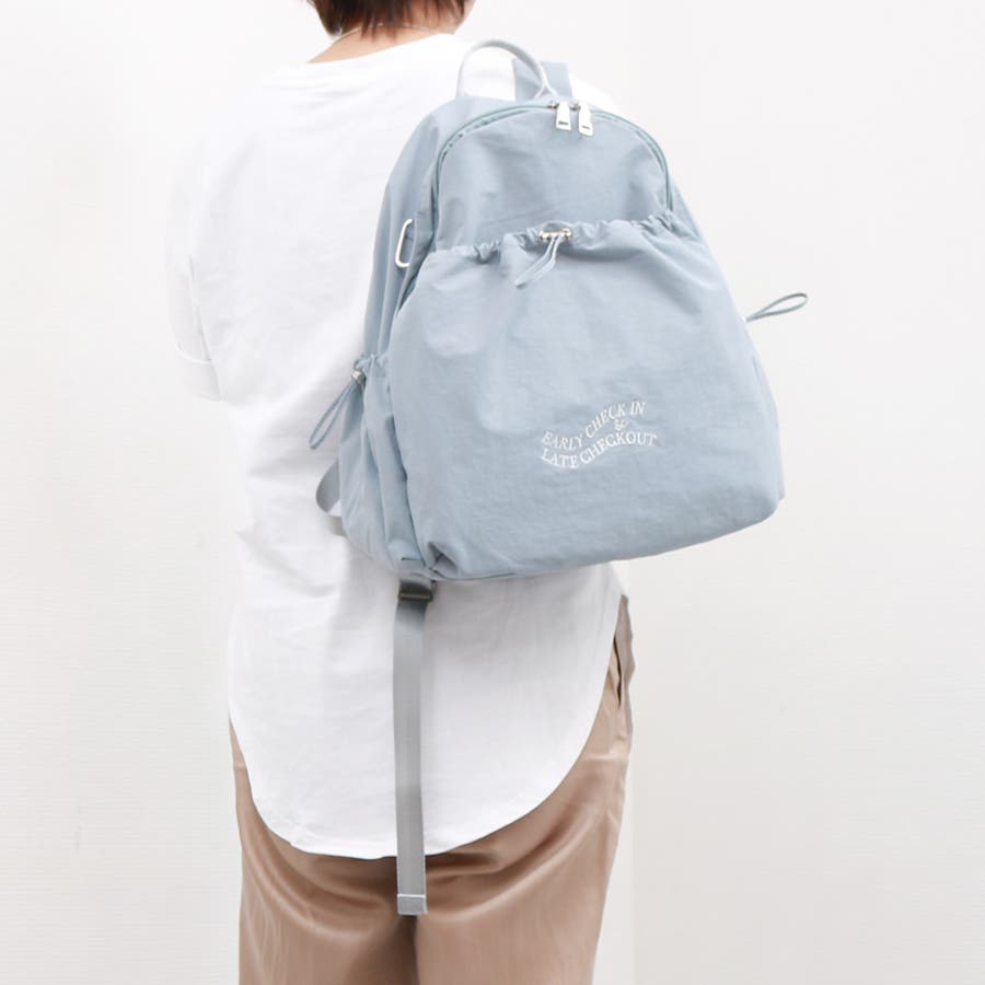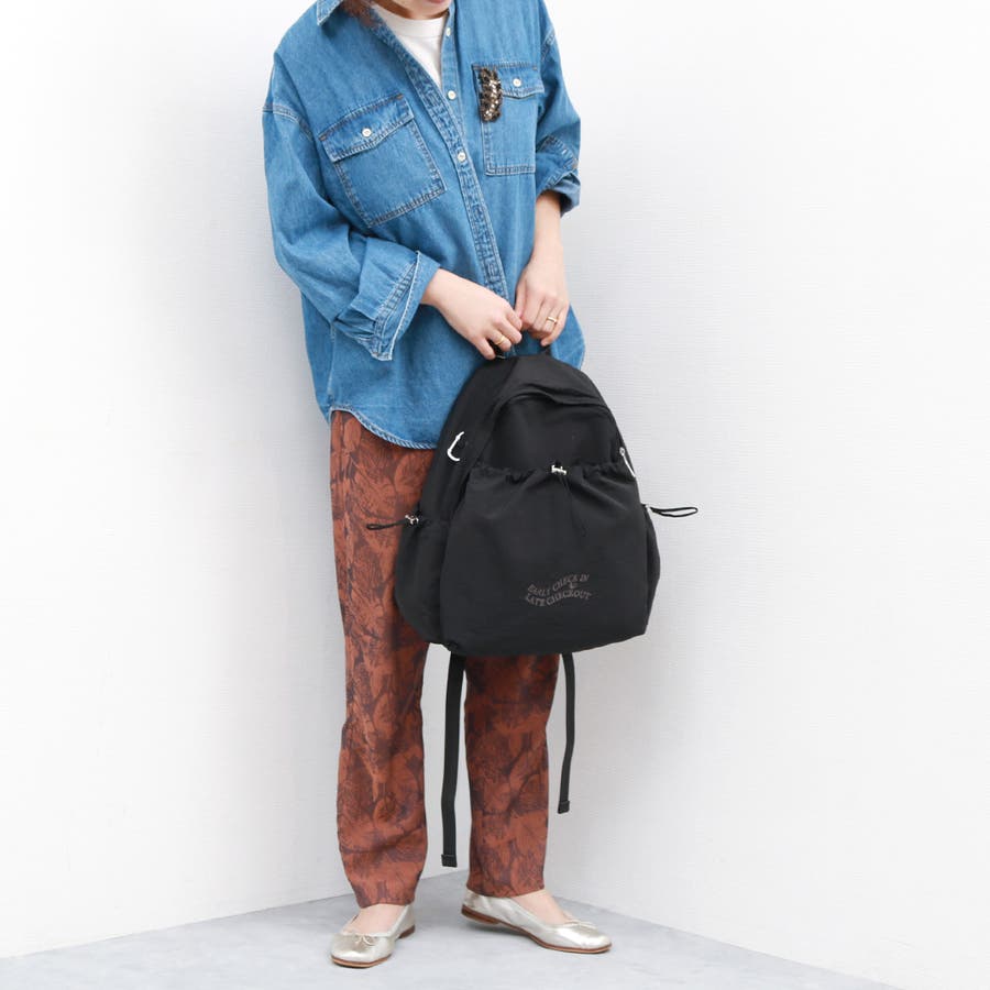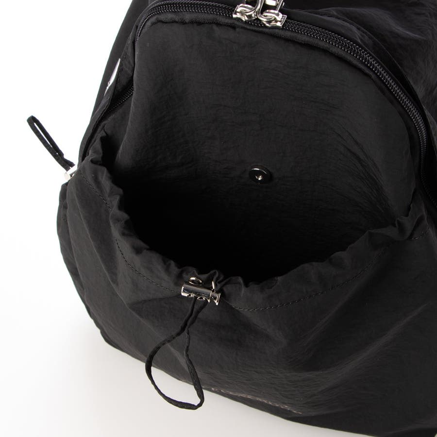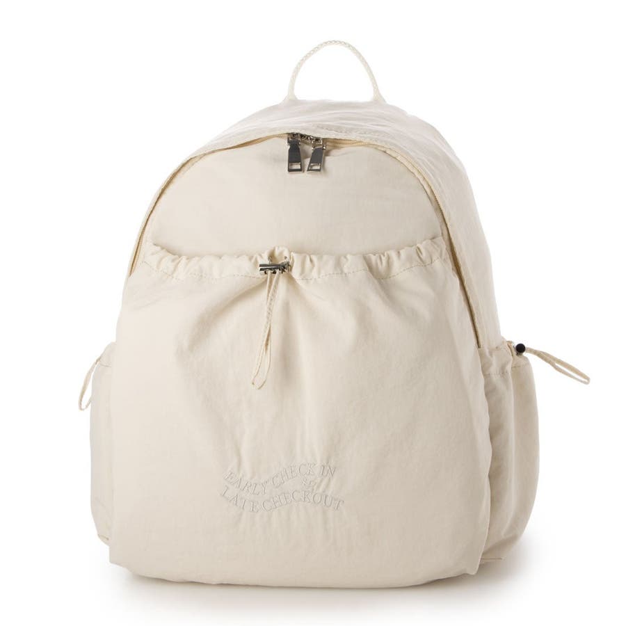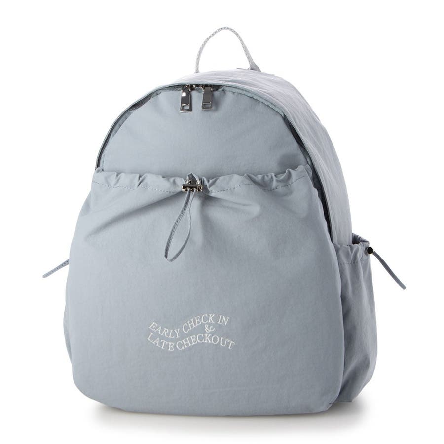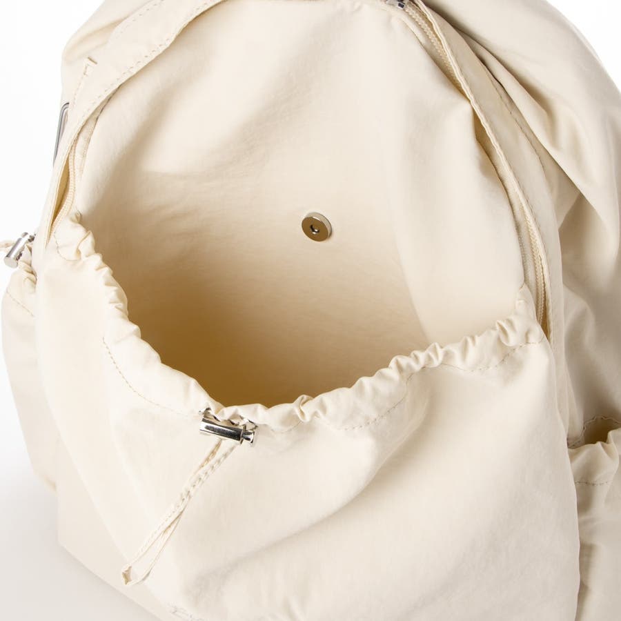 キュっと絞ったポケット部分のドロストとコロンとしたシルエットがかわいいリュックサック。