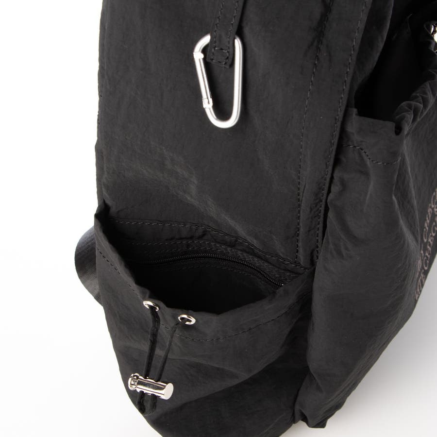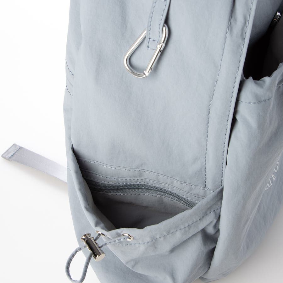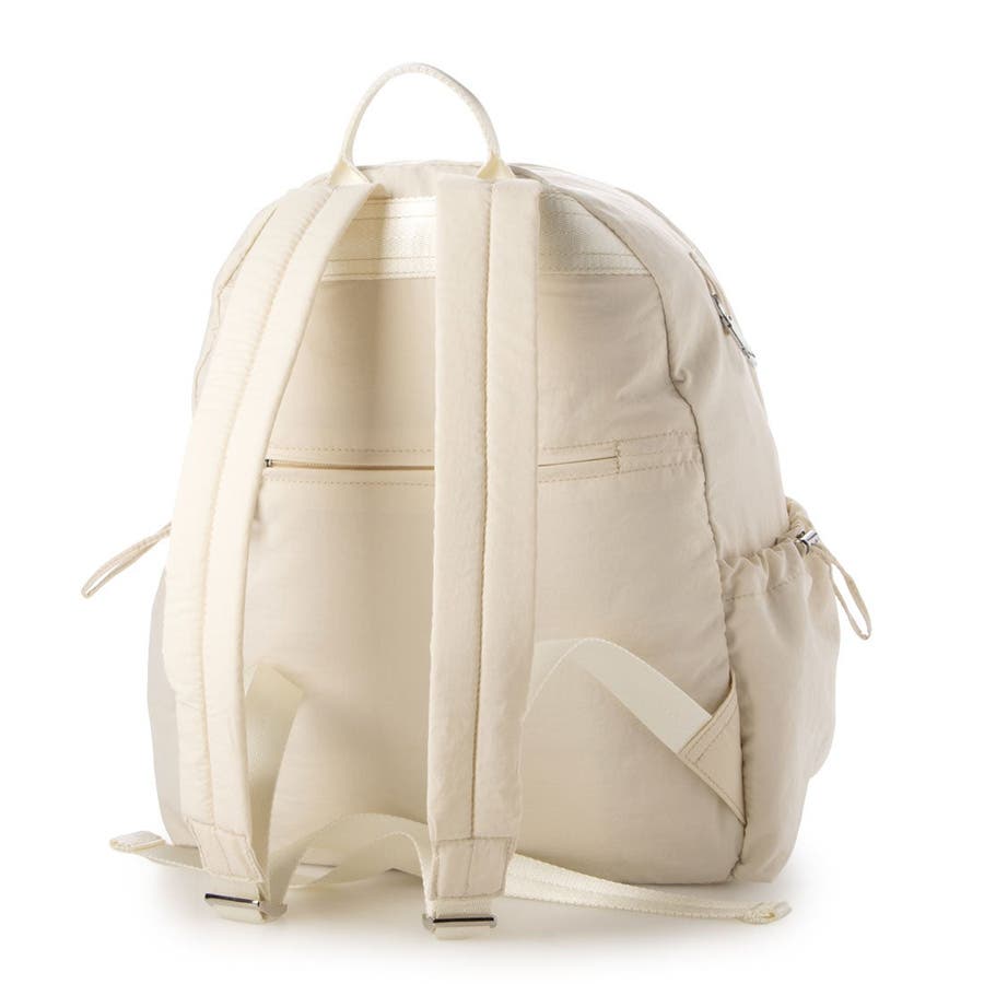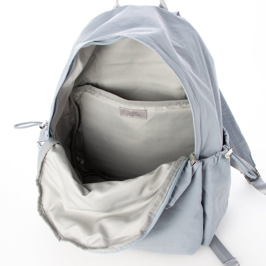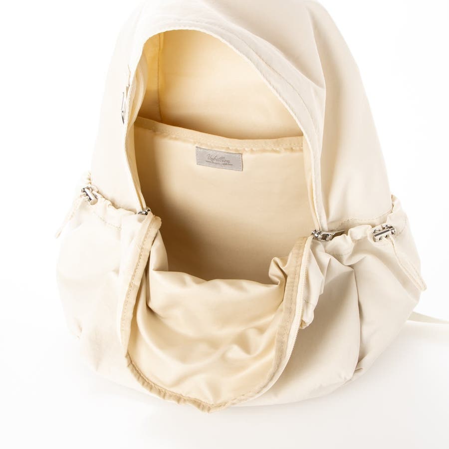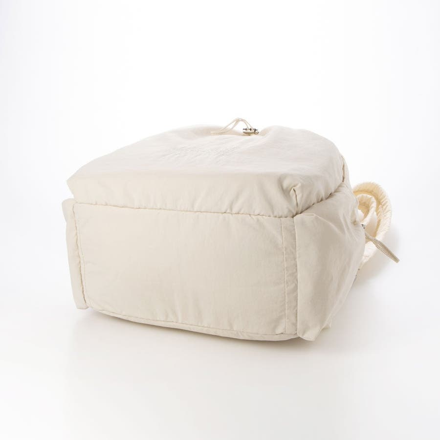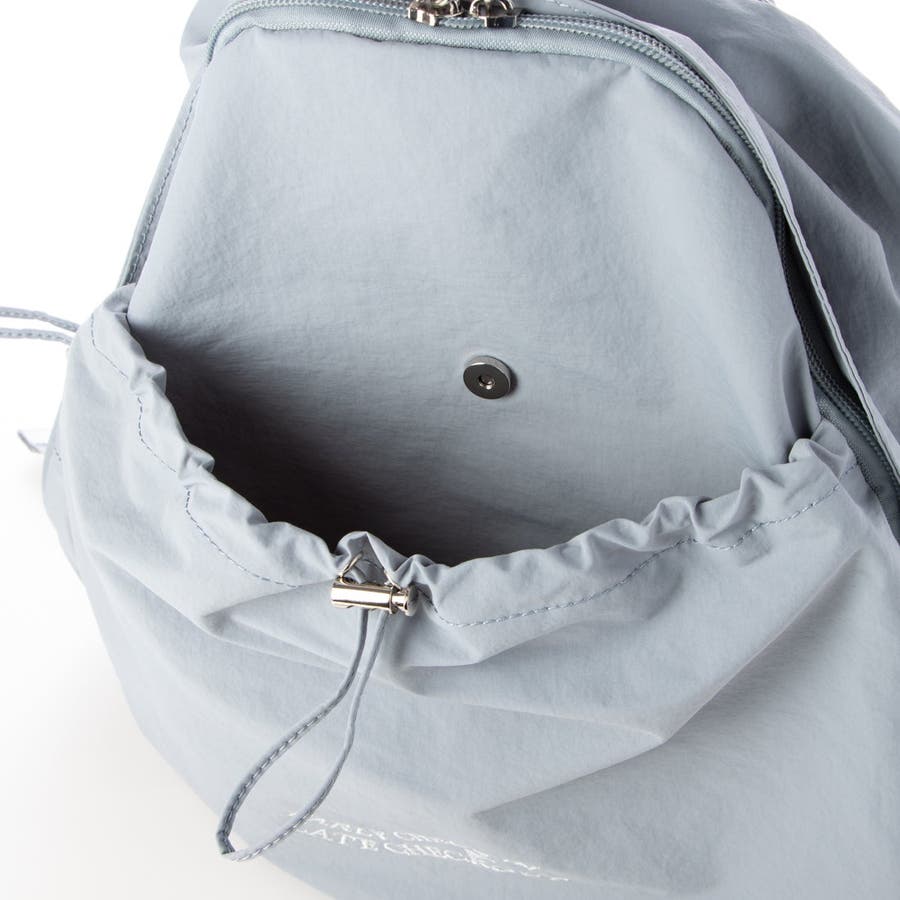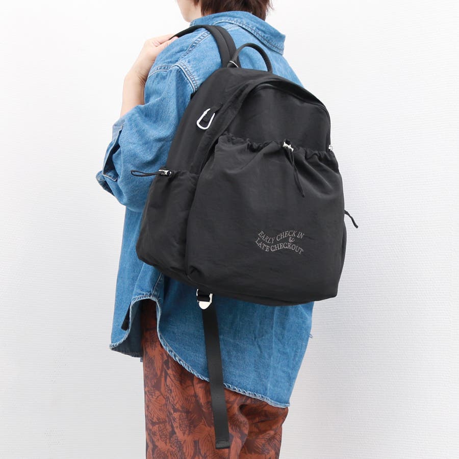 キュっと絞ったポケット部分のドロストとコロンとしたシルエットがかわいいリュックサック。