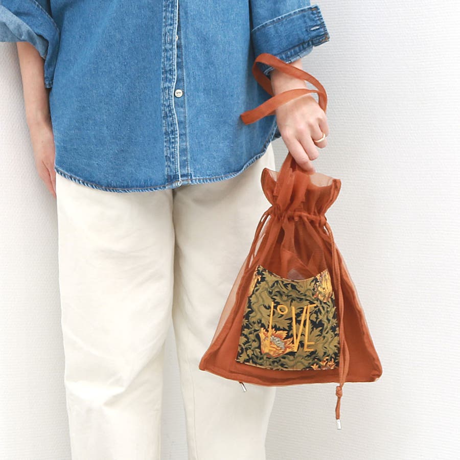 カシュカシュ cachecache / アソート生地LOVE巾着バッグ