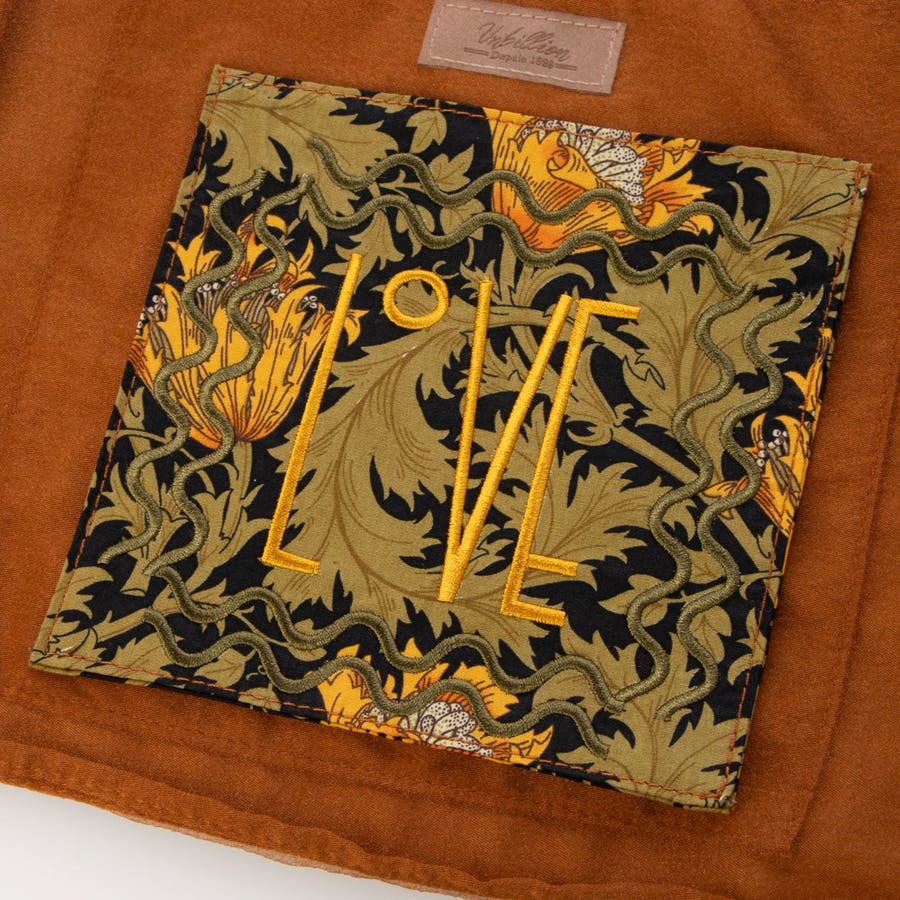 LOVEと刺繍されたそれぞれ異なる前ポケットがアクセントになっています。