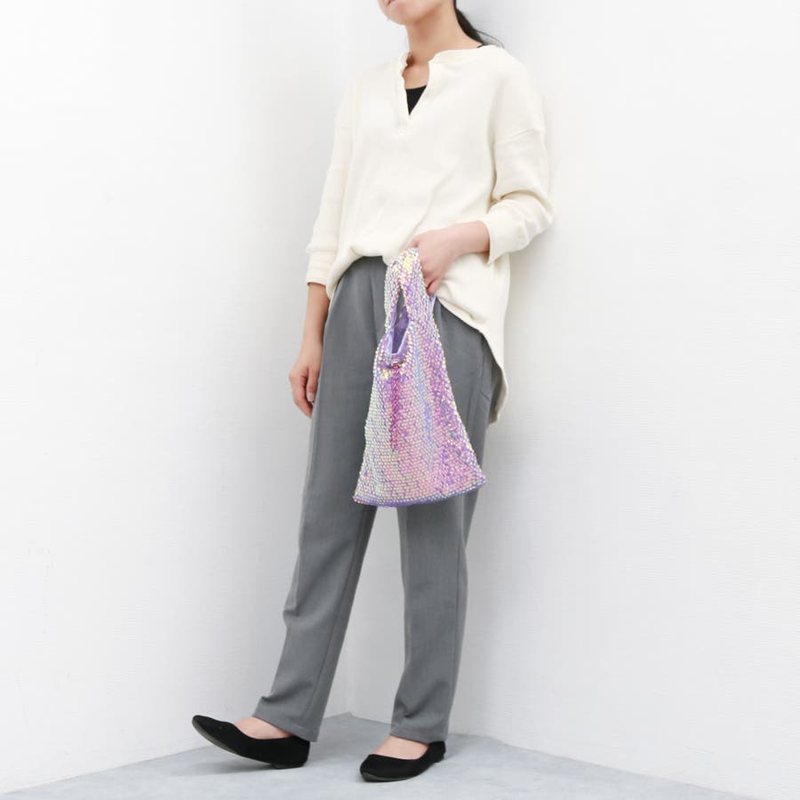 ゆらゆらゆれるスパンコールが人魚の鱗のように幻想的な雰囲気のショッパーバッグ。