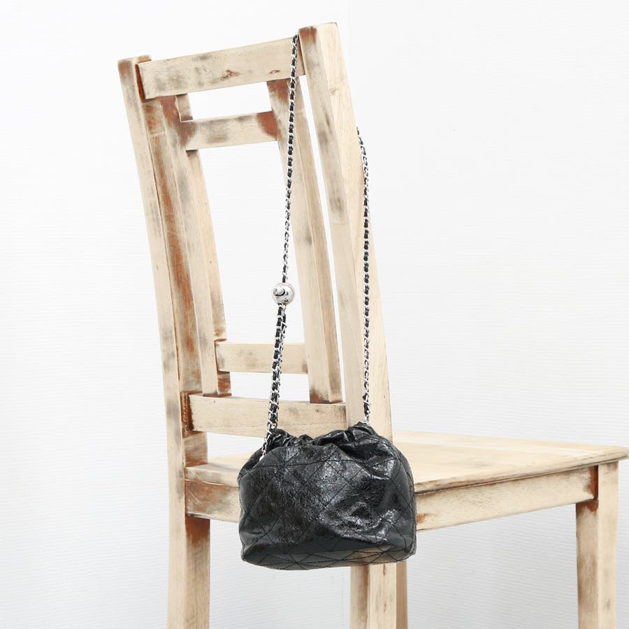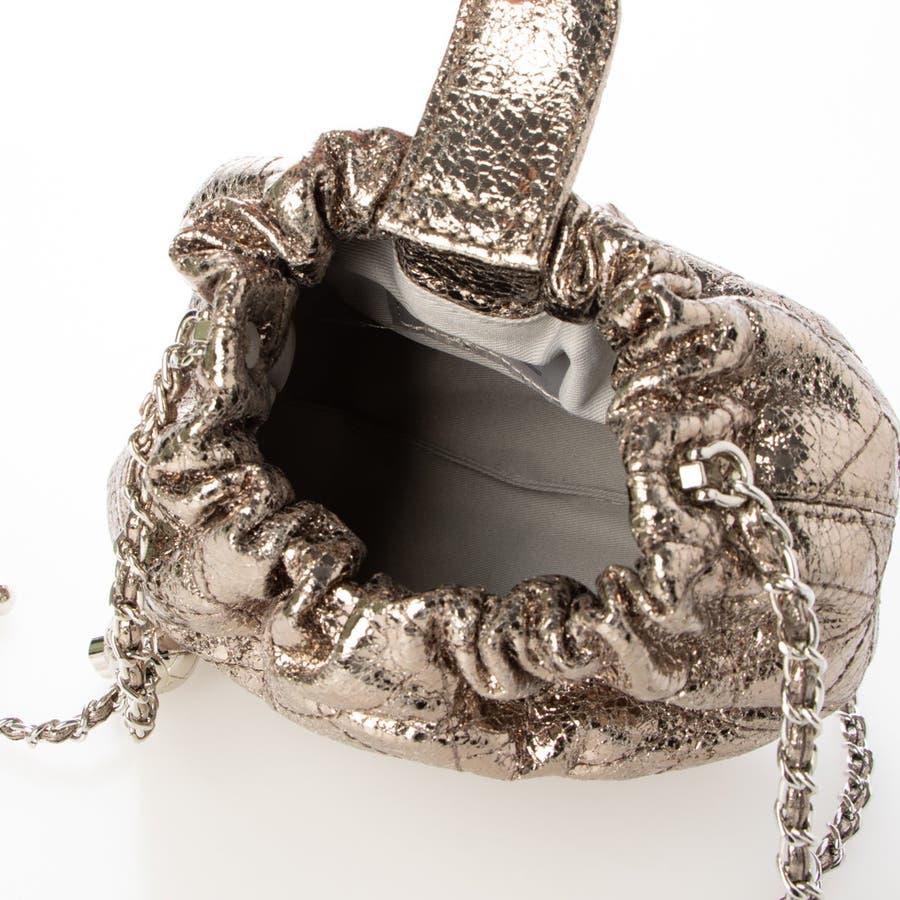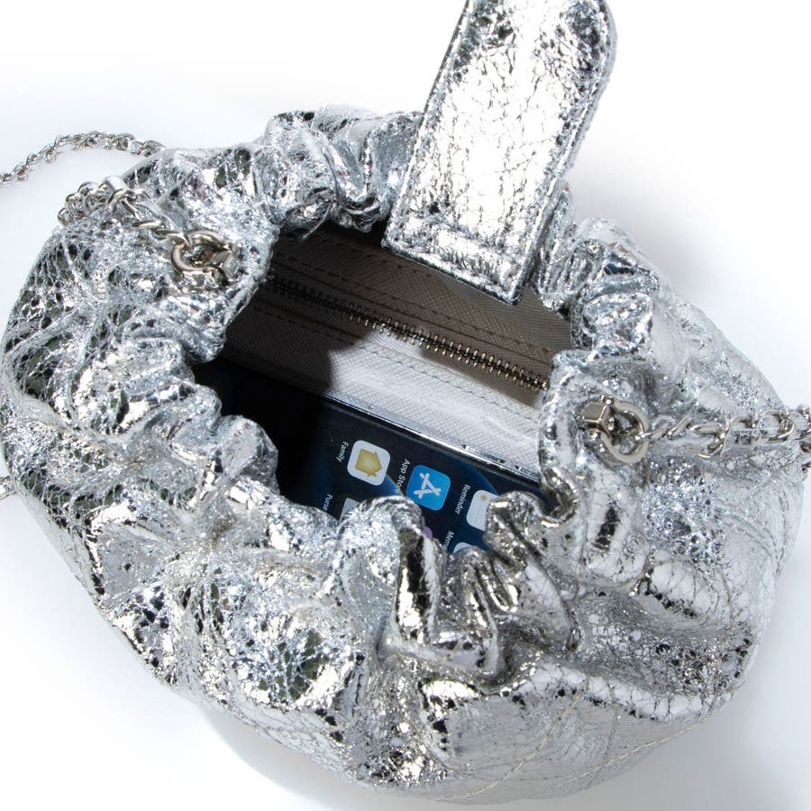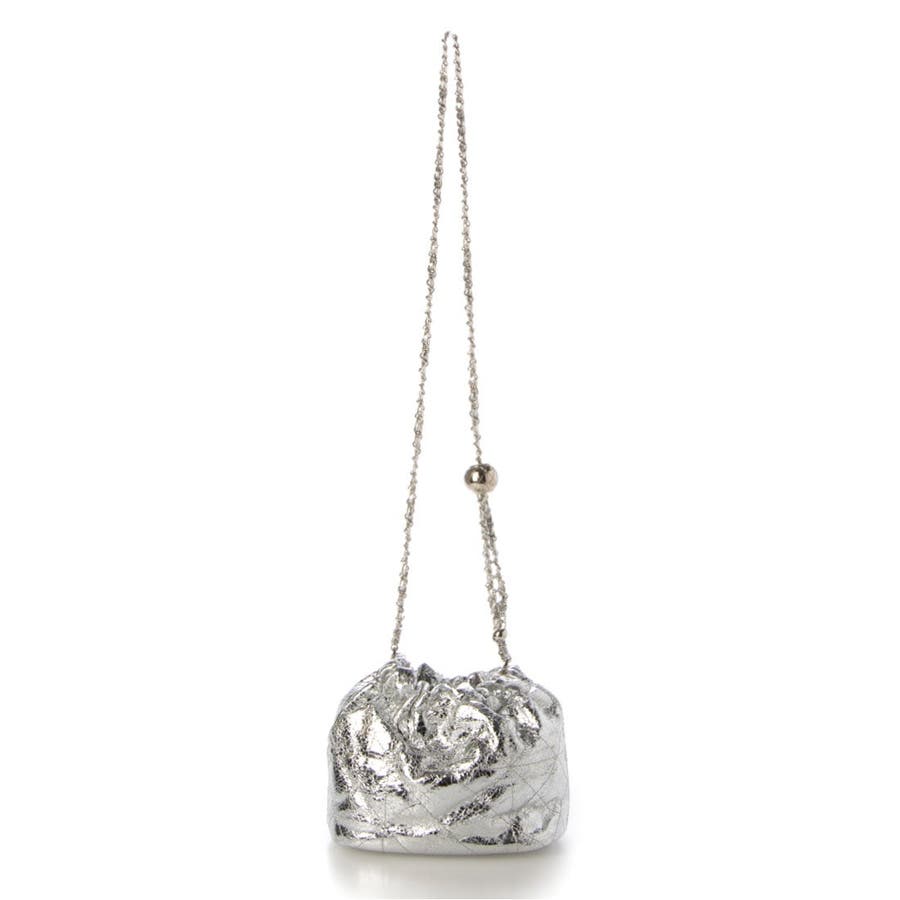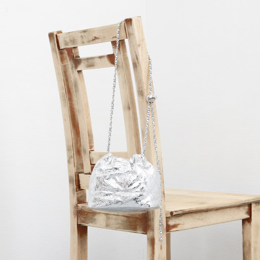 クラッシュ感のあるメタリック生地にキルティング加工をかけた、存在感のあるチェーンショルダーバッグ。