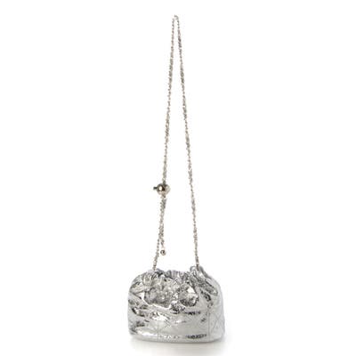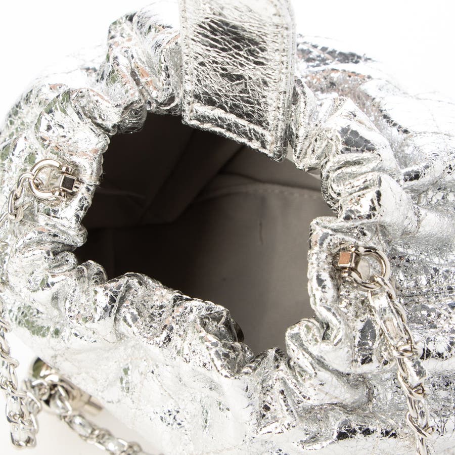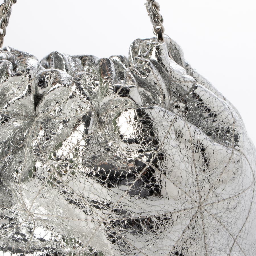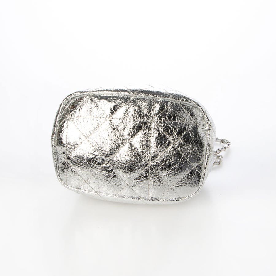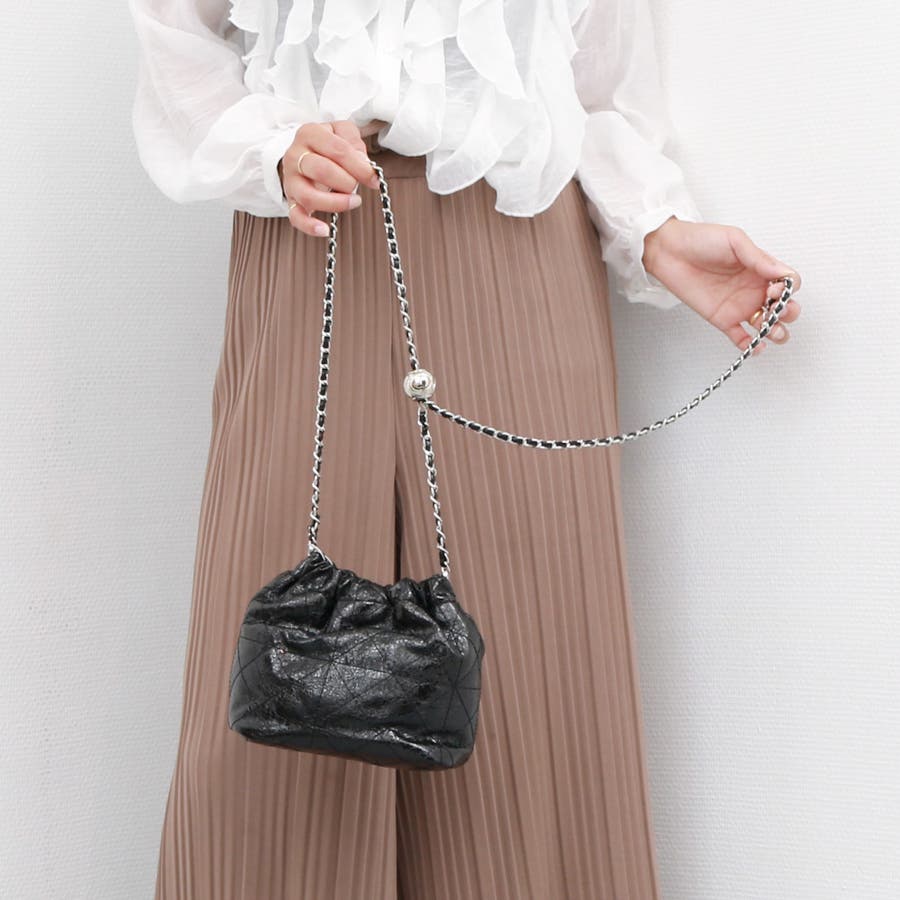 クラッシュ感のあるメタリック生地にキルティング加工をかけた、存在感のあるチェーンショルダーバッグ。