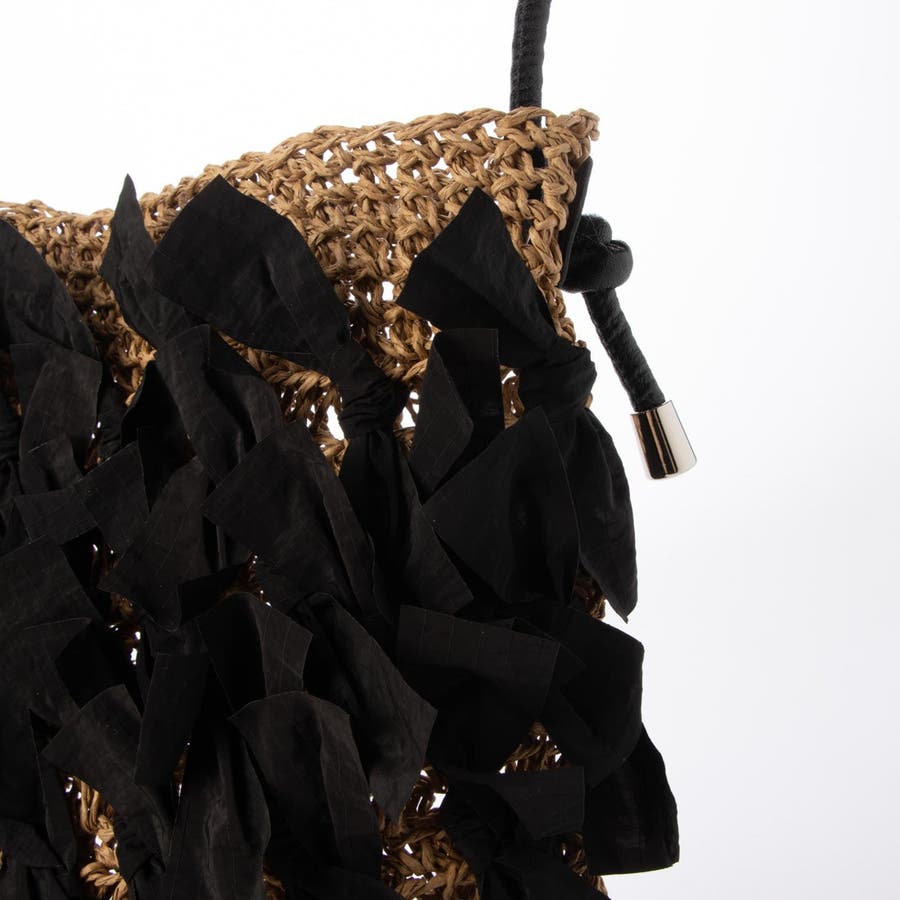 口元に取り付けたリボン状のナイロンがお花やフリルのように見える1本手トート。