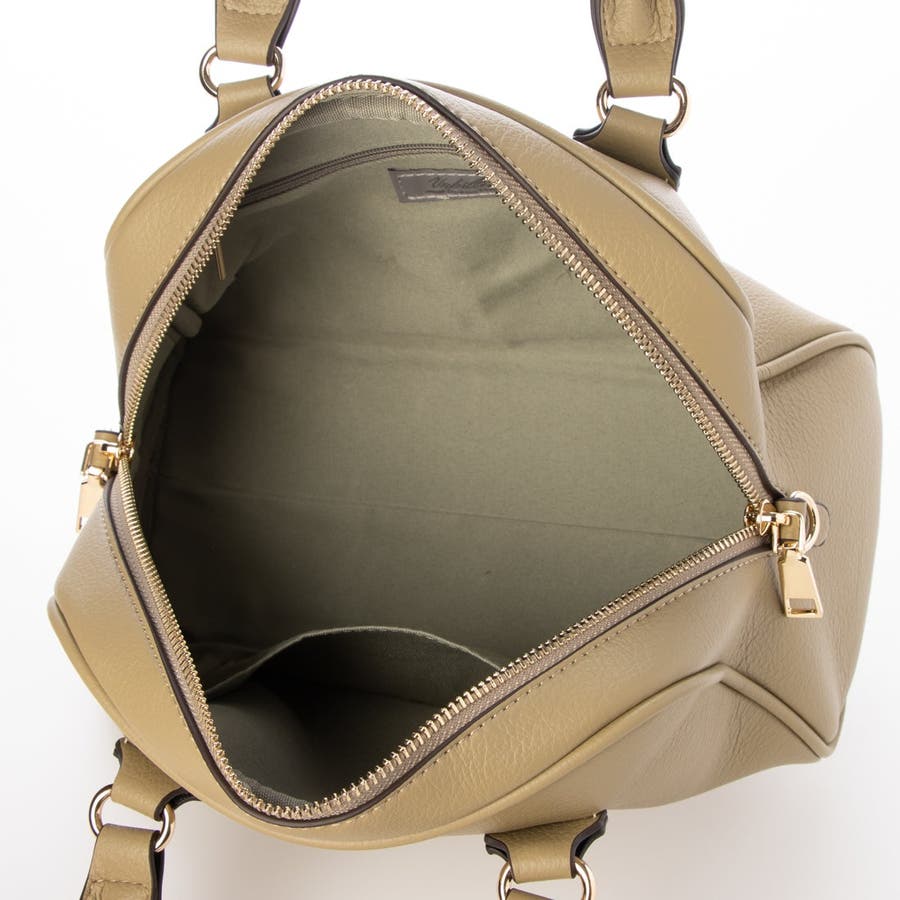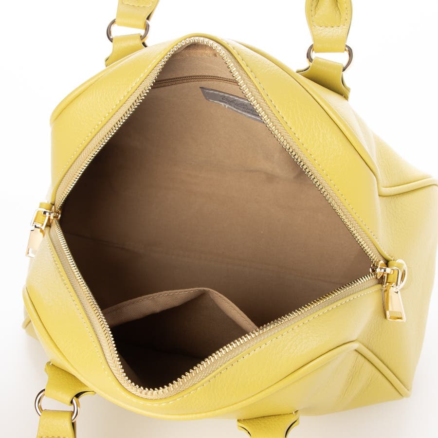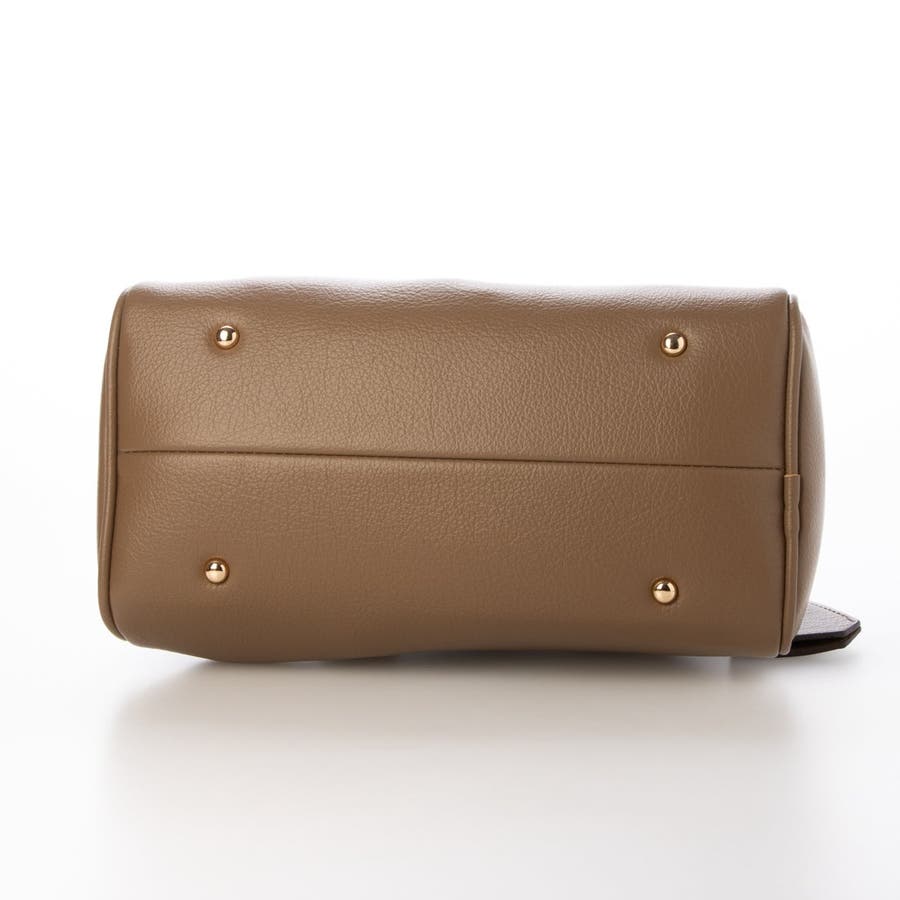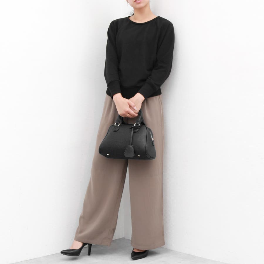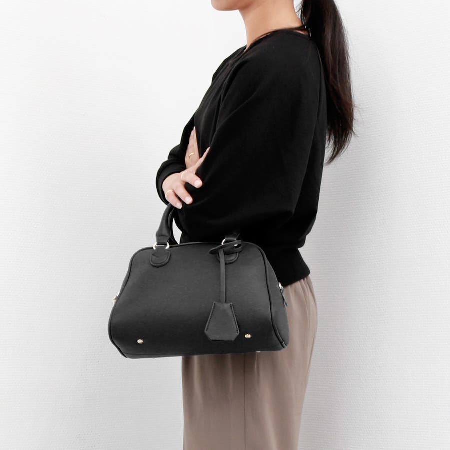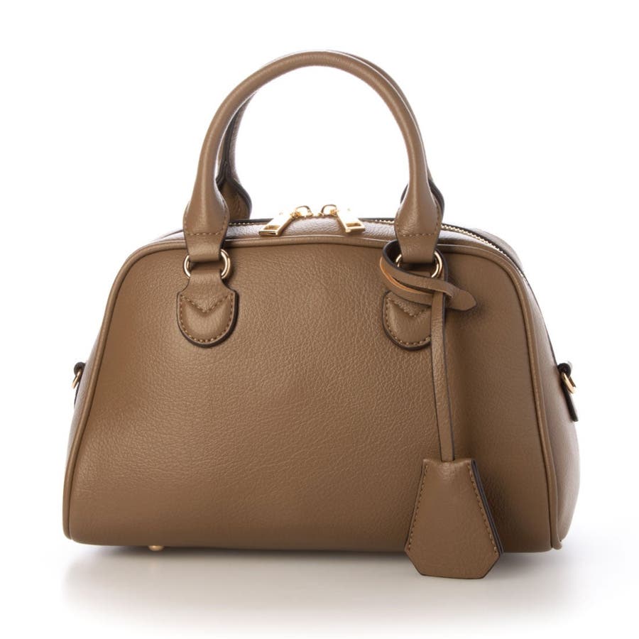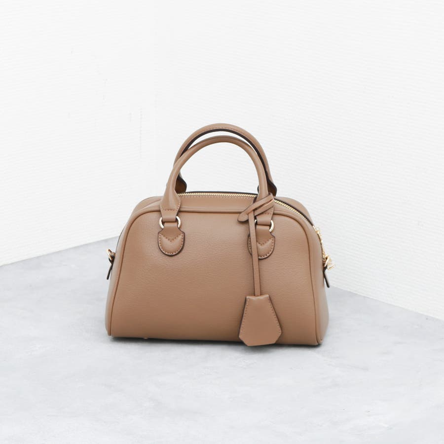 シボ感のあるソフトな風合いのフェイクレザーを使った2wayボストンバッグ。