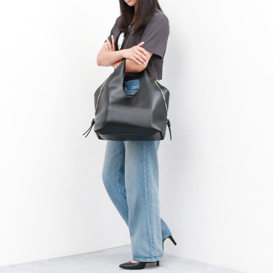 柔らかな風合いの合成皮革の繰り手トートバッグ。