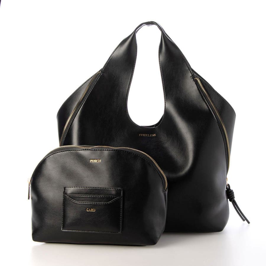 バッグの中に納まるポーチとカードケースがセットになったバリュアブルなトートバッグです。