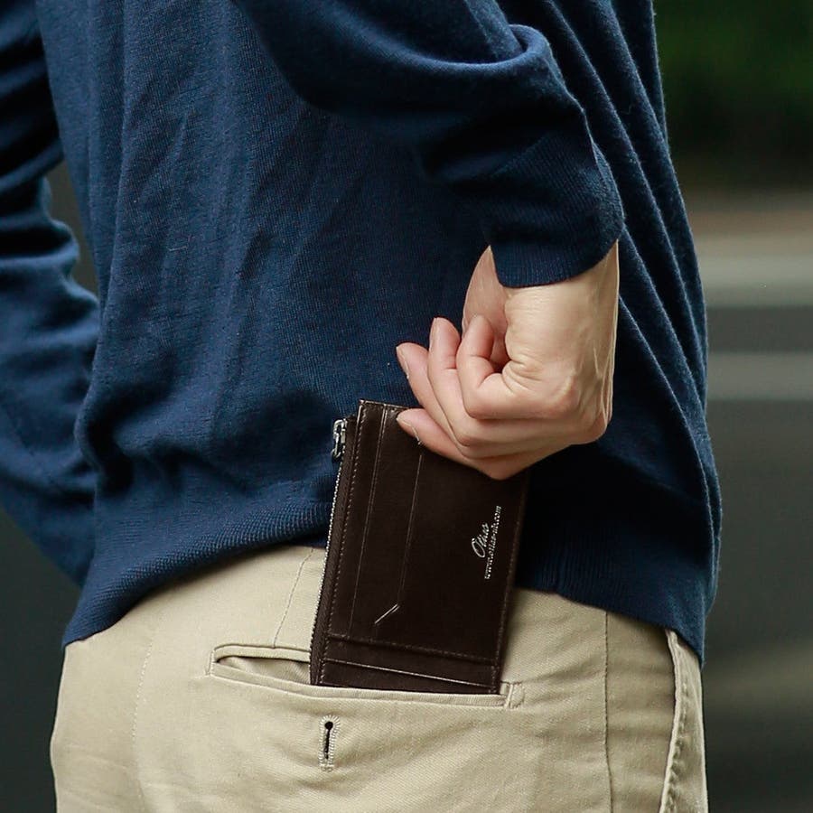 超薄型の硬貨や紙幣も入るファスナーポケット付きカードケース