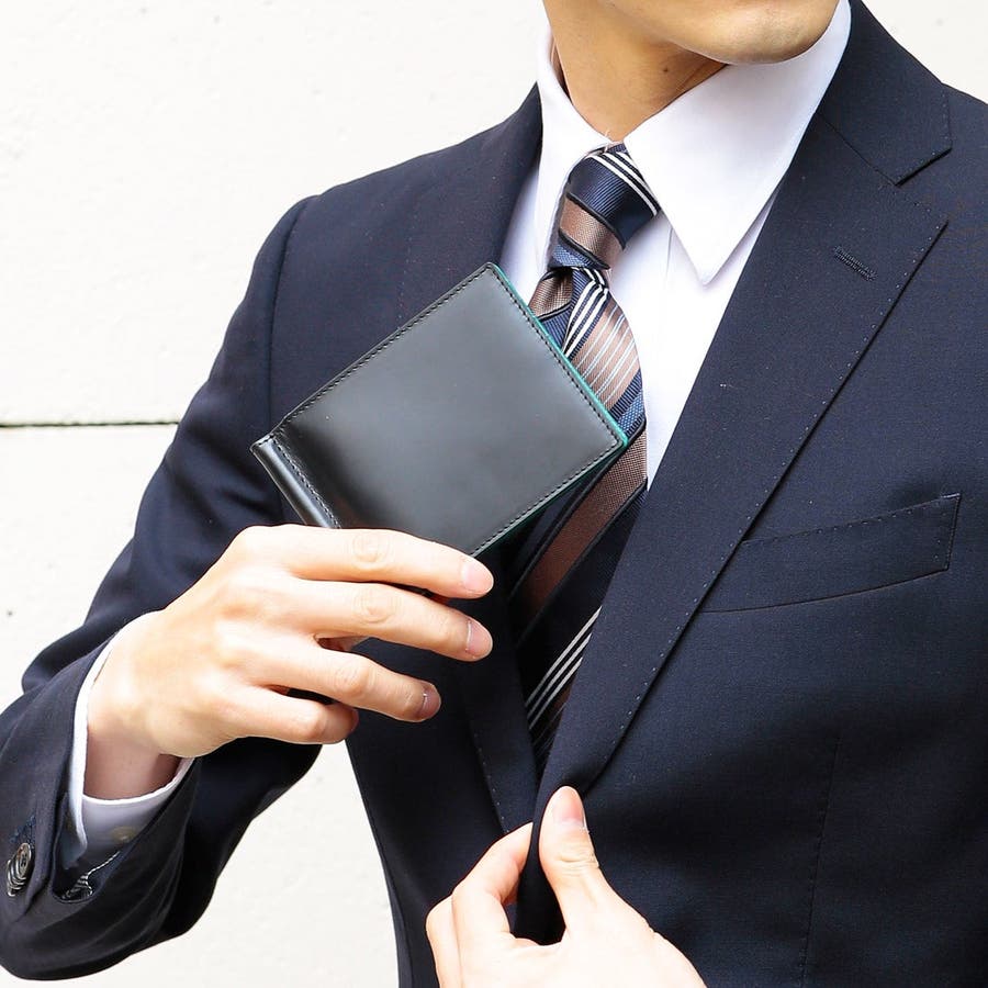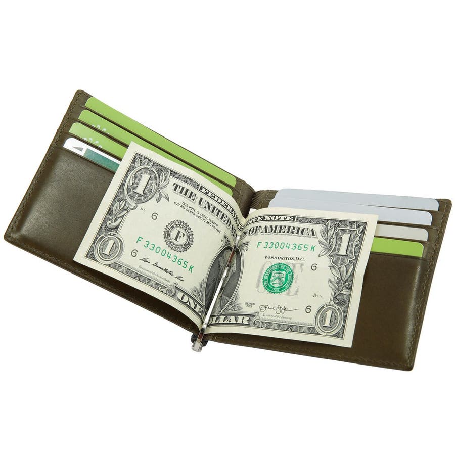 上質な大人の品格漂う光沢感とスタイリッシュなデザインが魅力の本革二つ折りマネークリップ札入れ