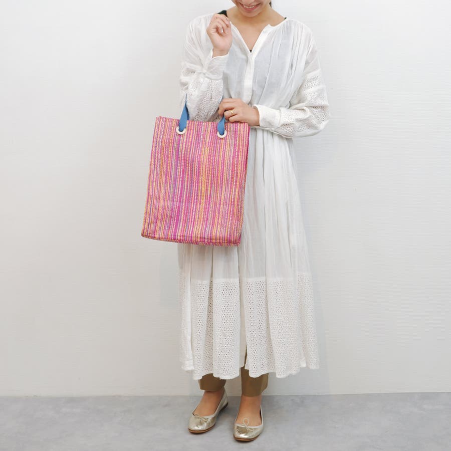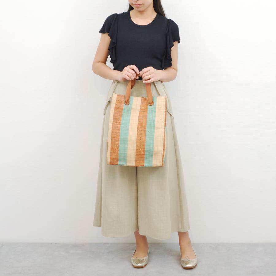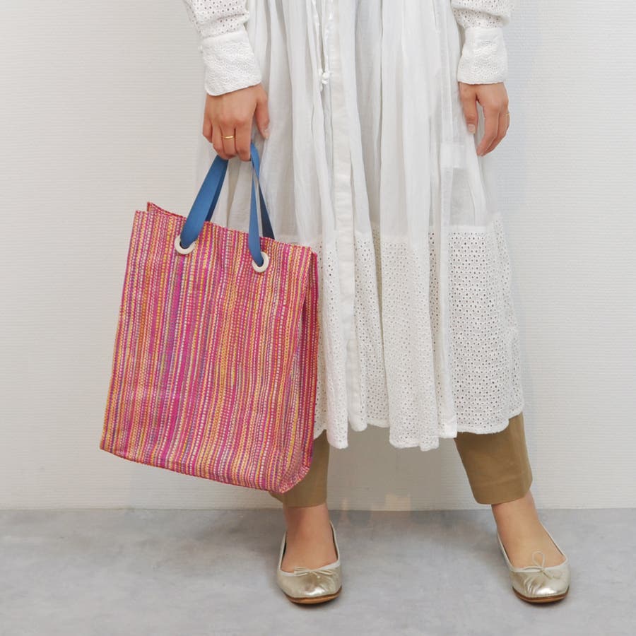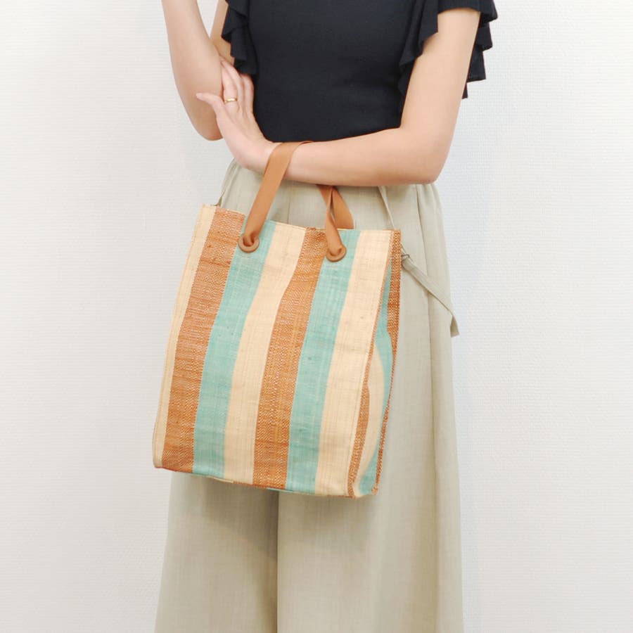 カカトゥ kakatoo / ラフィアストライプカラーハンドルトート