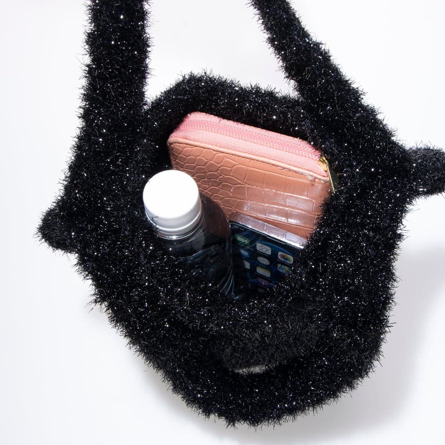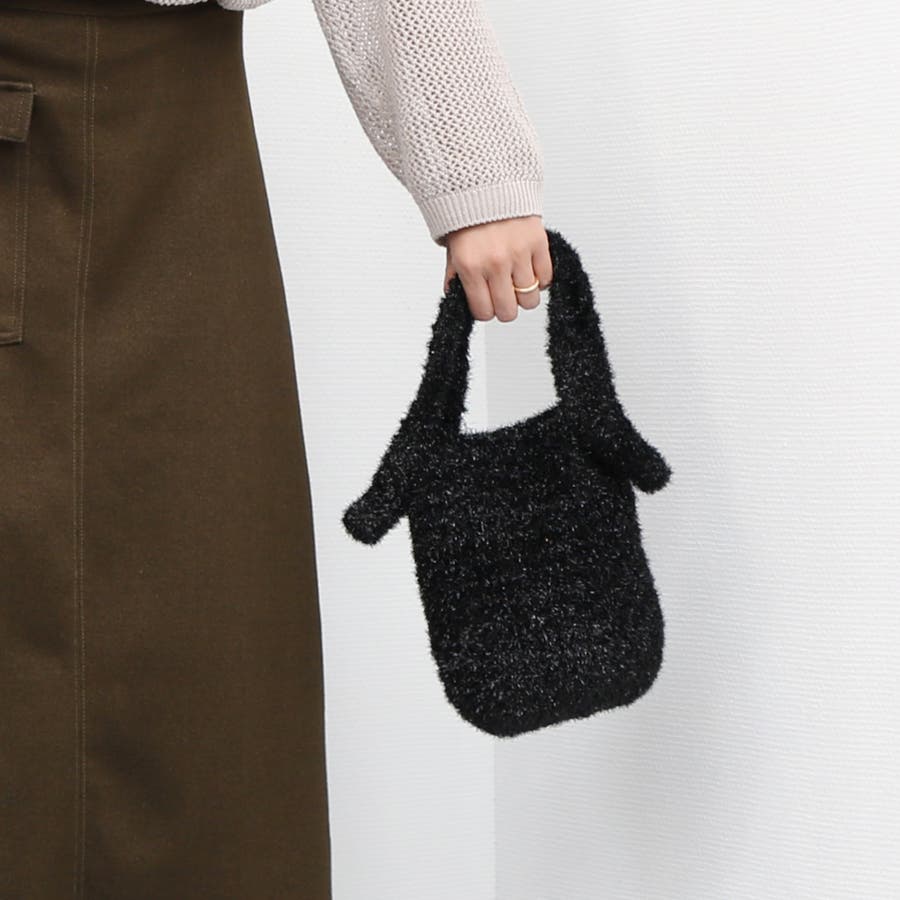 キラキラモールが入った糸を編み込んだ、コーディネートののポイントになるバッグです。