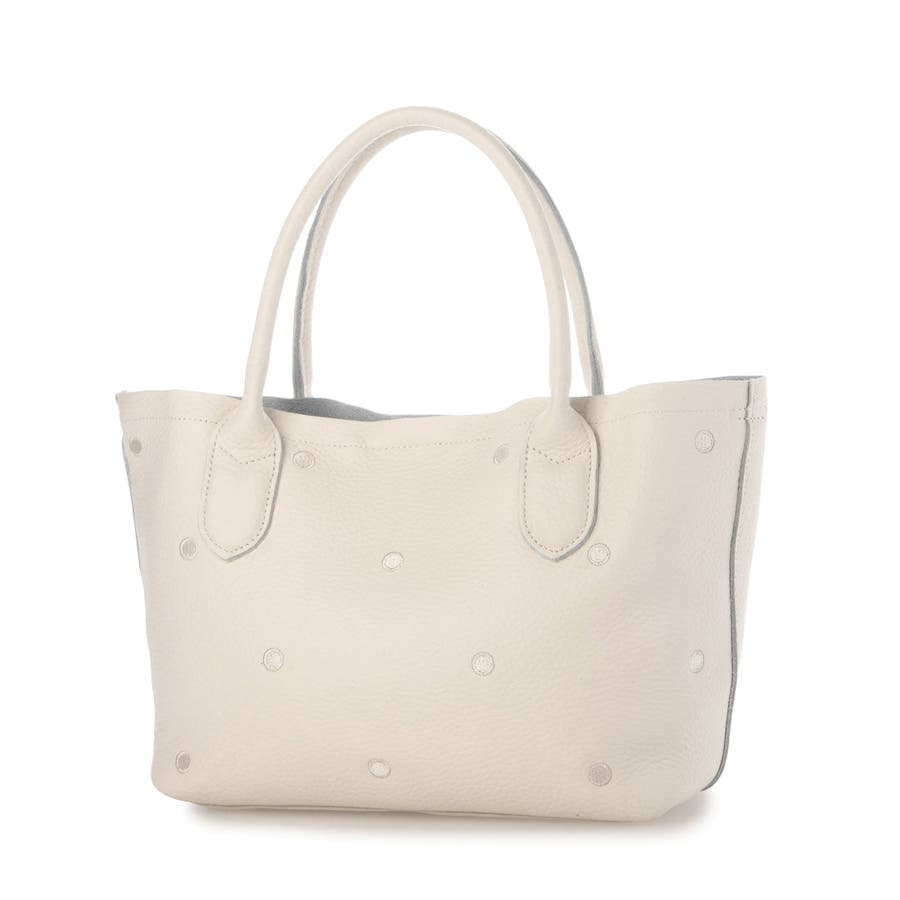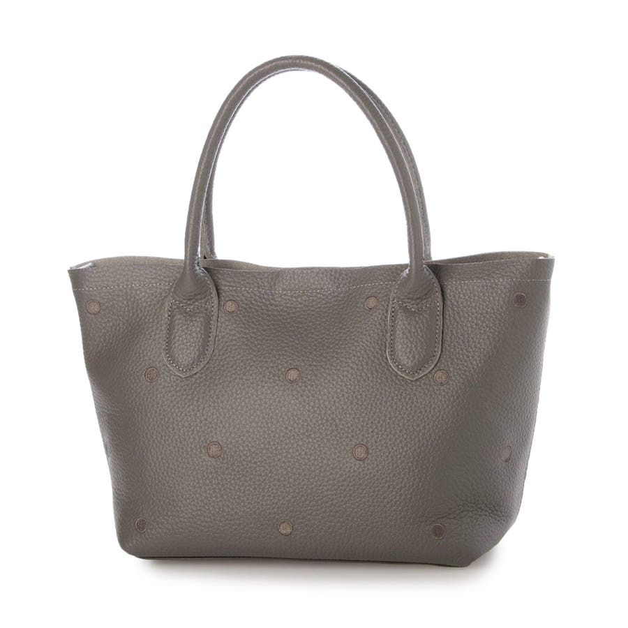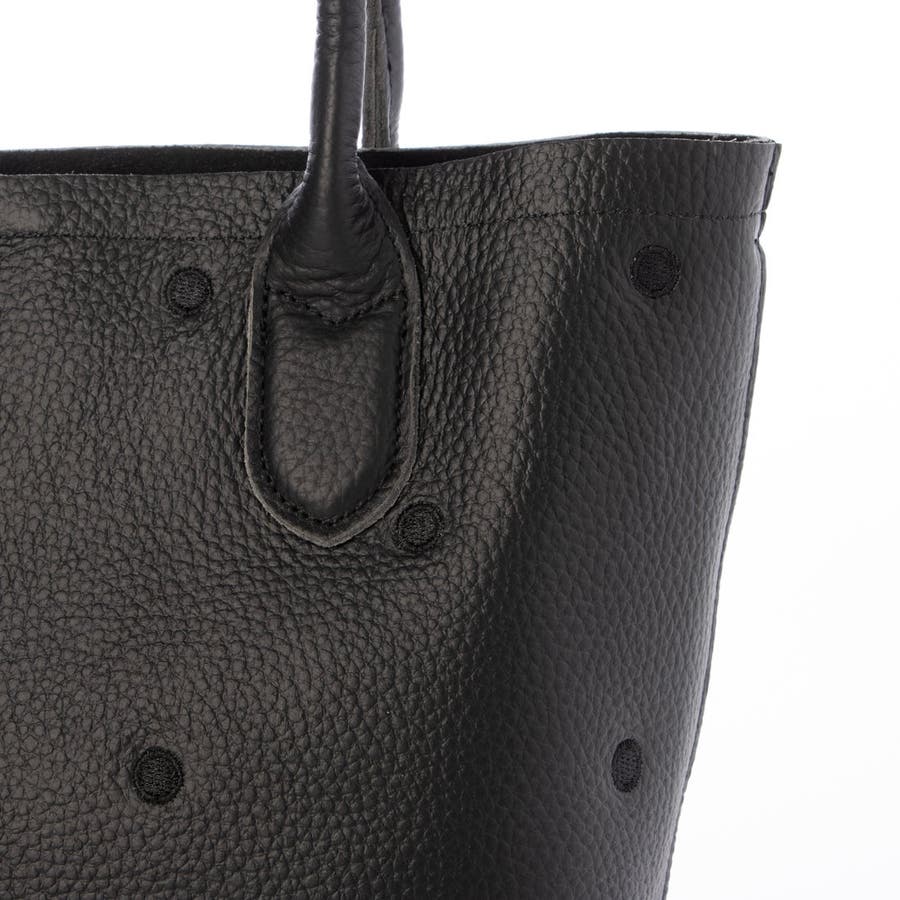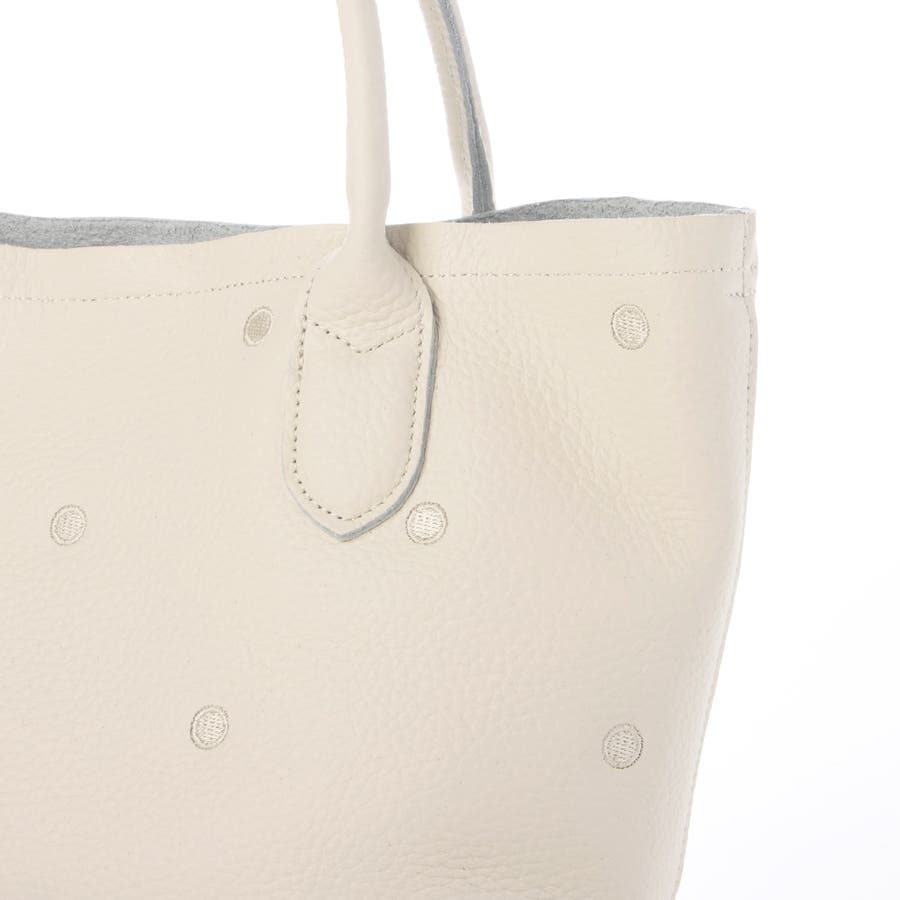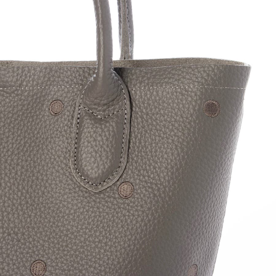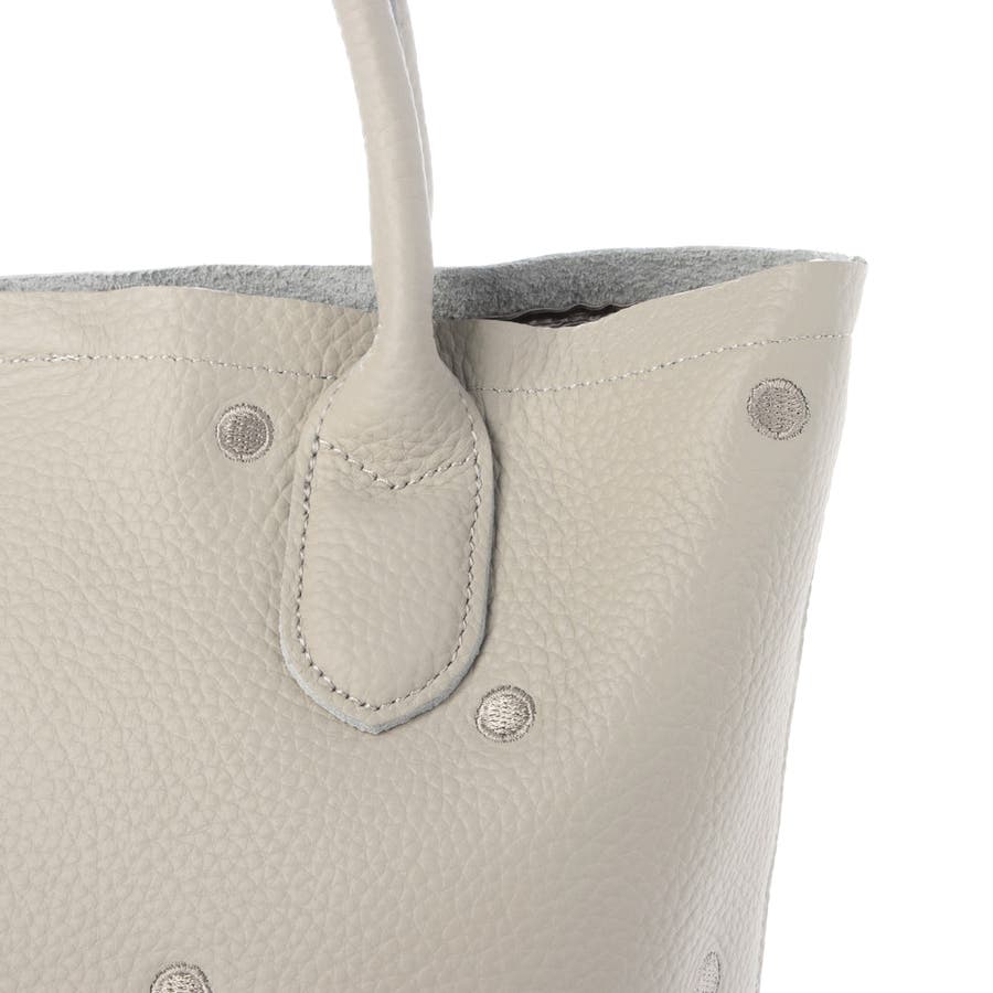 本体革と同色系の糸で刺繍したドットがポイントのトートバッグ。