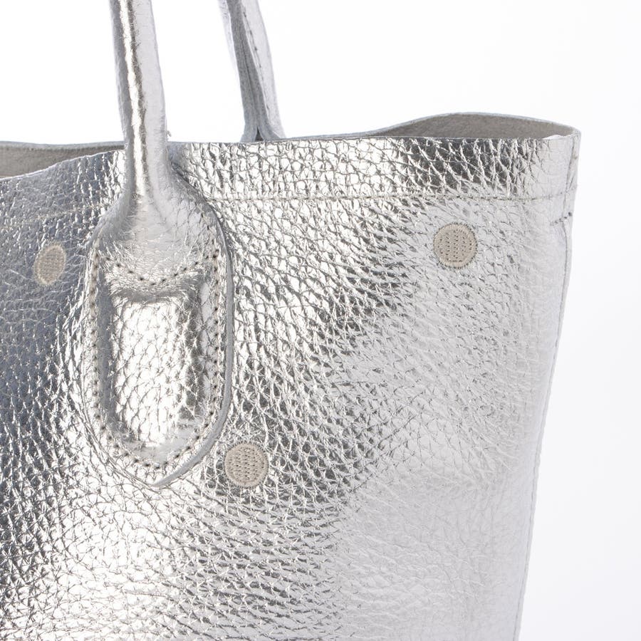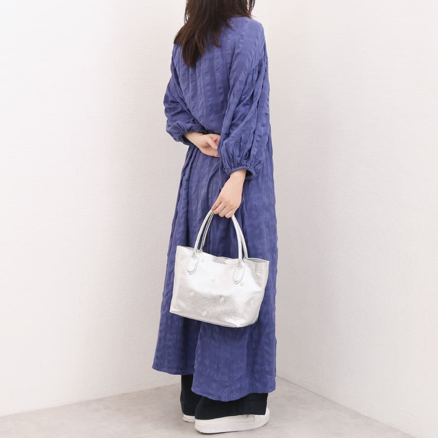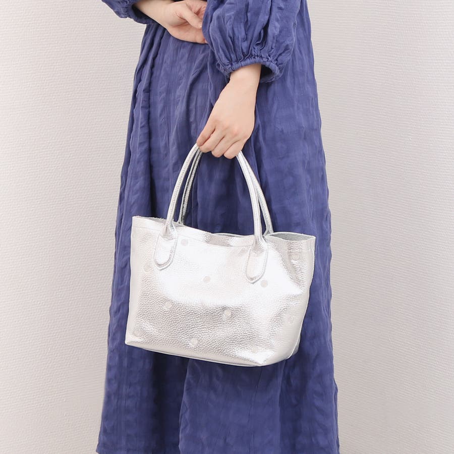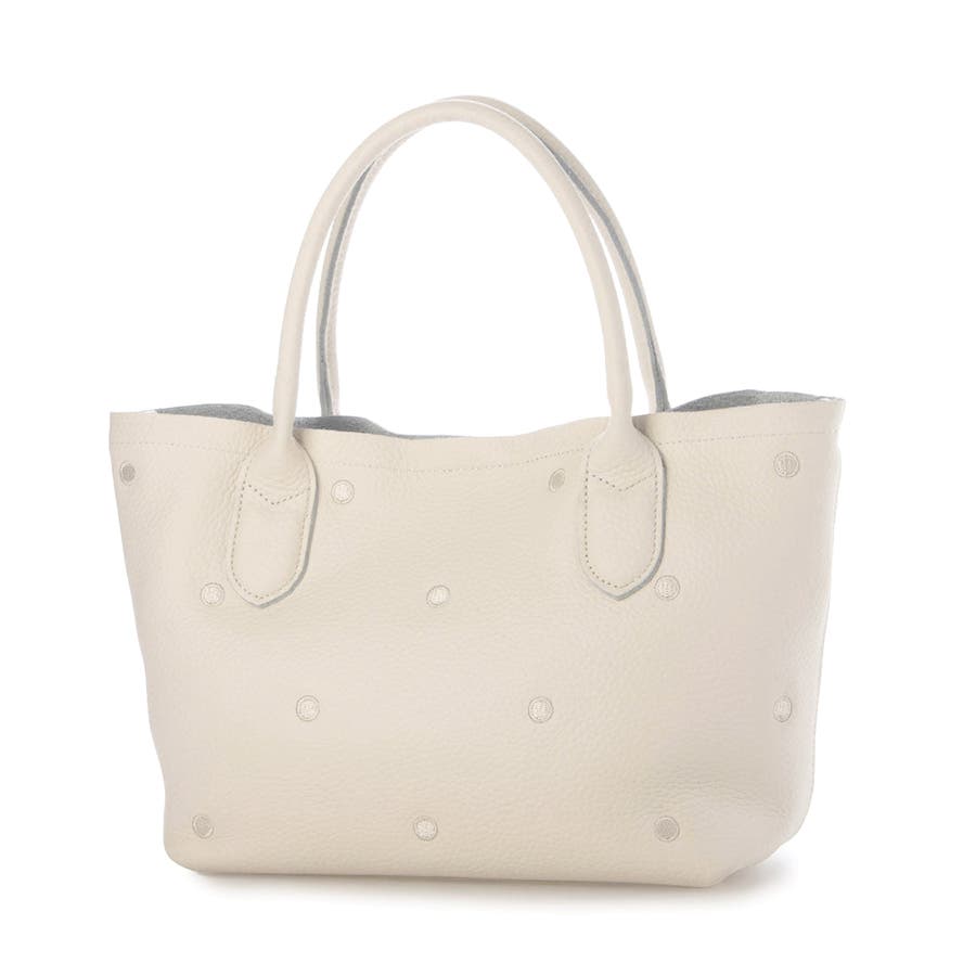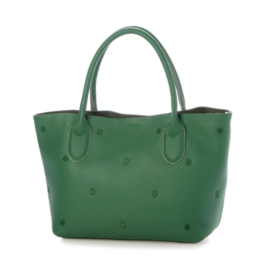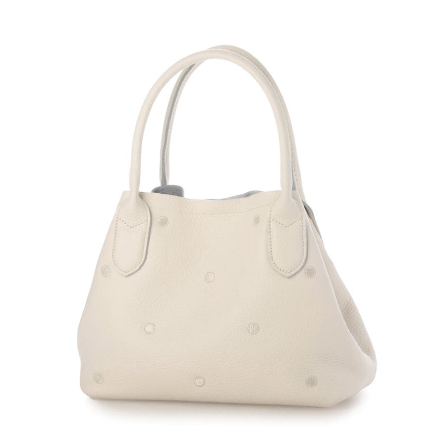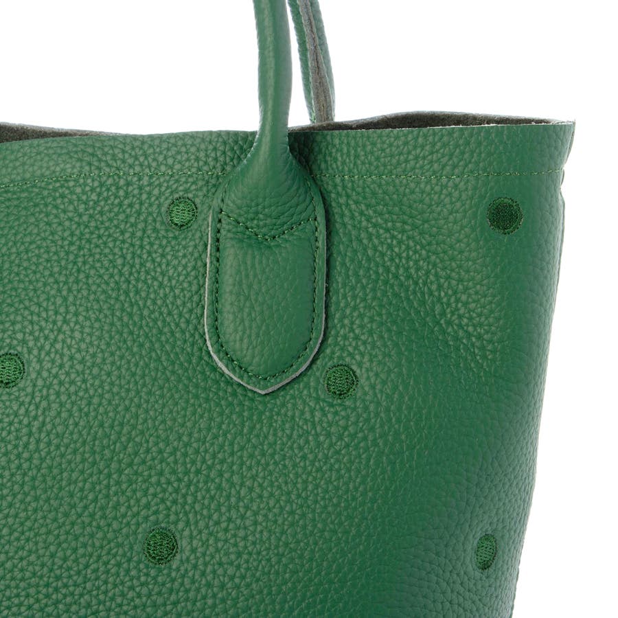 本体革と同色系の糸で刺繍したドットがポイントのトートバッグ。