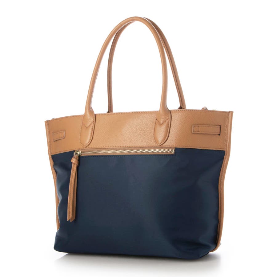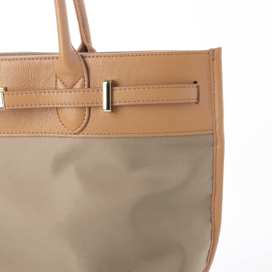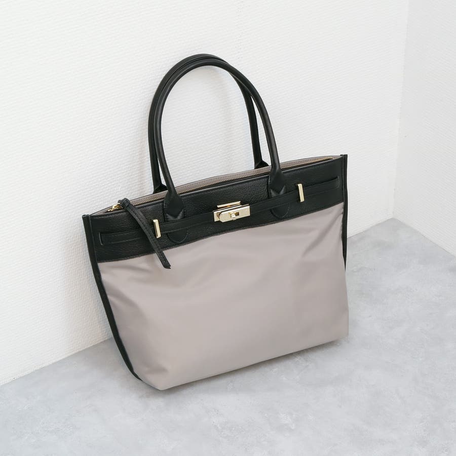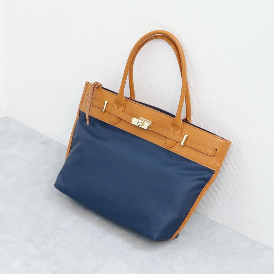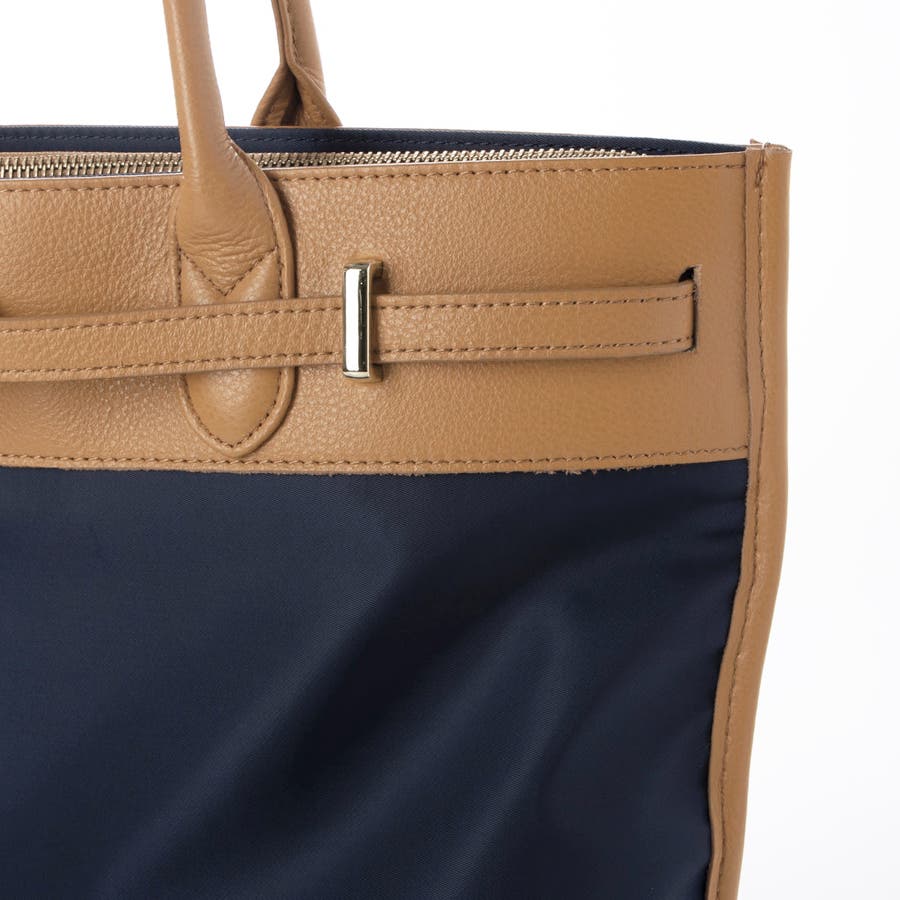ナイロンと牛革を組み合わせたキレイめカジュアルに合わせやすい雰囲気のトートバッグ。