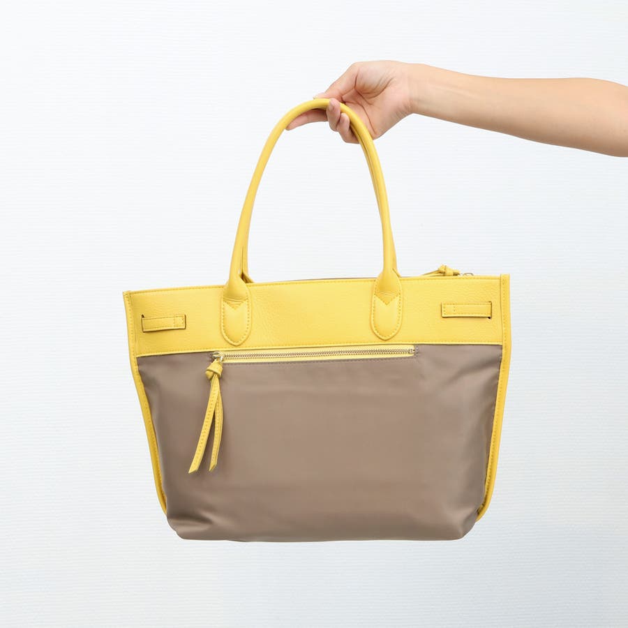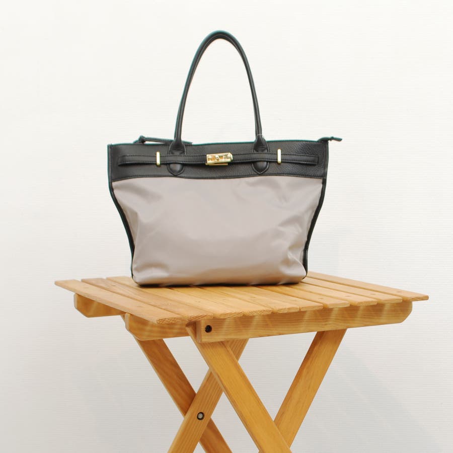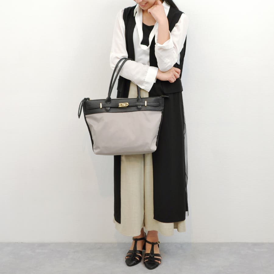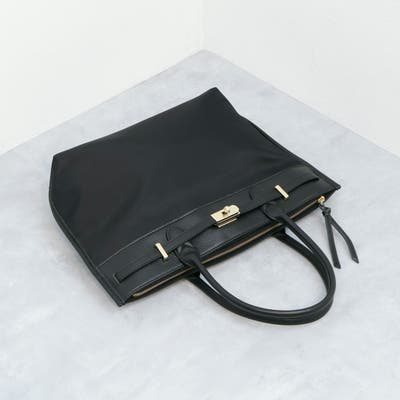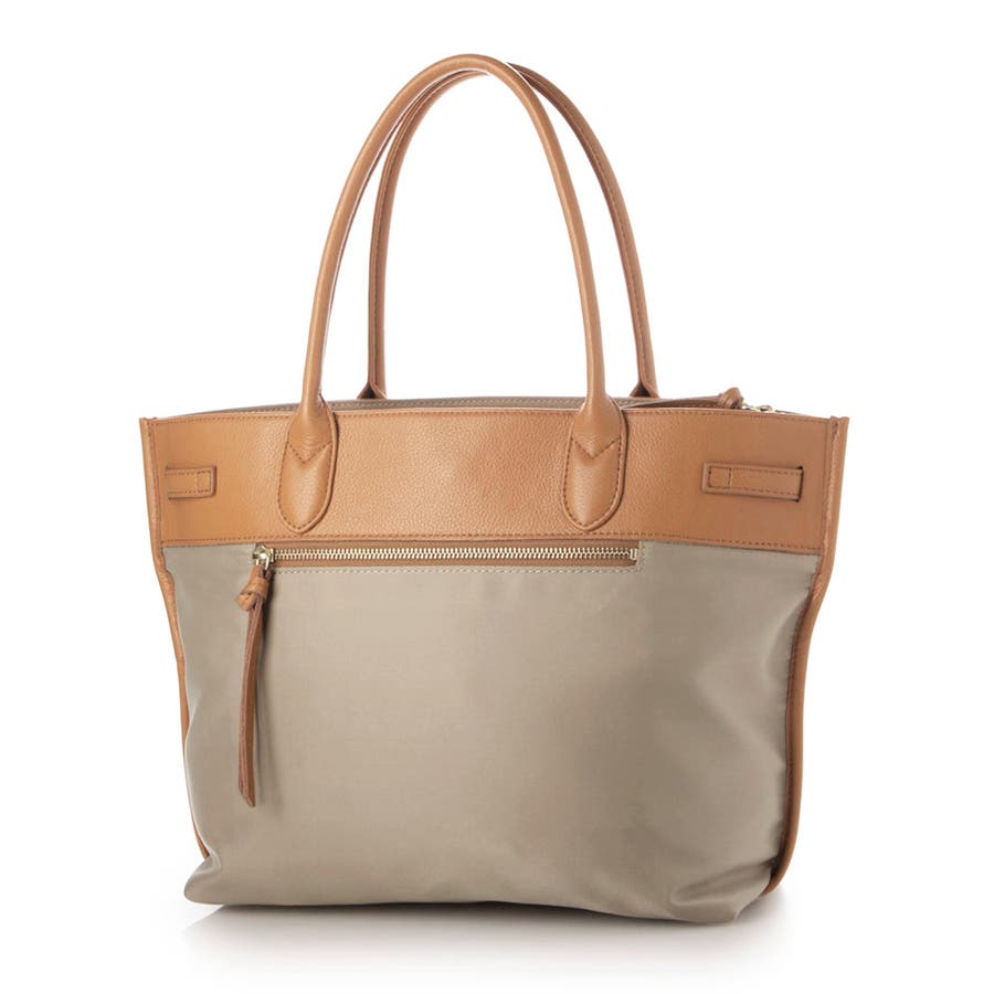 ナイロンと牛革を組み合わせたキレイめカジュアルに合わせやすい雰囲気のトートバッグ。
