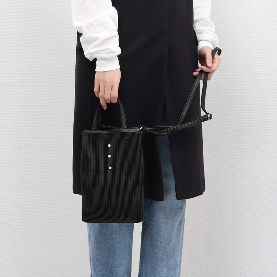 小さなパールがアクセントになった縦型2wayショルダー。