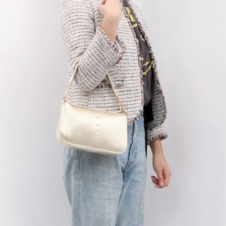 小さなパールがアクセントになった2wayショルダーバッグ。