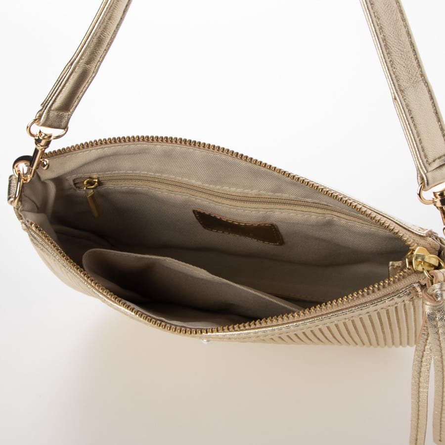 スマホやミニ財布が入るミニマムなサイズで口元はファスナー仕様のきちんと感のあるつくり。