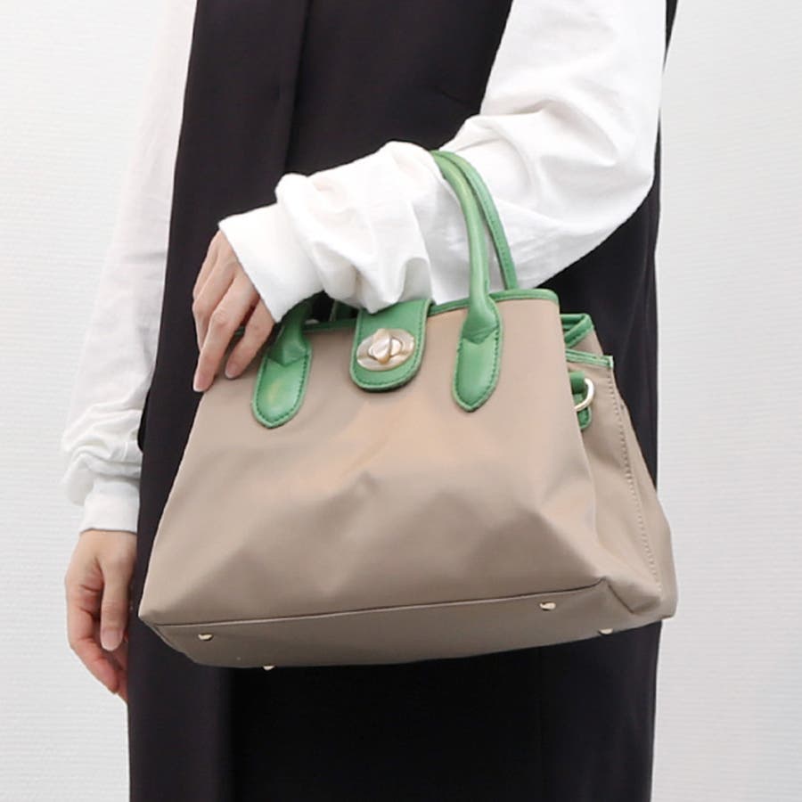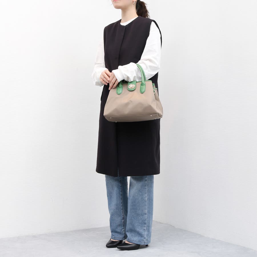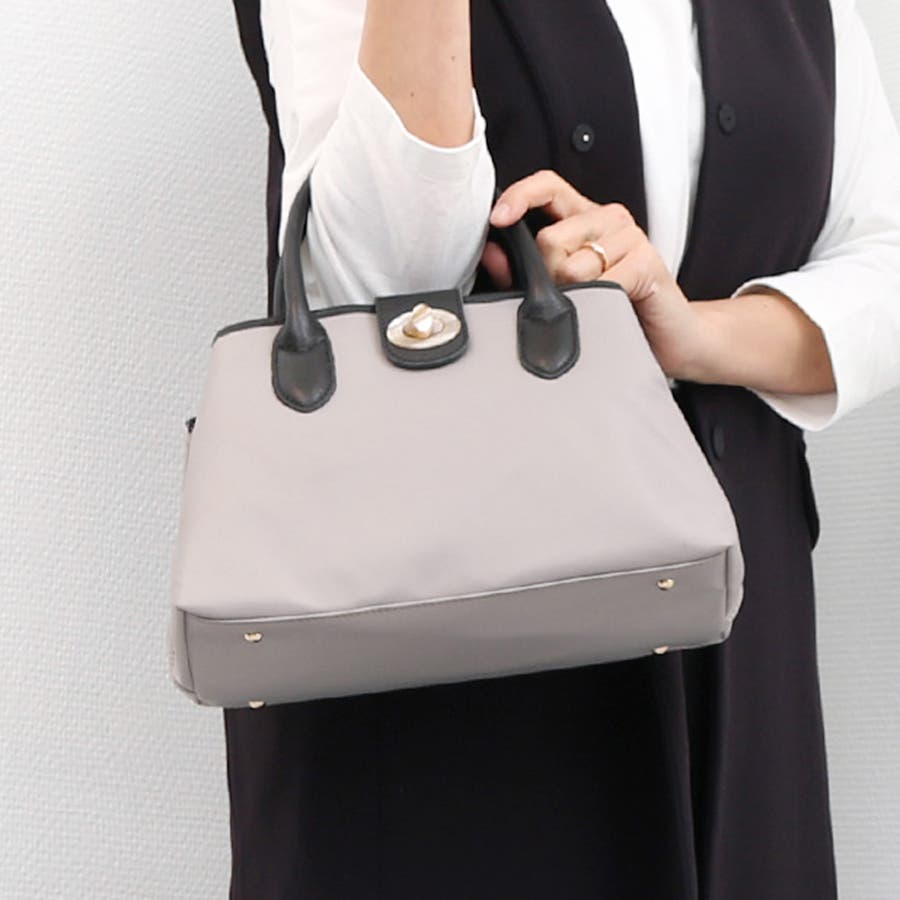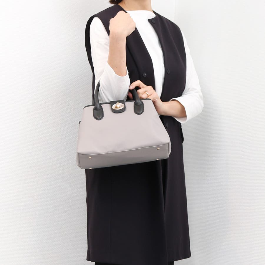 普段のお出かけに必要な物が入って膝に置けるサイズ感の2wayハンドバッグ。