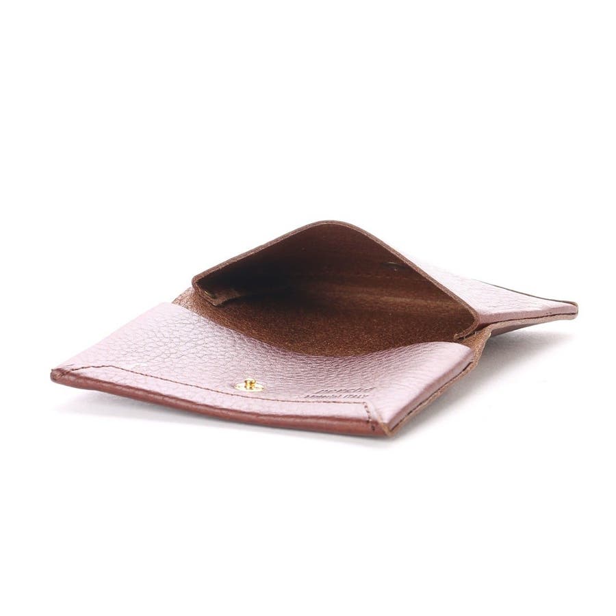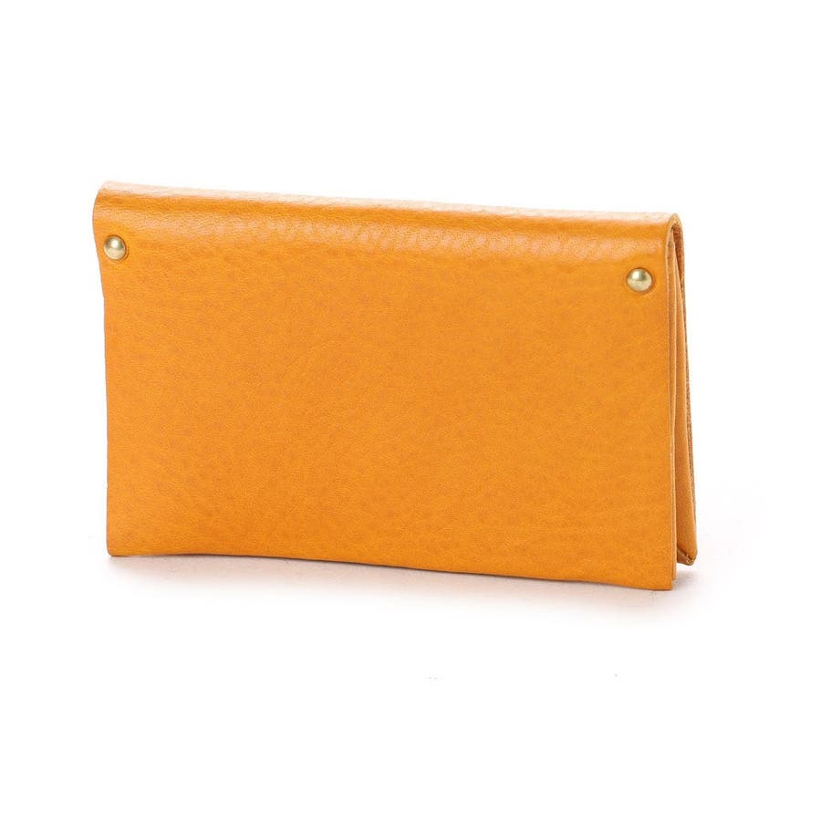 エイジングが楽しめるベジタブルタンニン染めのイタリア製牛革を使用した名刺入れ。開くと両側に名刺を入れられるポケットがあります。ホックはイタリアのPRYM(プリム)社で製造される最も高品質と言えるバネホックを使用しています。ユニセックスで使っていただける名刺入れなのでプレゼントにもピッタリです。