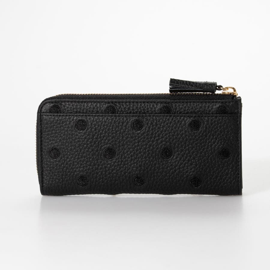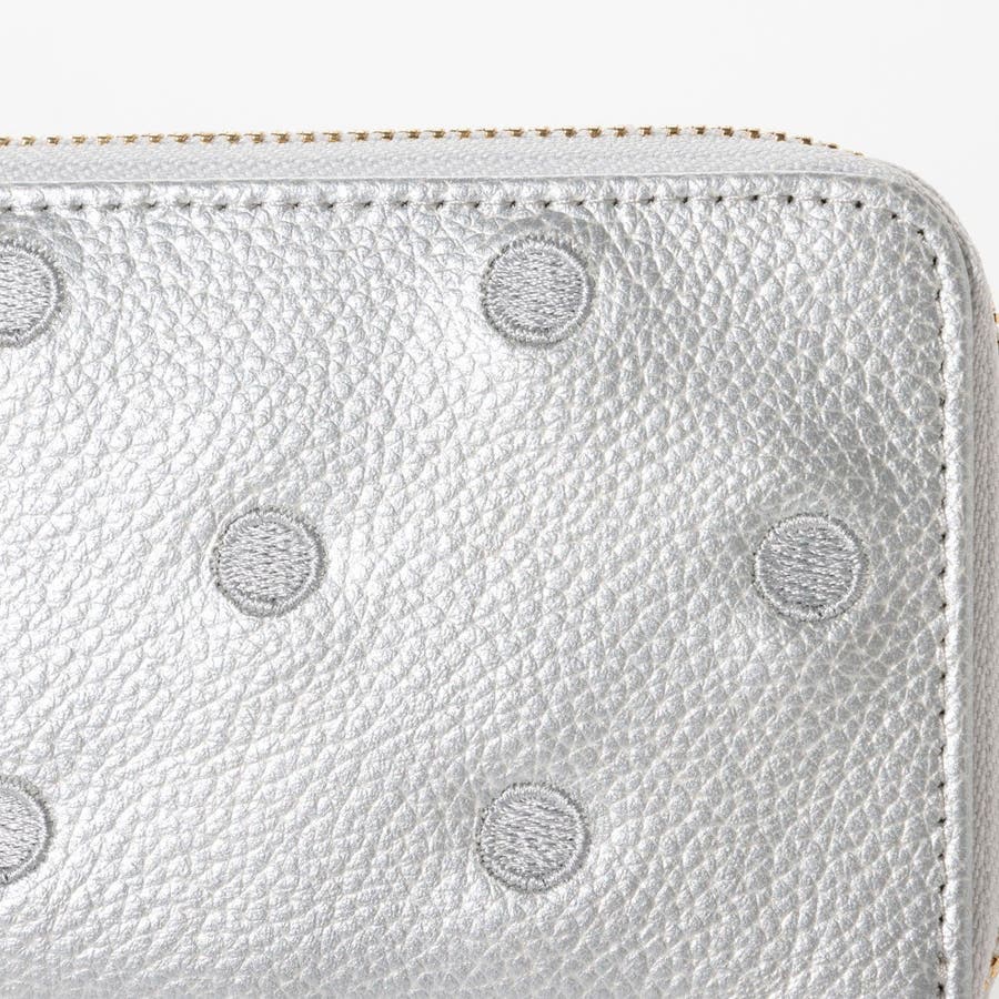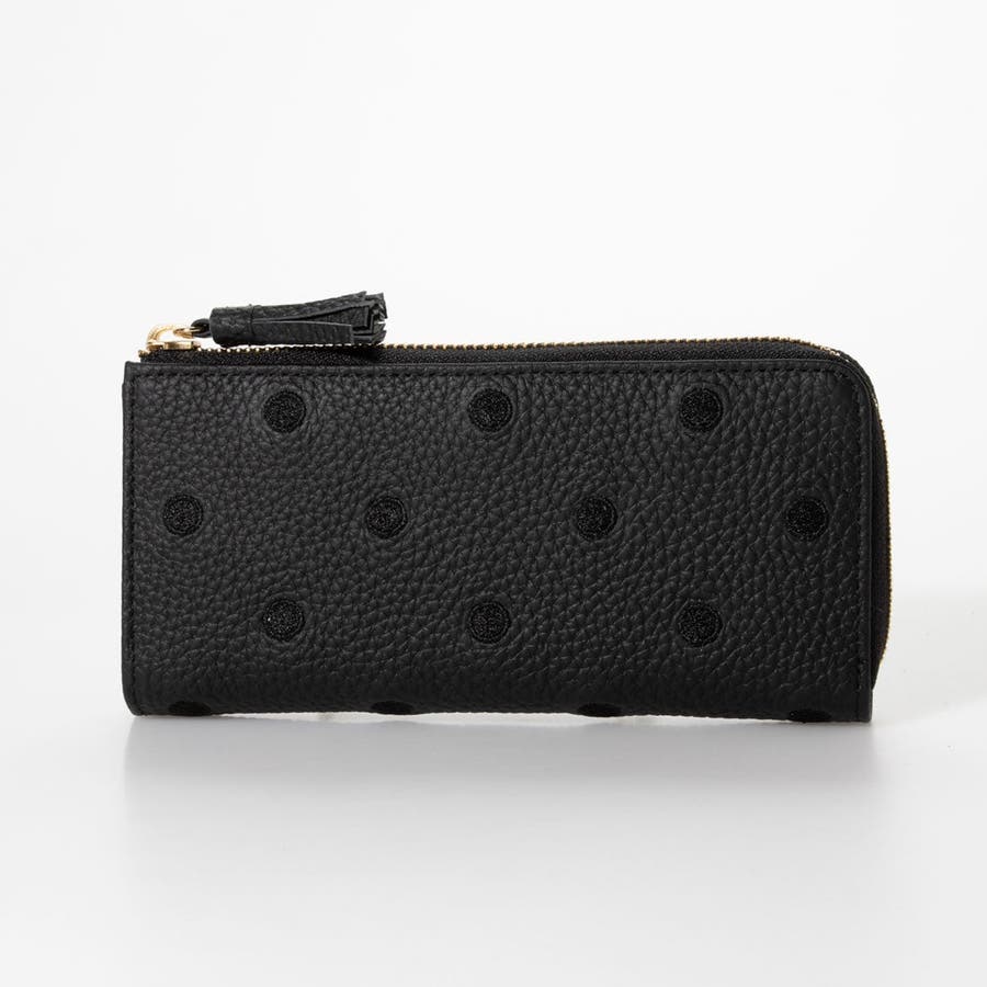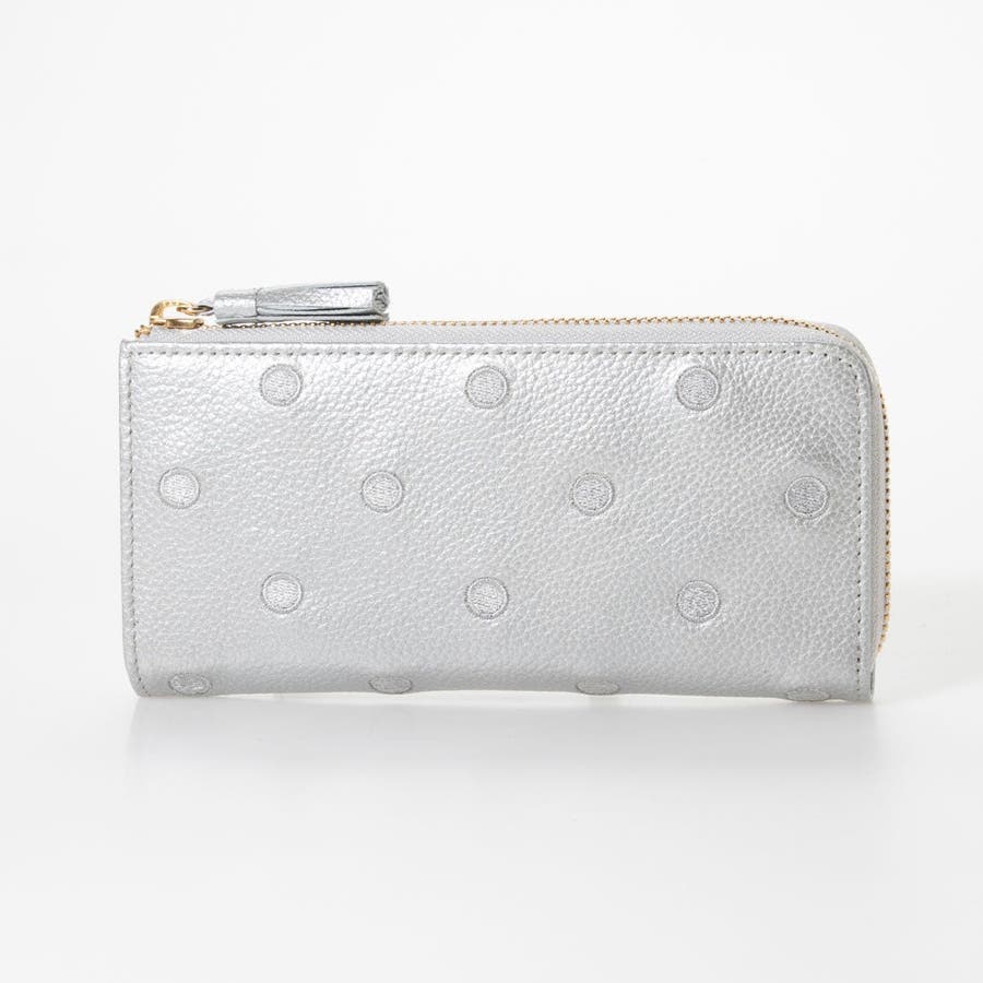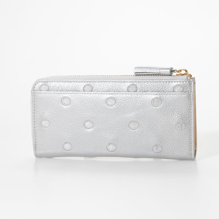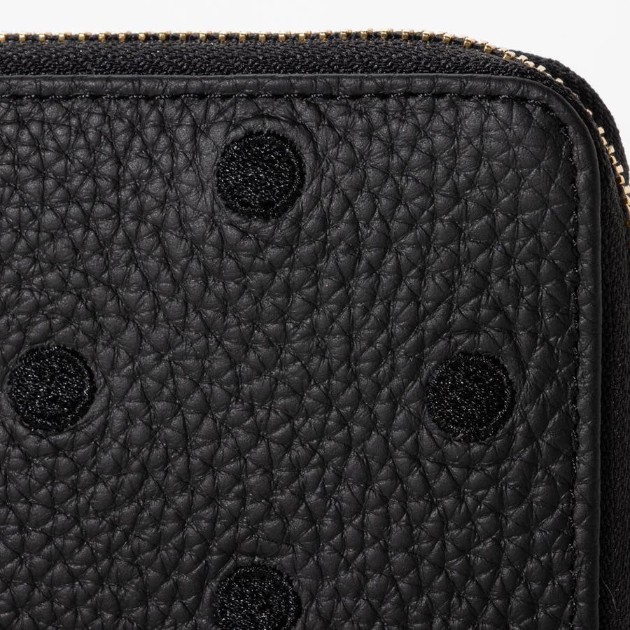 牛革に同色系の糸でドットを刺繍したL字型長財布。