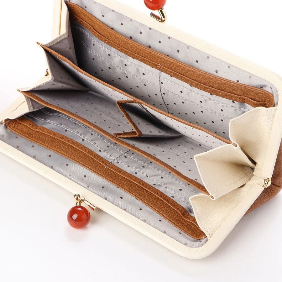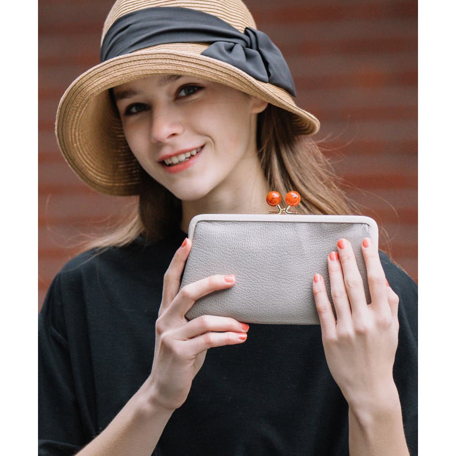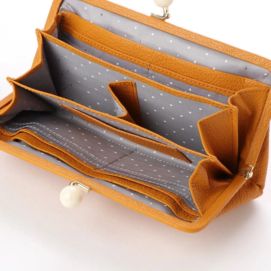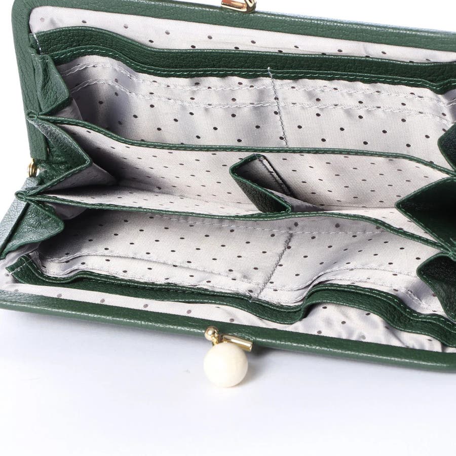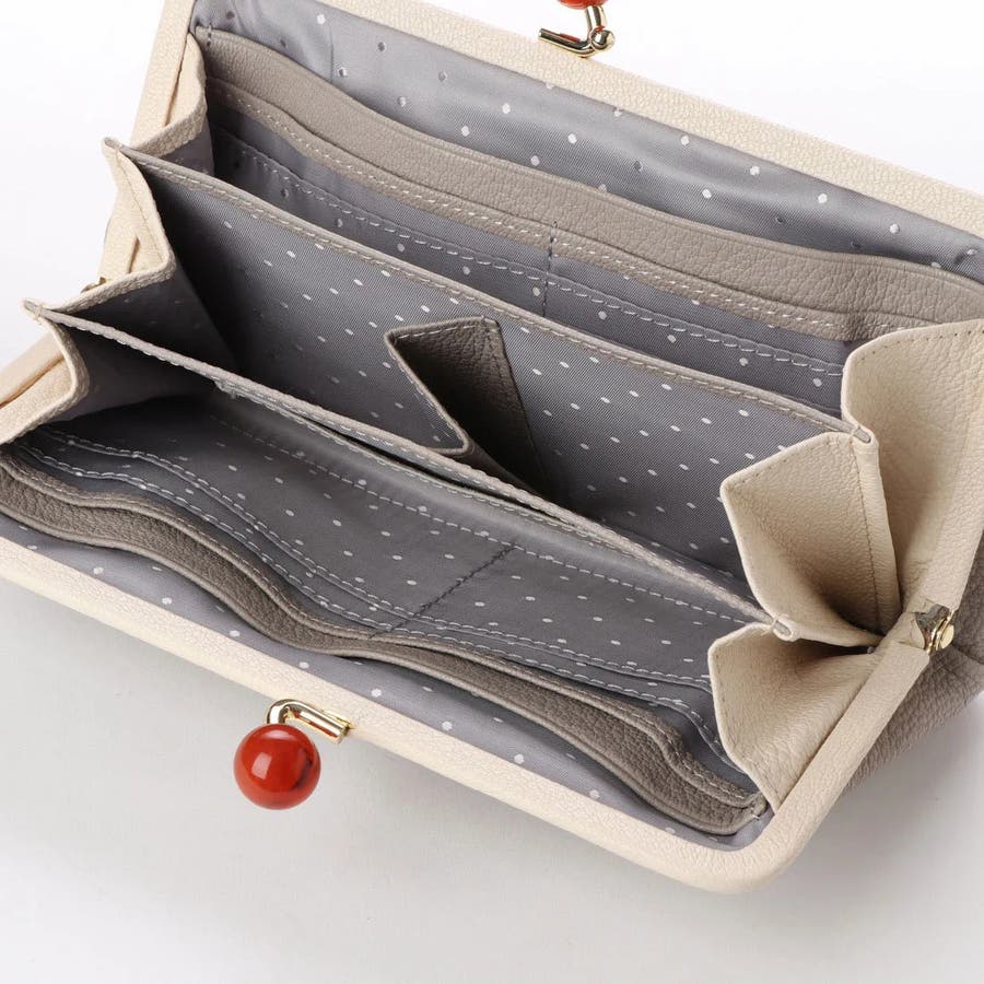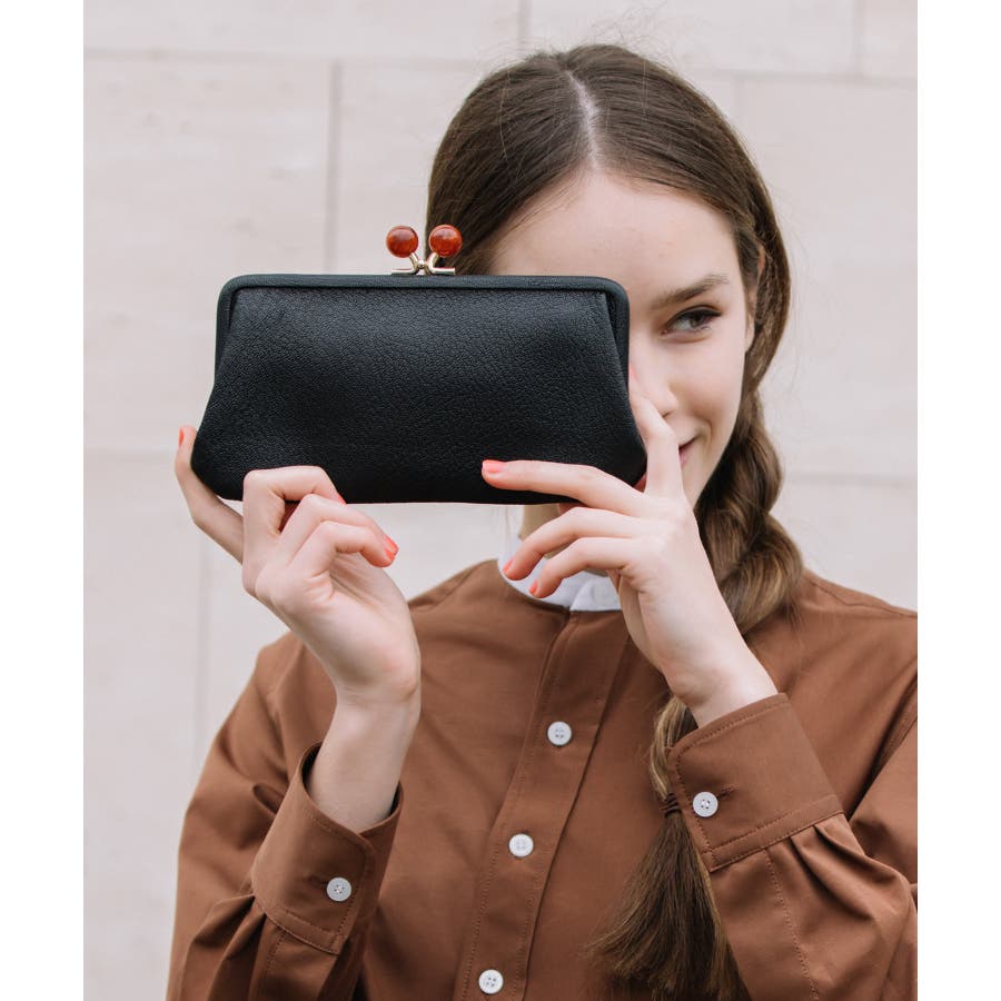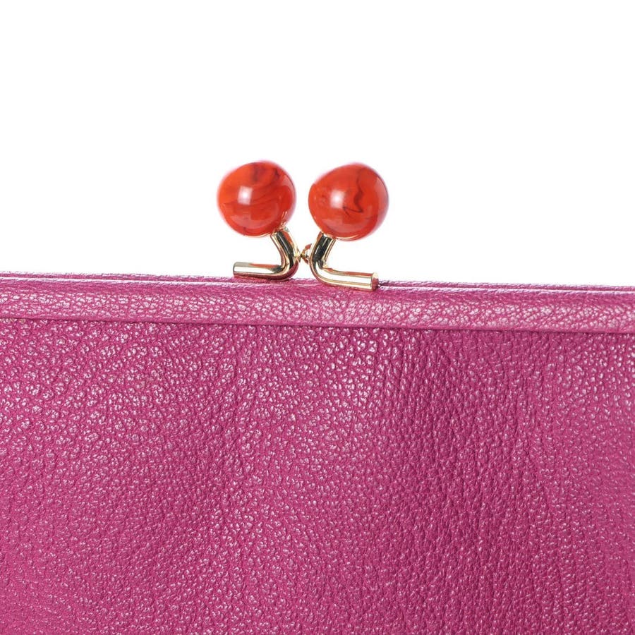 がま口部分のアクリル玉がかわいい長財布。