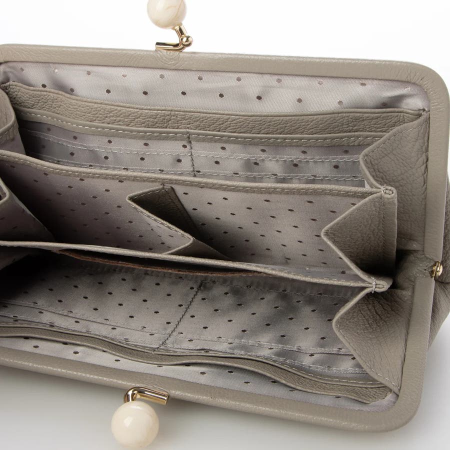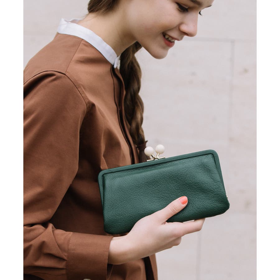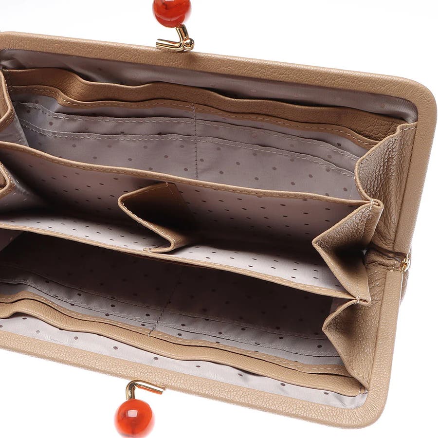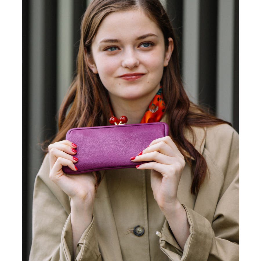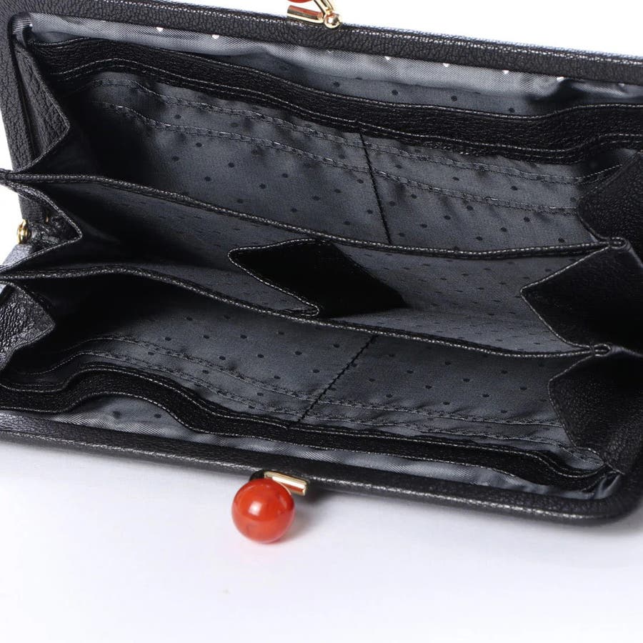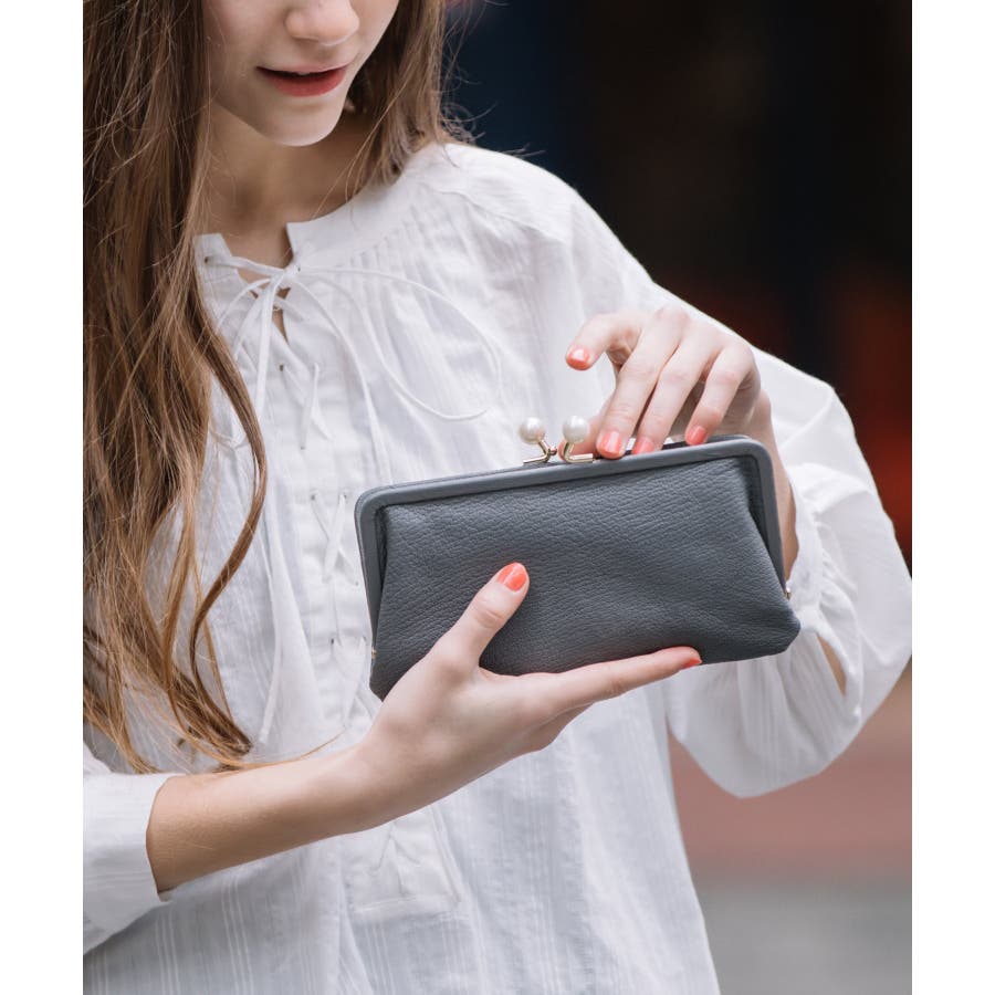 がま口部分のアクリル玉がかわいい長財布。