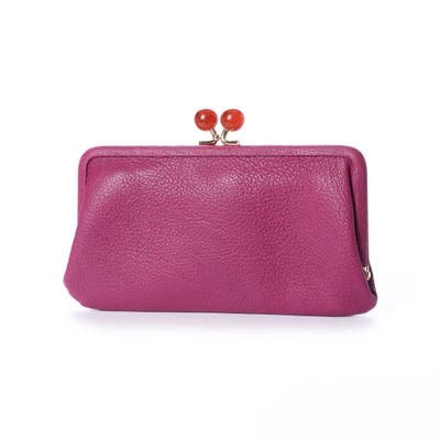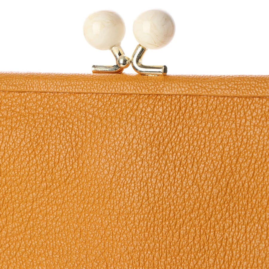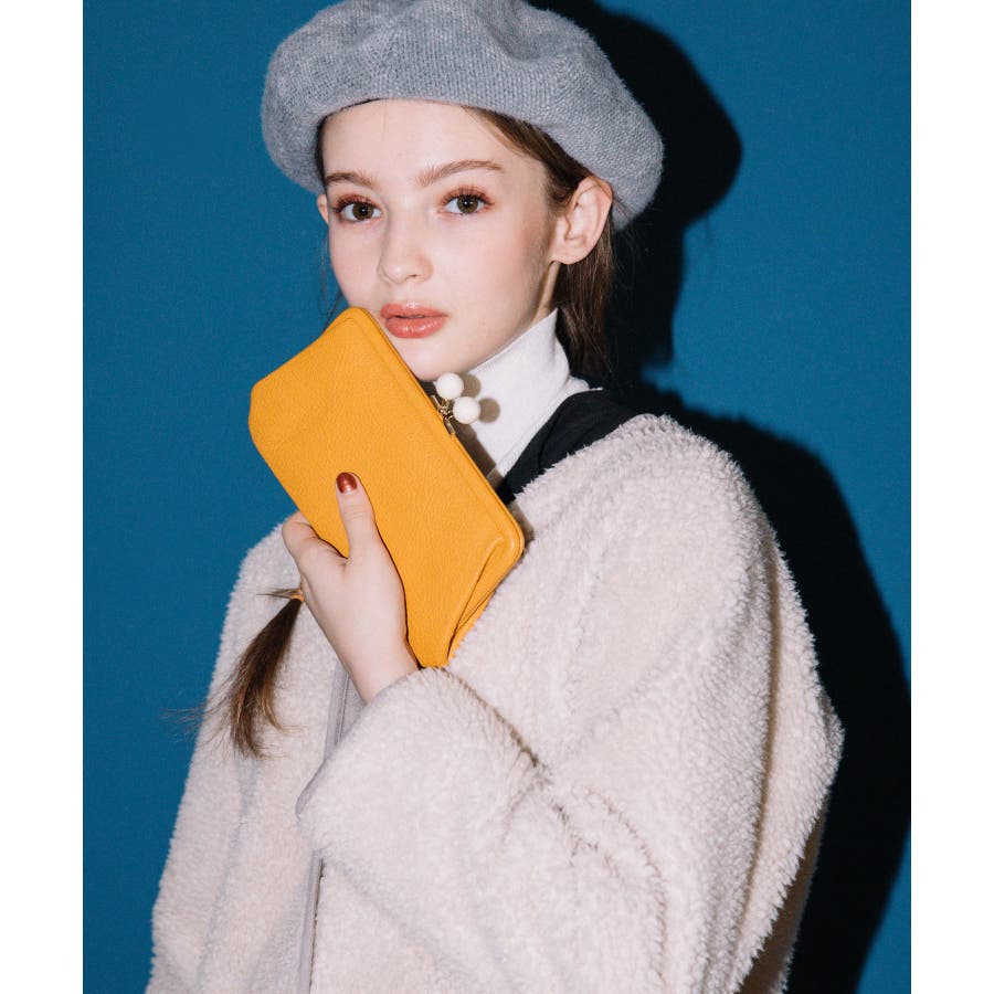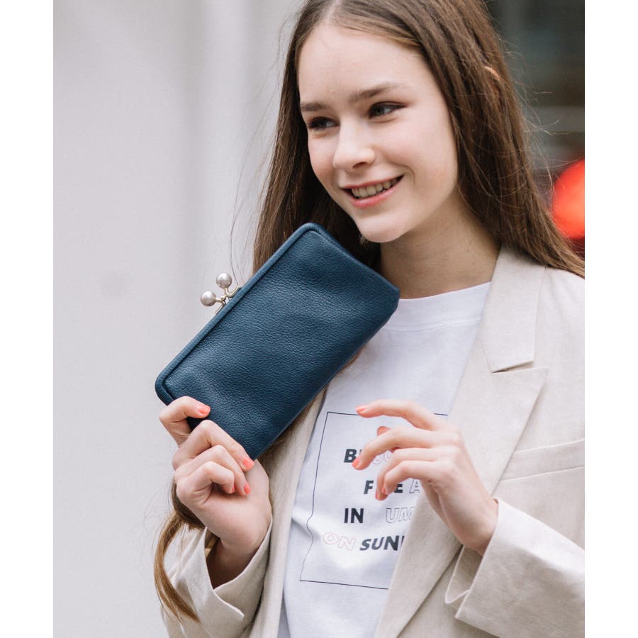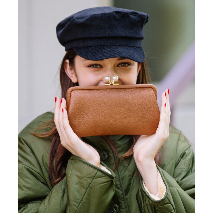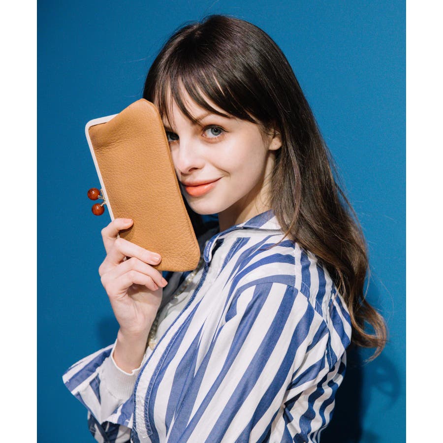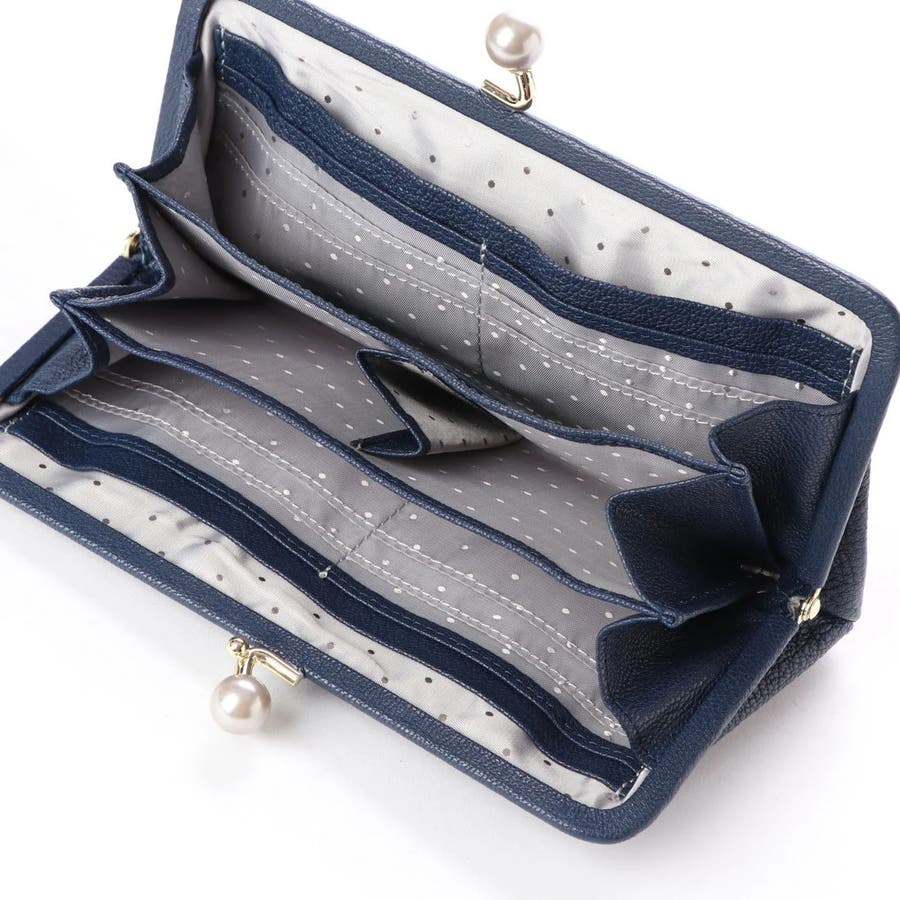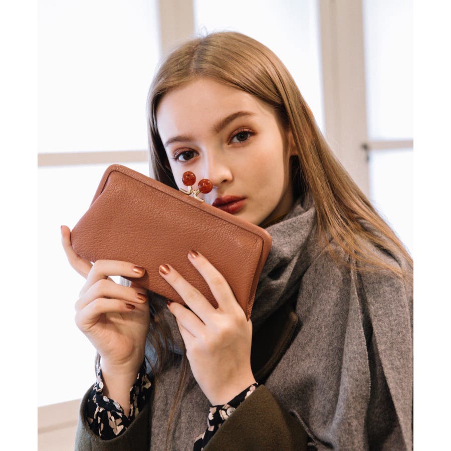 がま口部分のアクリル玉がかわいい長財布。
