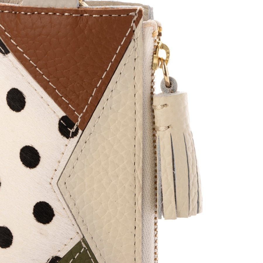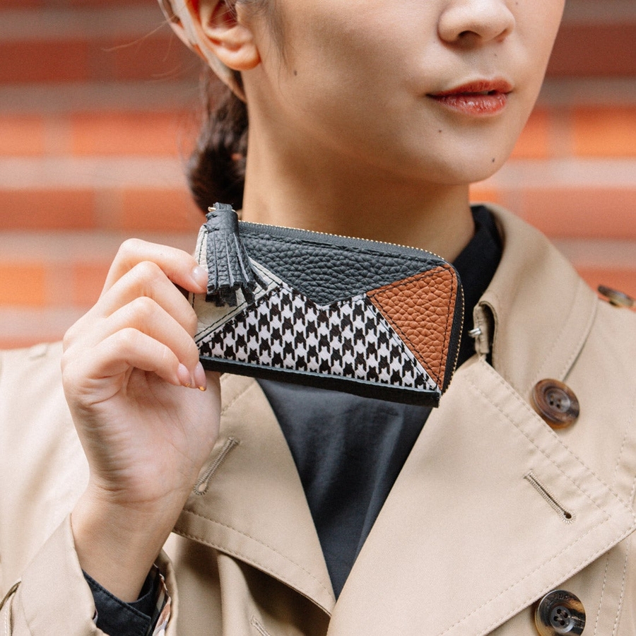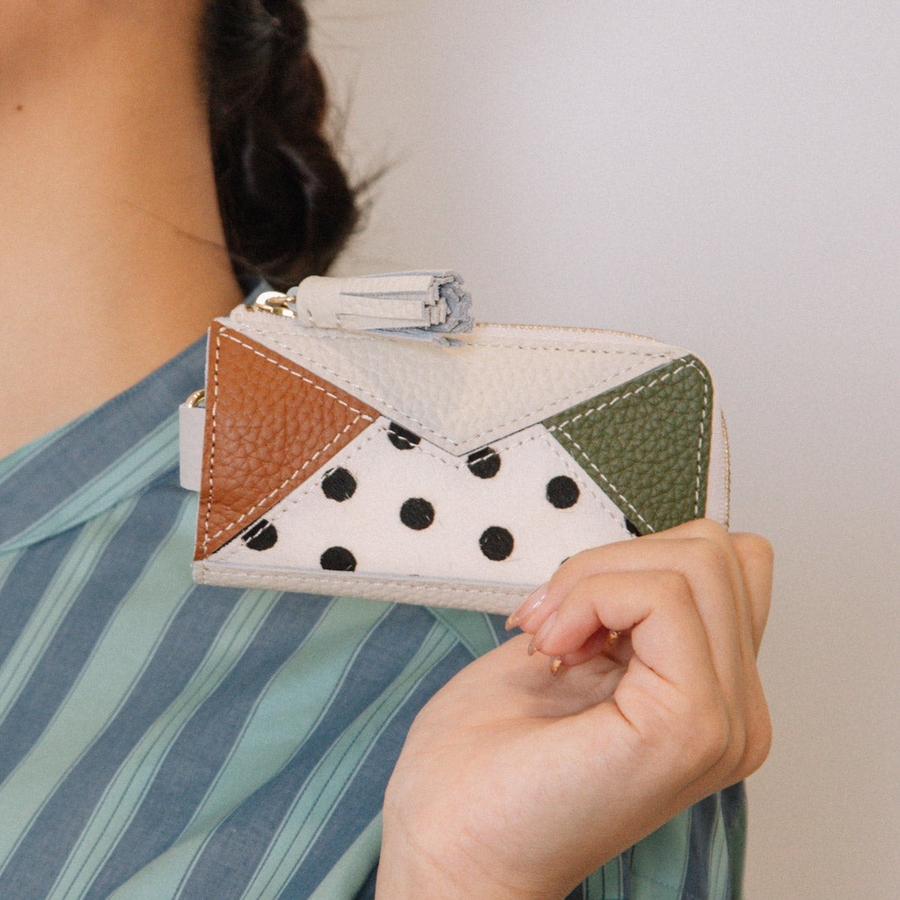 他のバッグや小物を生産した際に使用されなかった革部位も組み合わせて使用することで廃棄をリデュースし、エコにつなげるという思いを込めています。