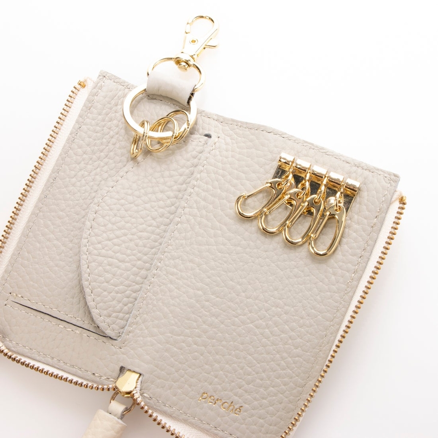 キーリングは7つあり、スマートキーも入る大きさで小銭を入れられるポケットも付いています。