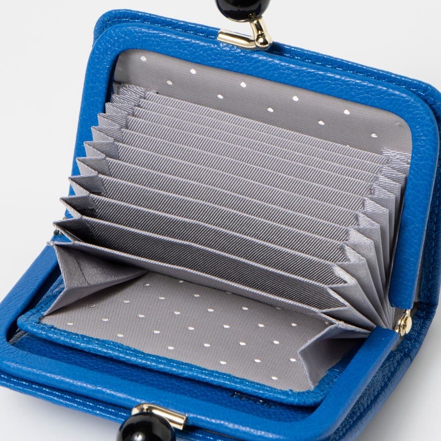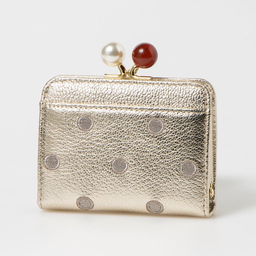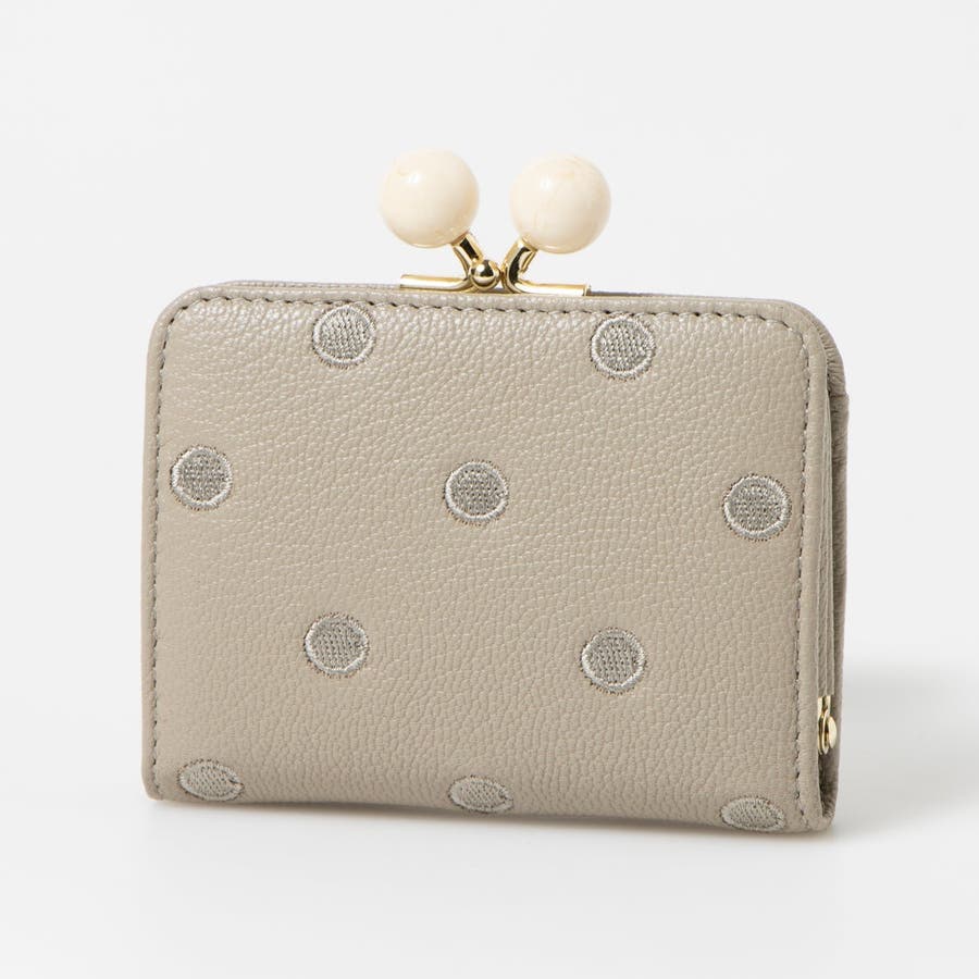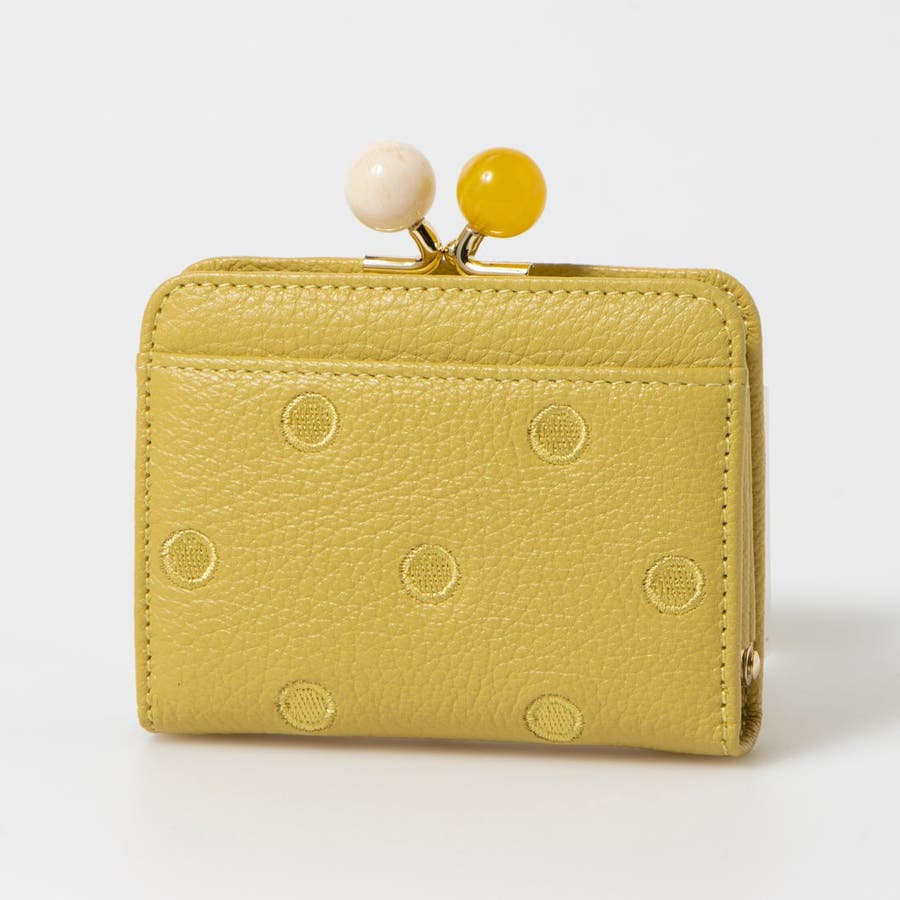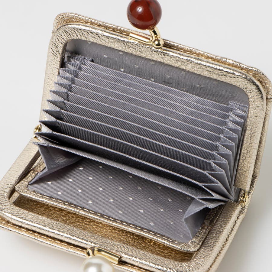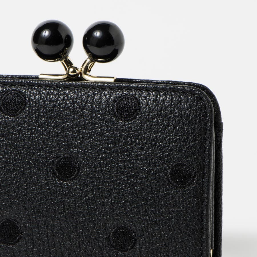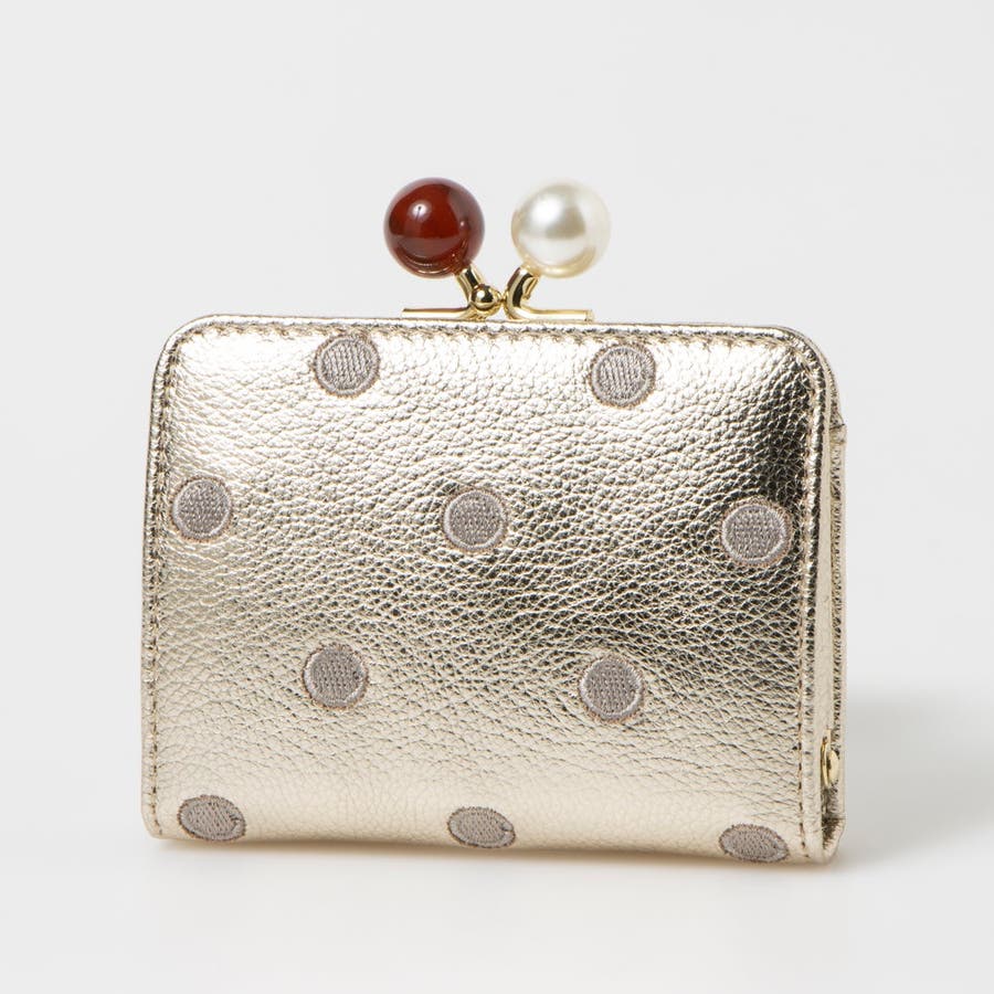 アクリル玉の付いたガマ口とドット刺繍がかわいいジャバラカードウォレット