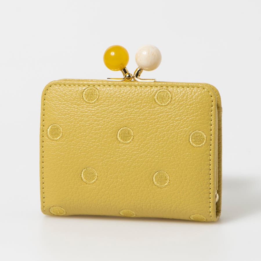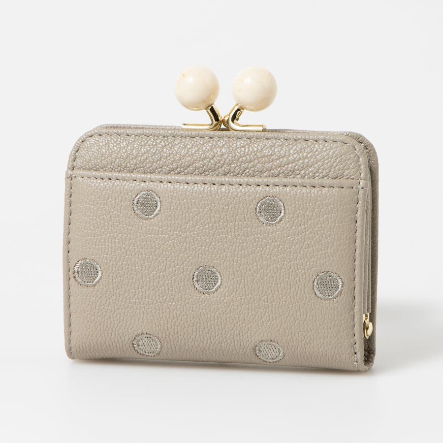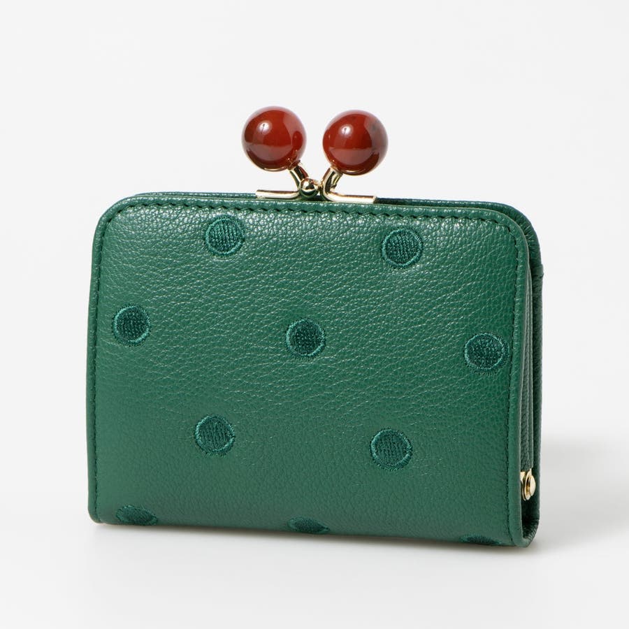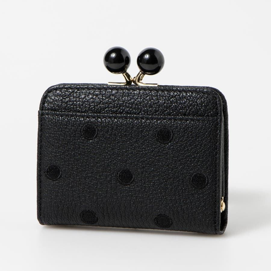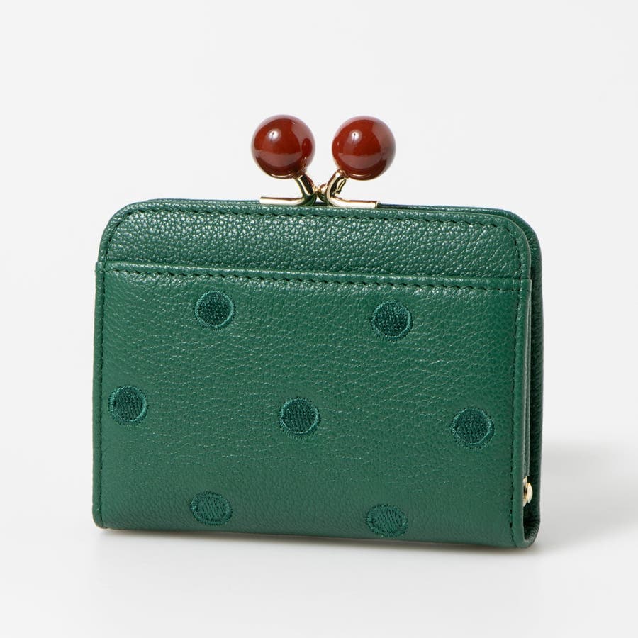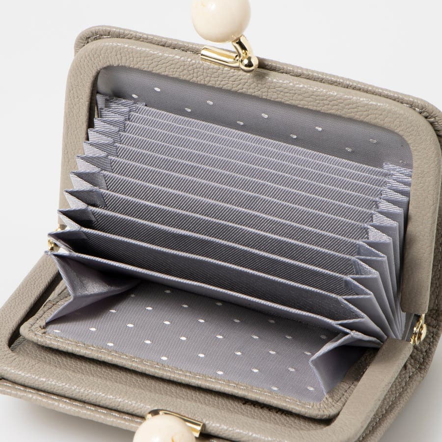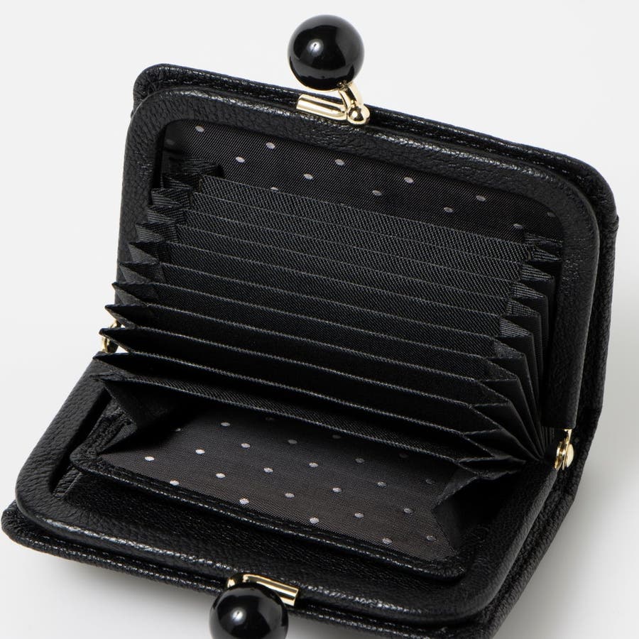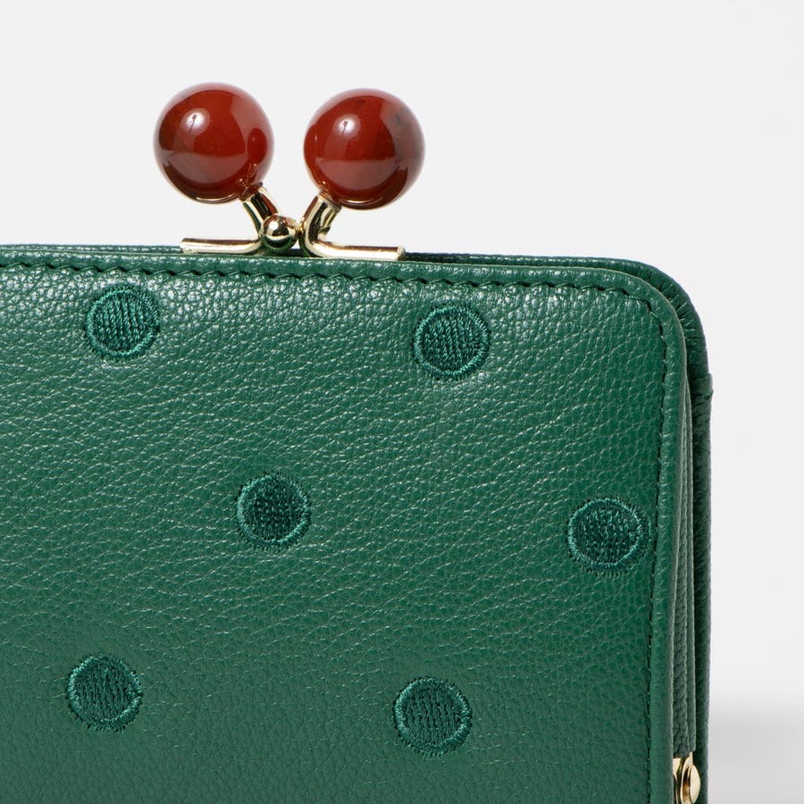アクリル玉の付いたガマ口とドット刺繍がかわいいジャバラカードウォレット