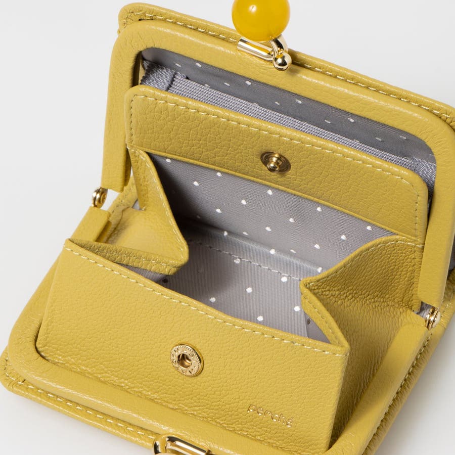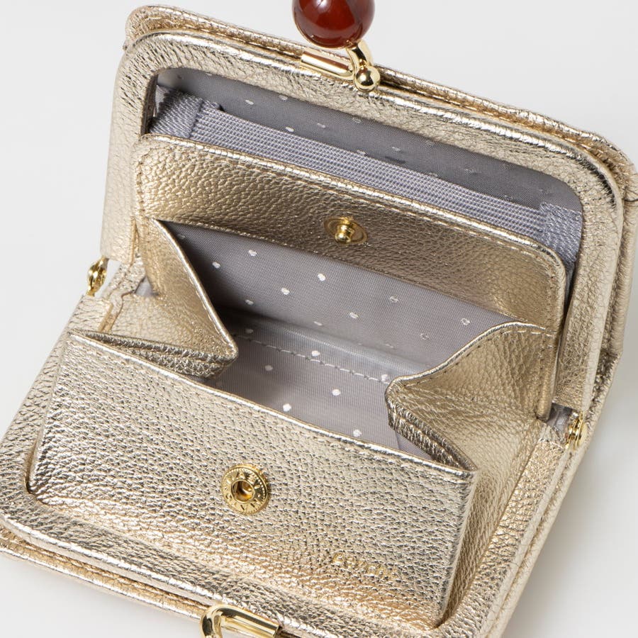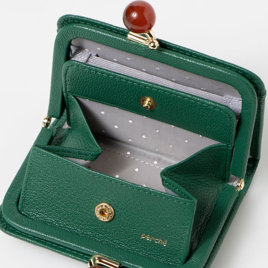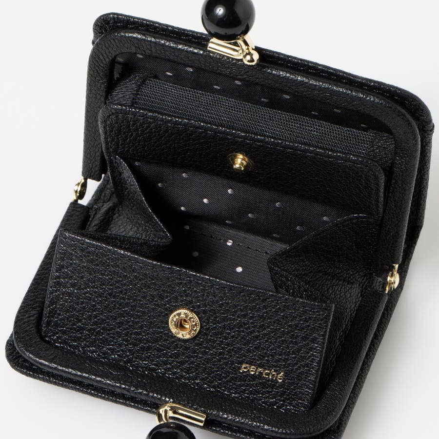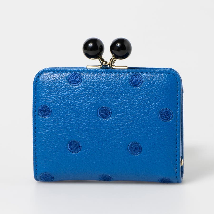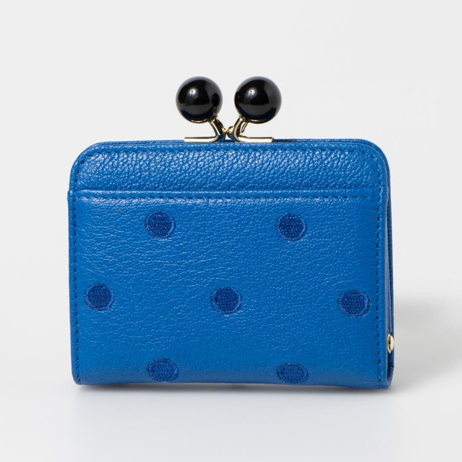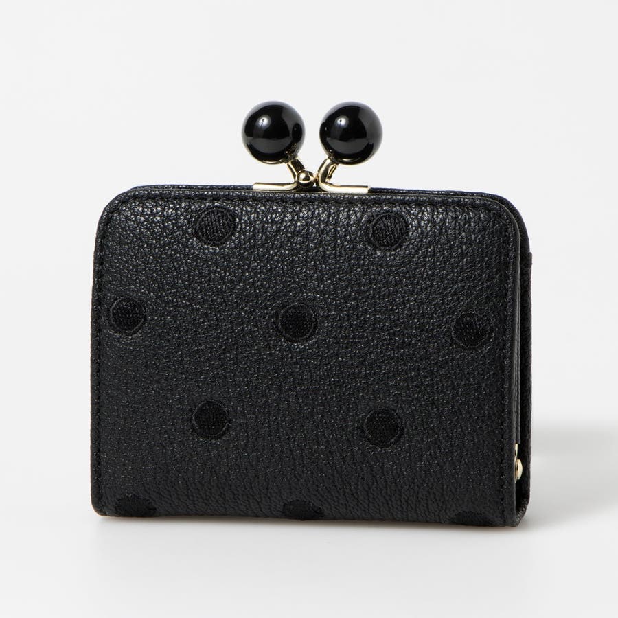 アクリル玉の付いたガマ口とドット刺繍がかわいいジャバラカードウォレット