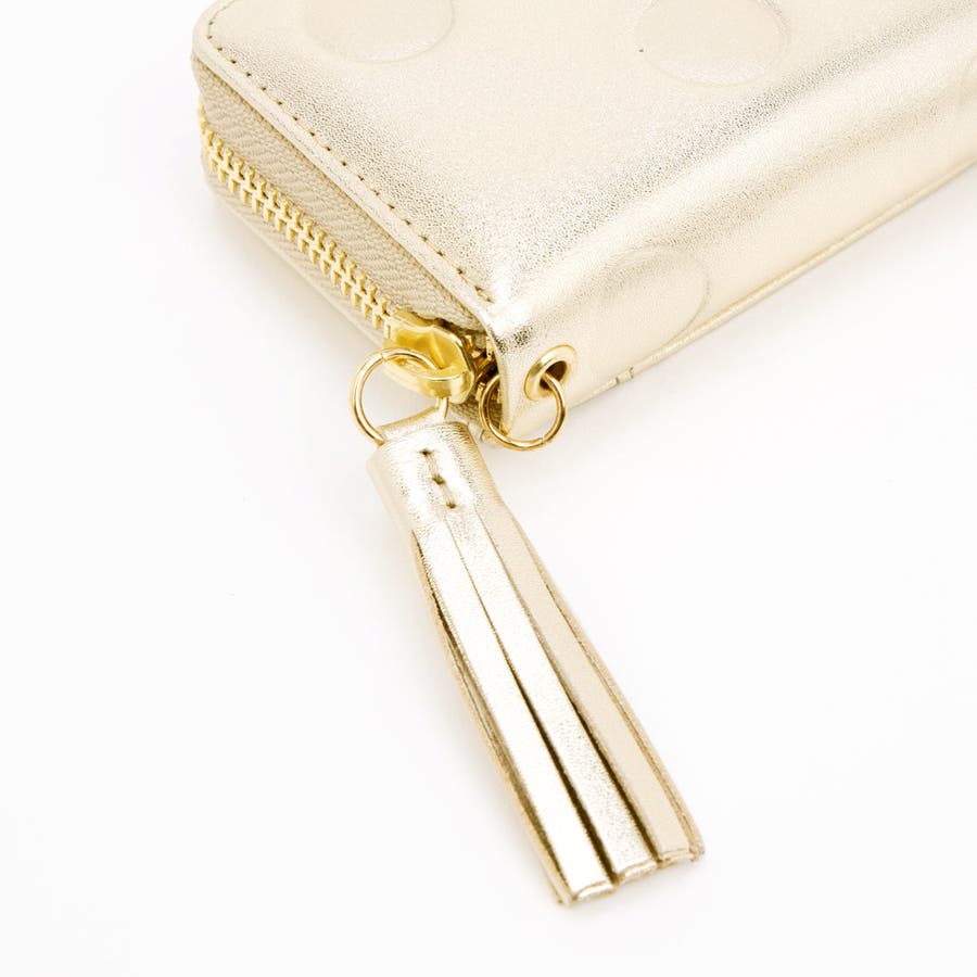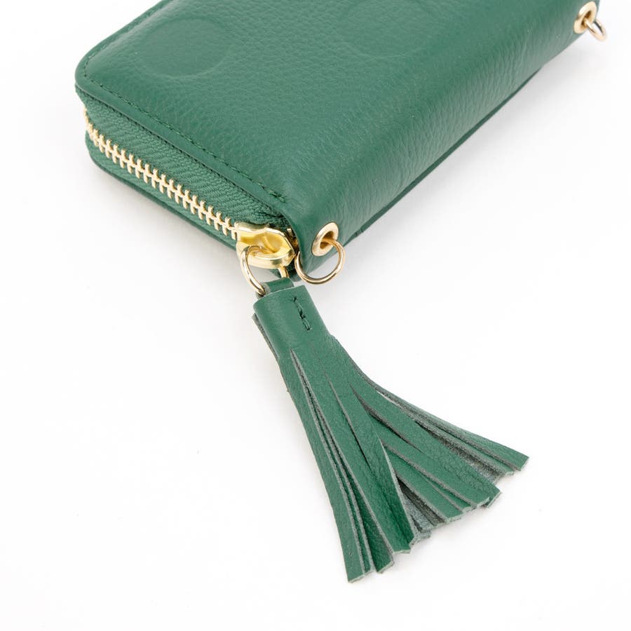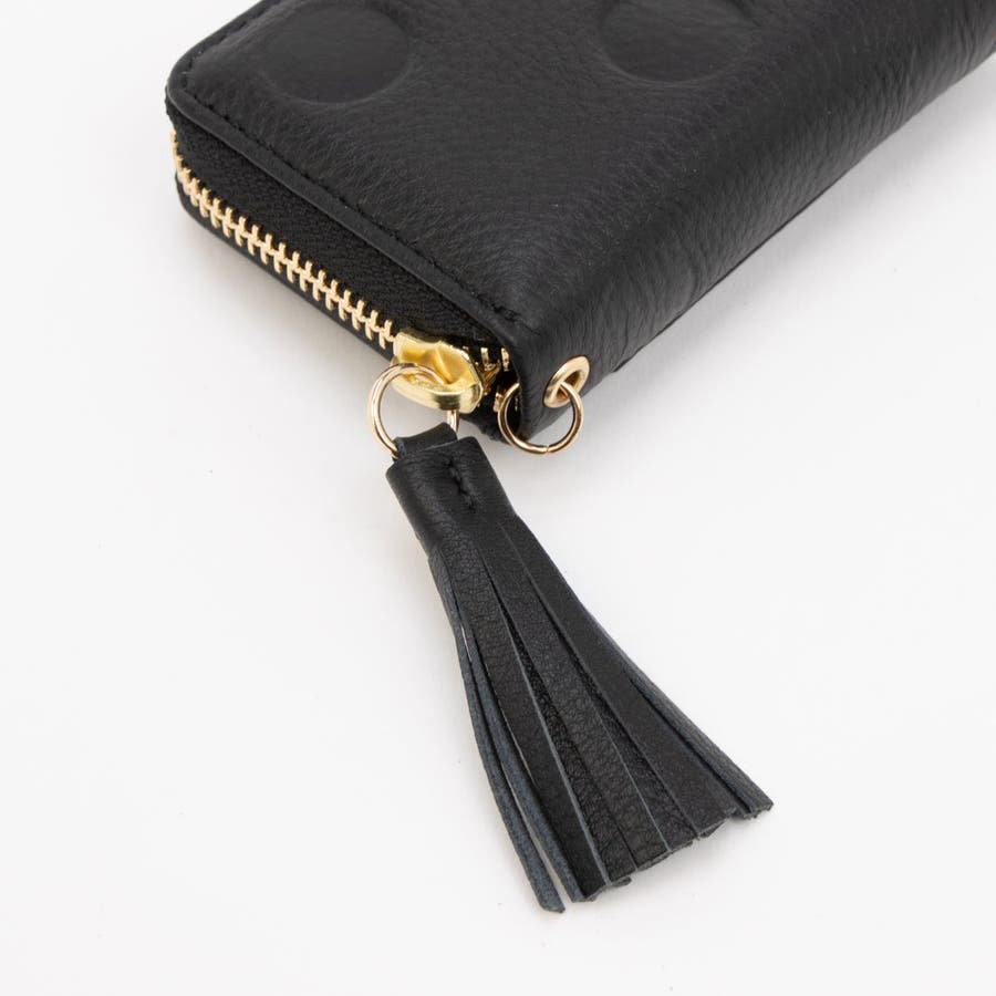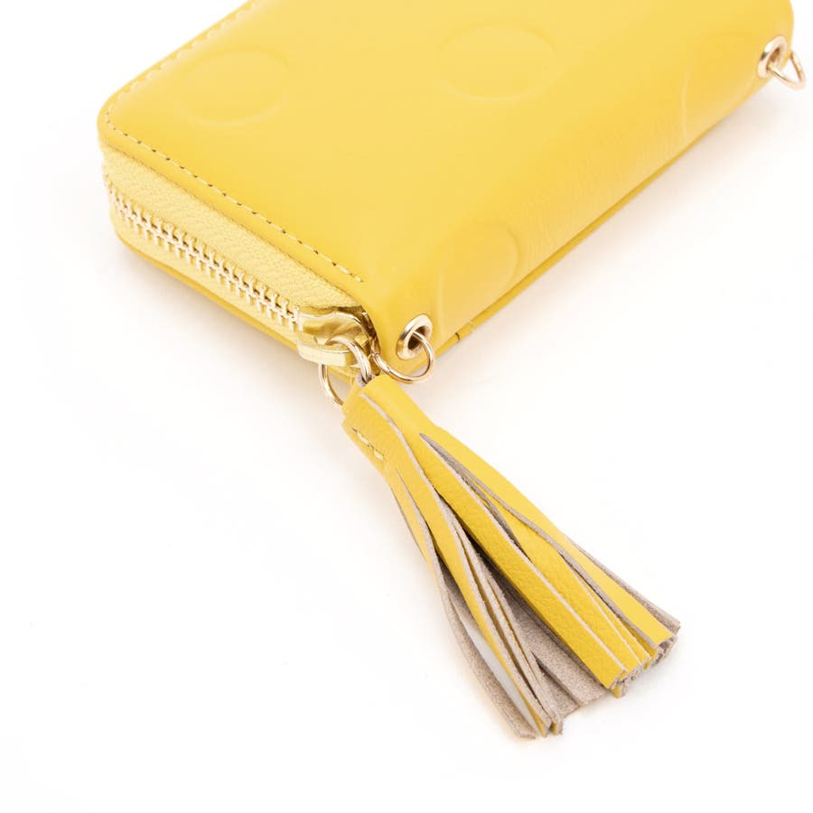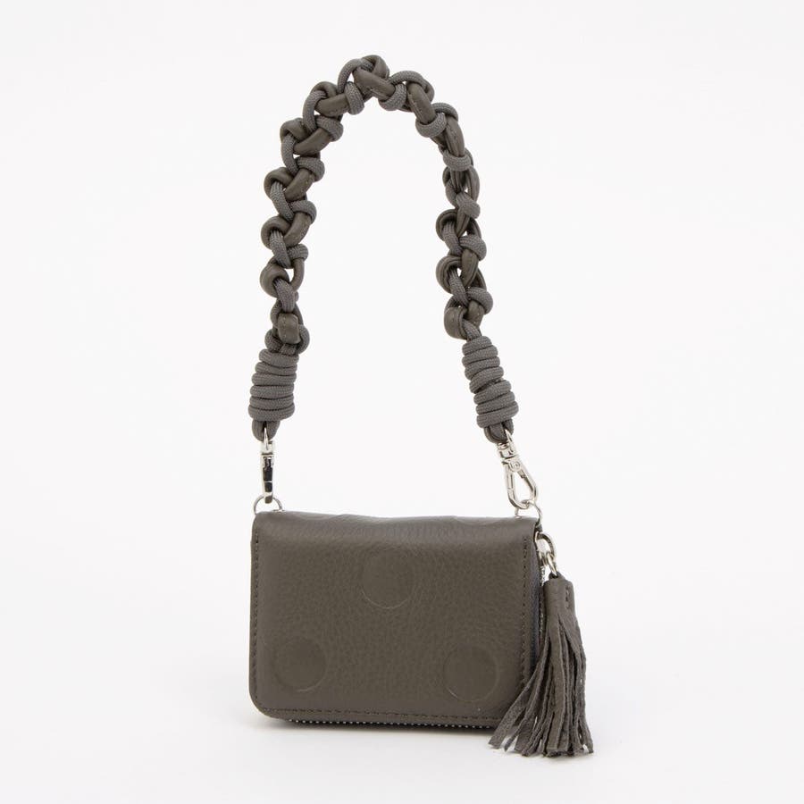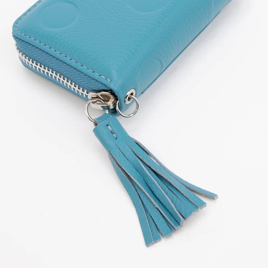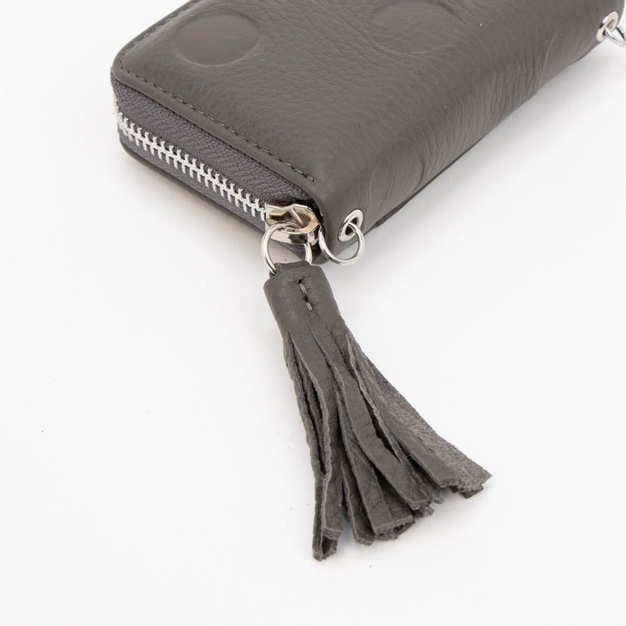 ドット型押しを施した牛革を使用したジャバラチャームウォレットショルダー。