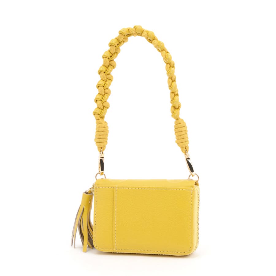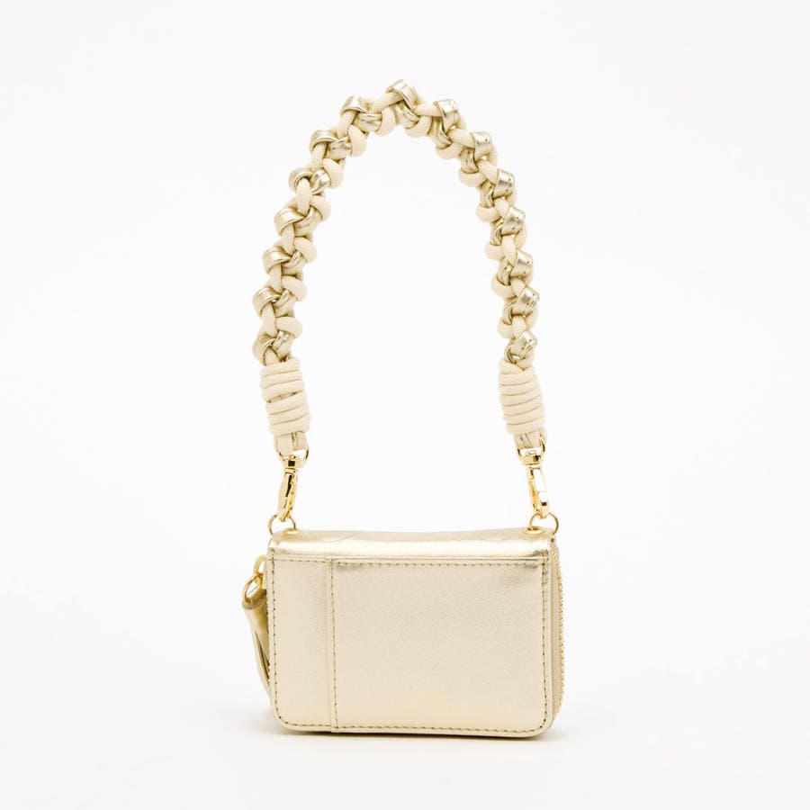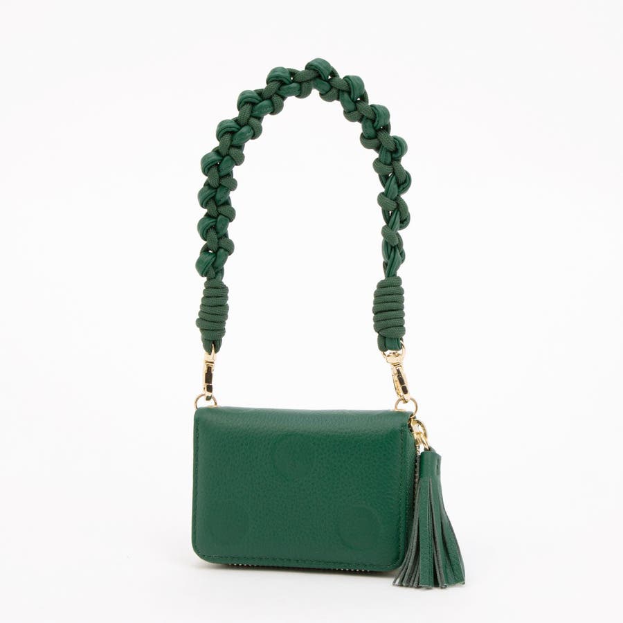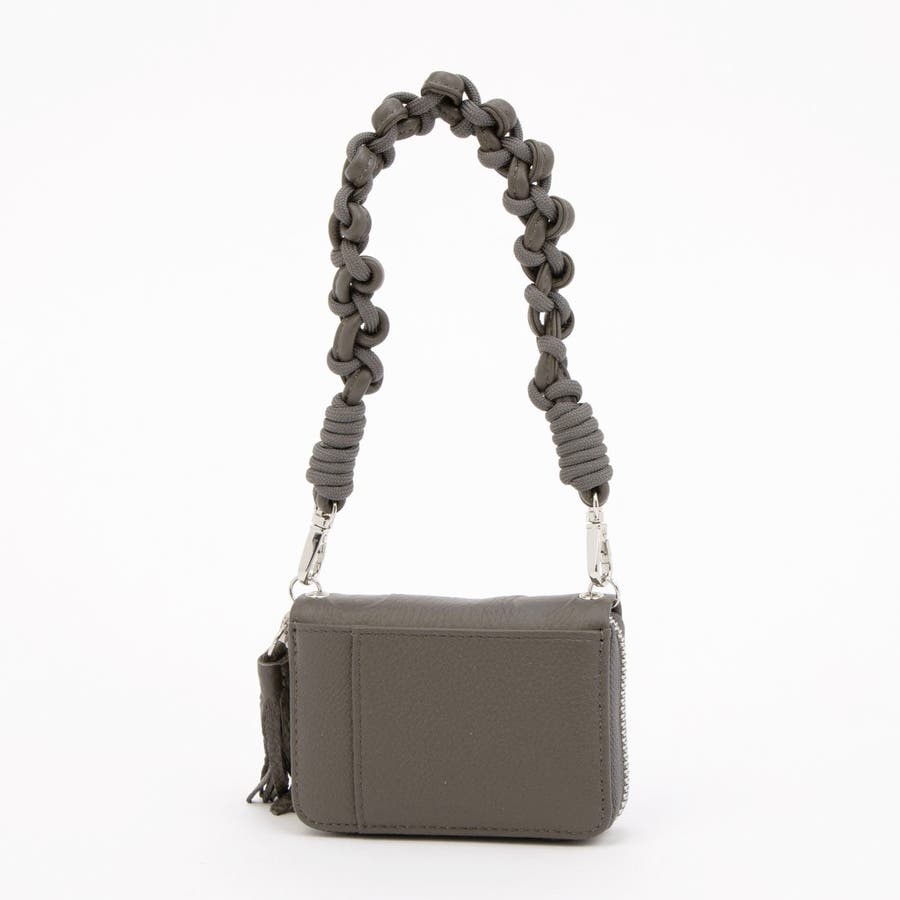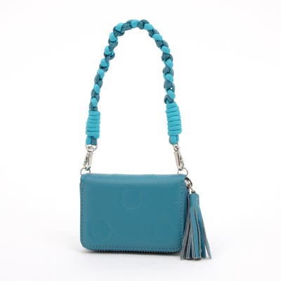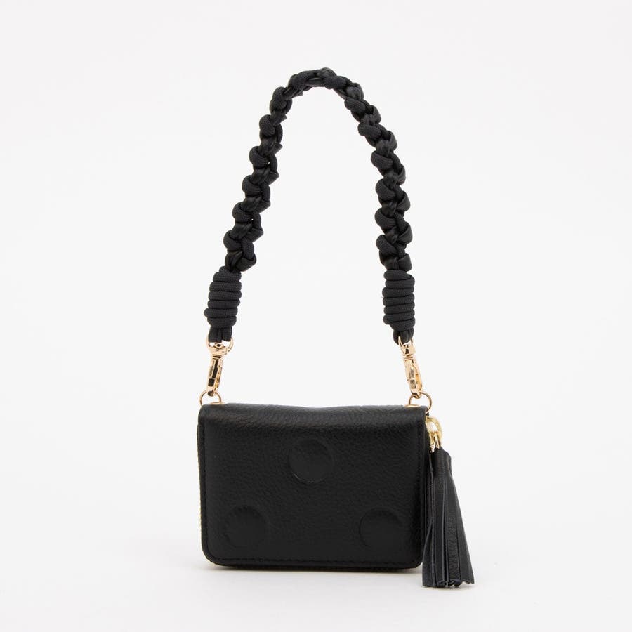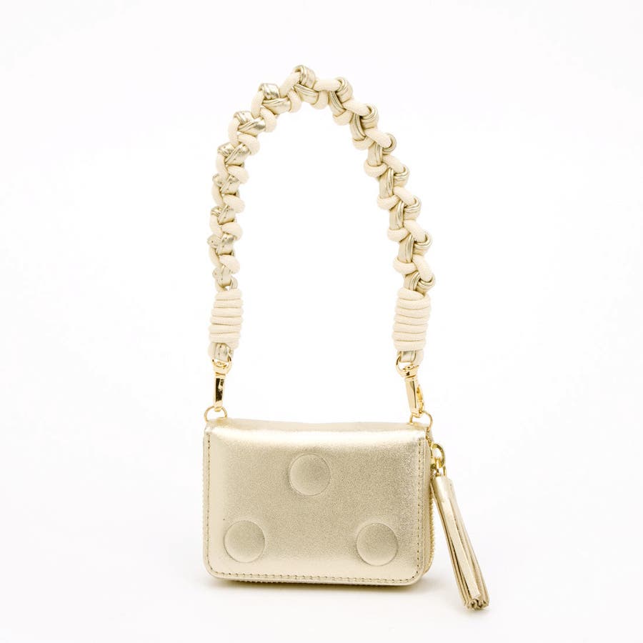 ドット型押しを施した牛革を使用したジャバラチャームウォレットショルダー。