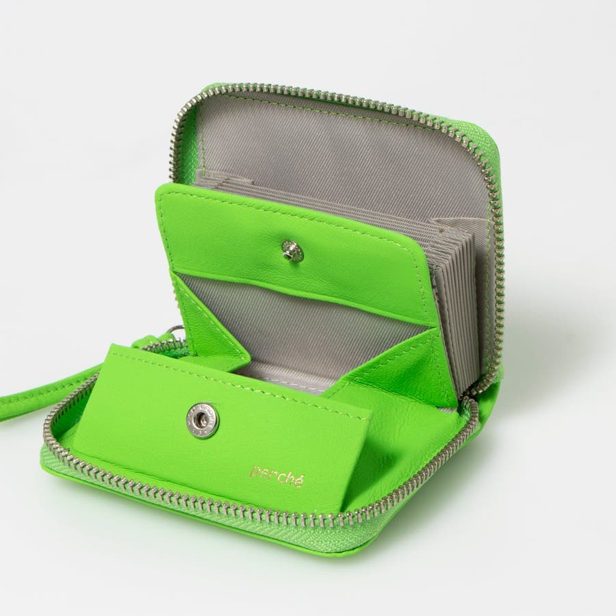 ペルケ perche / 蛍光レザーストラップ付き・ジャバラカードウォレット