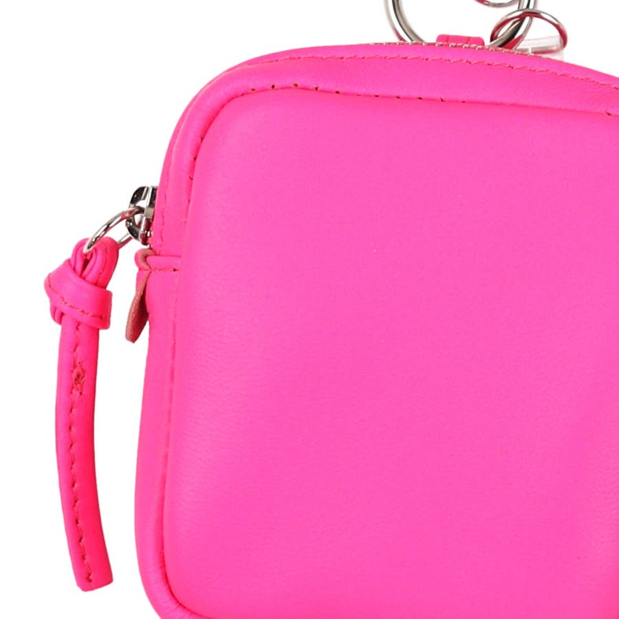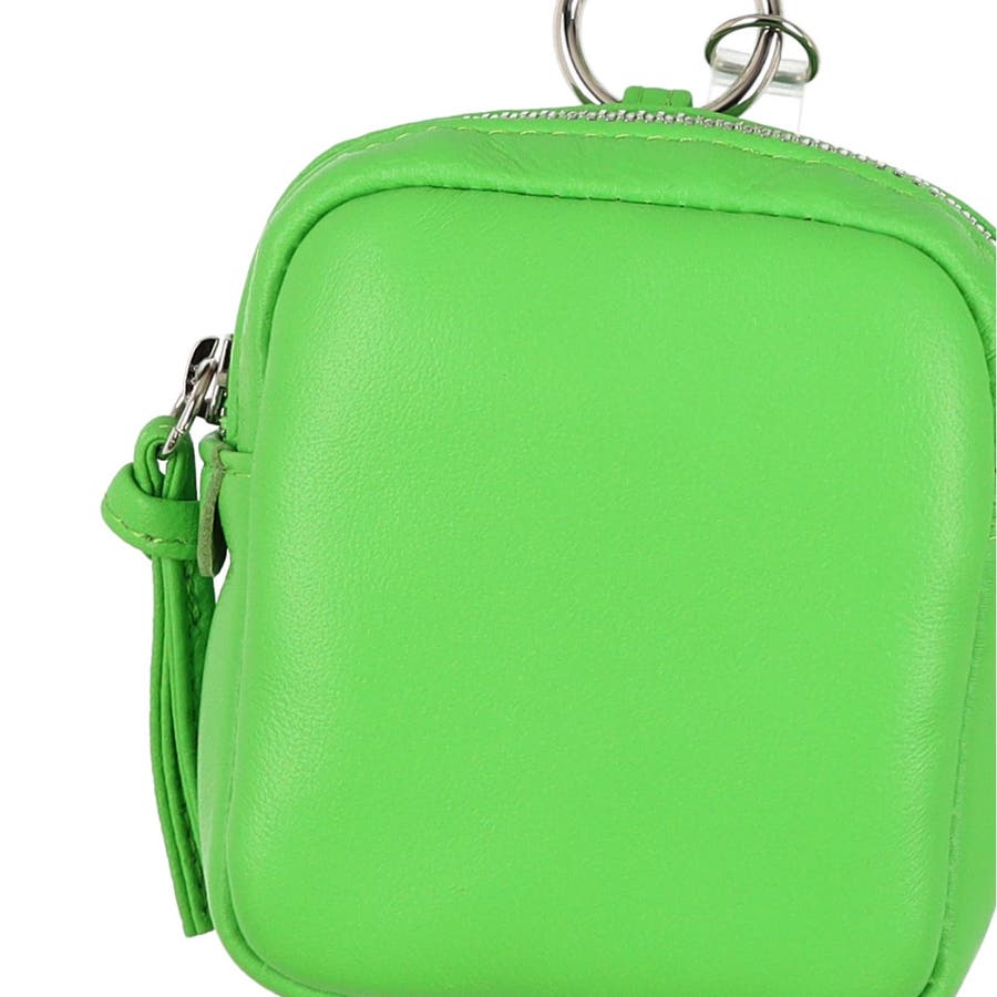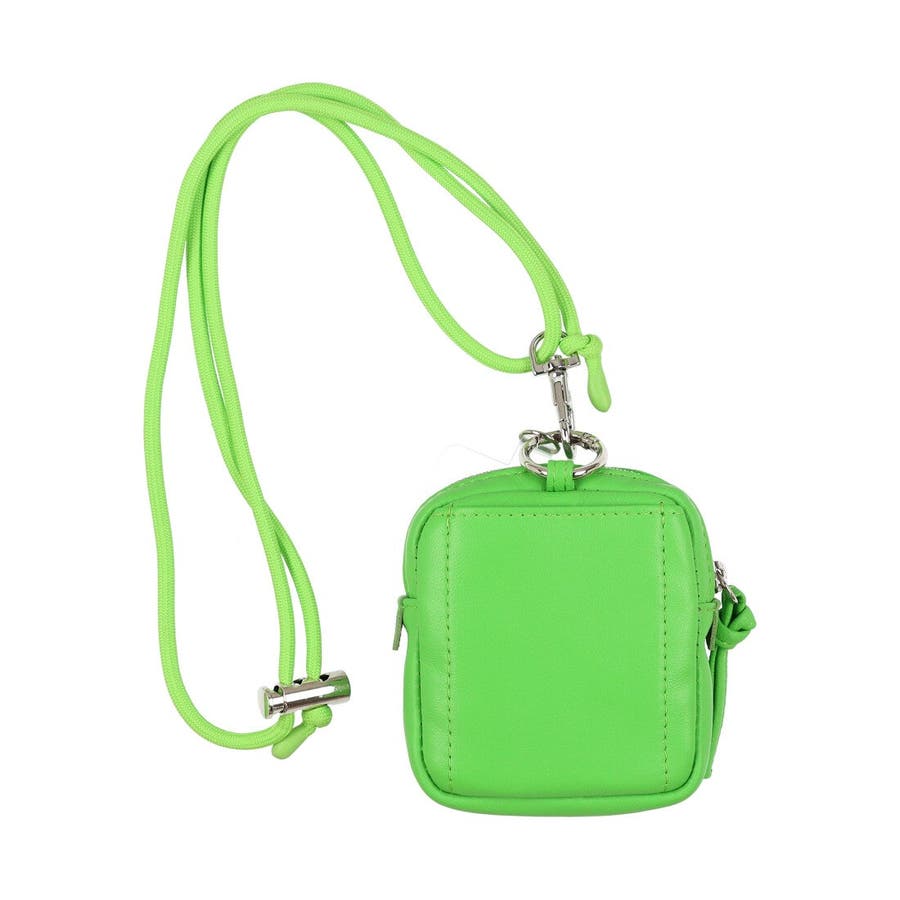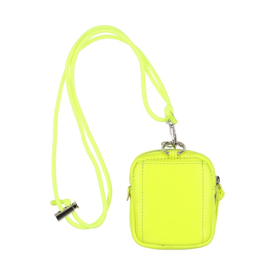 パッと目を引く蛍光カラーのシープレザーを使用したチャームポーチショルダー。