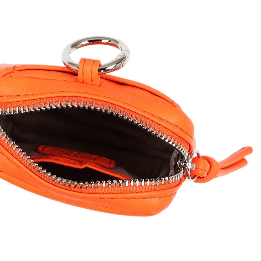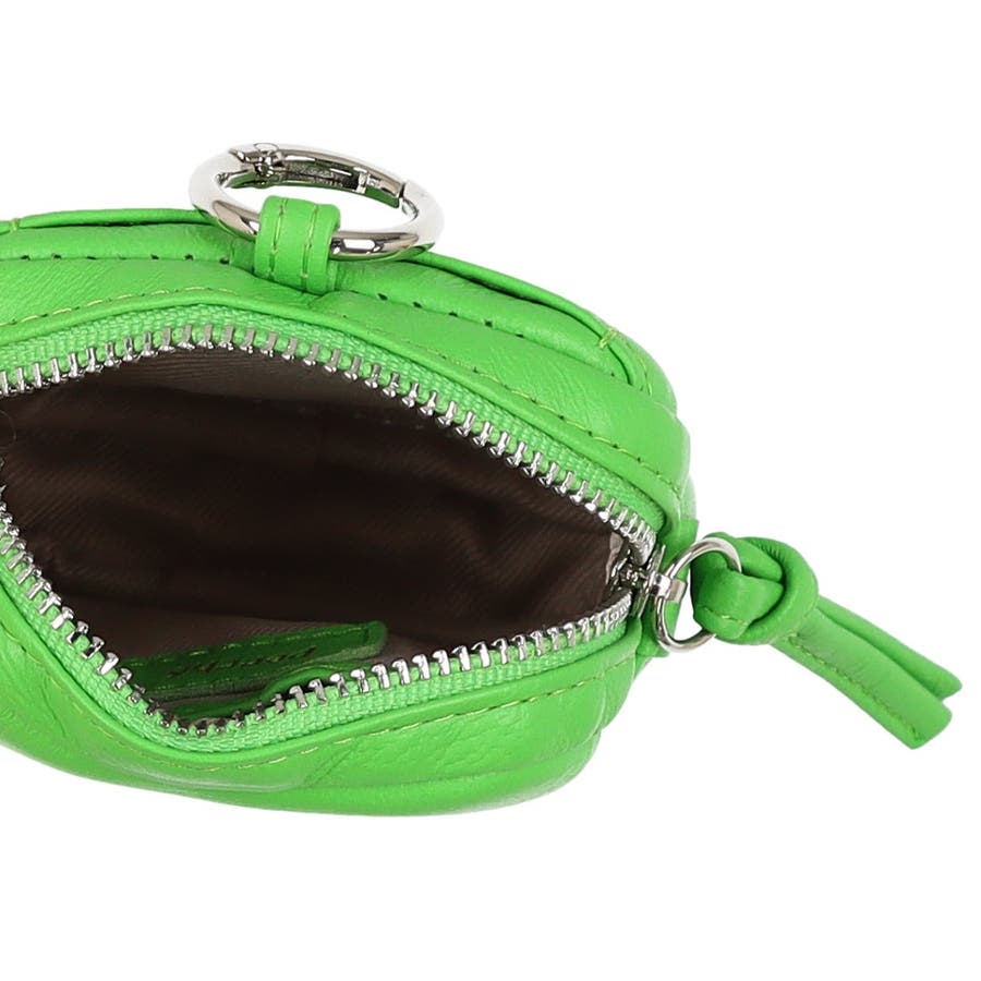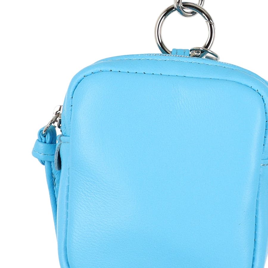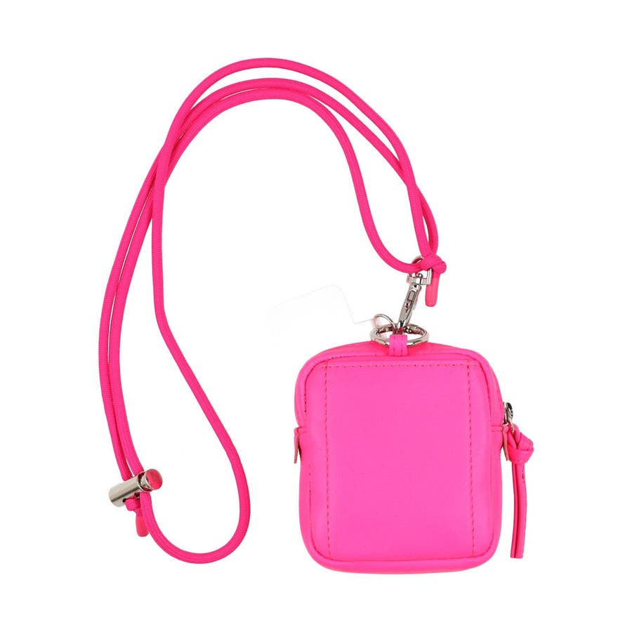 パッと目を引く蛍光カラーのシープレザーを使用したチャームポーチショルダー。