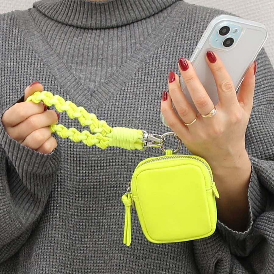 ペルケ perche / 蛍光レザーストラップ付き・チャームポーチショルダー