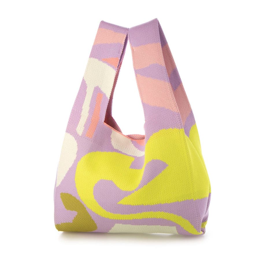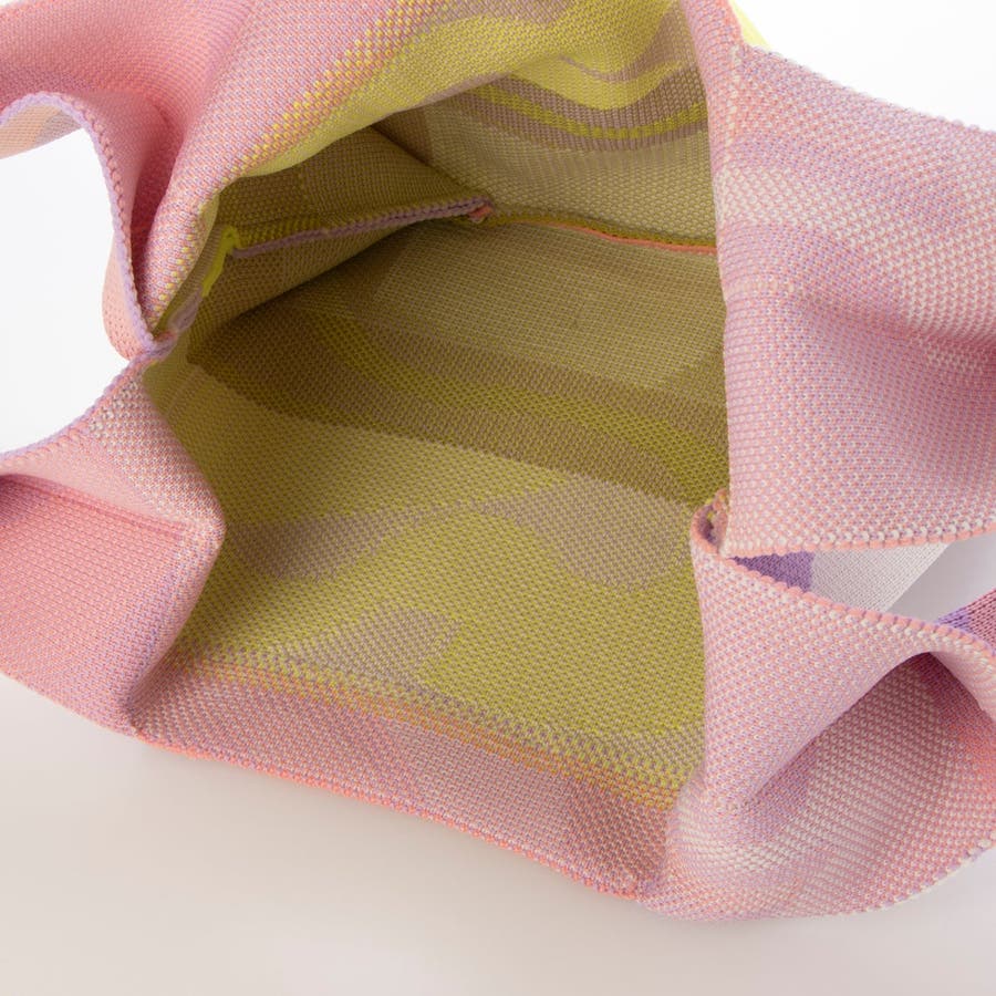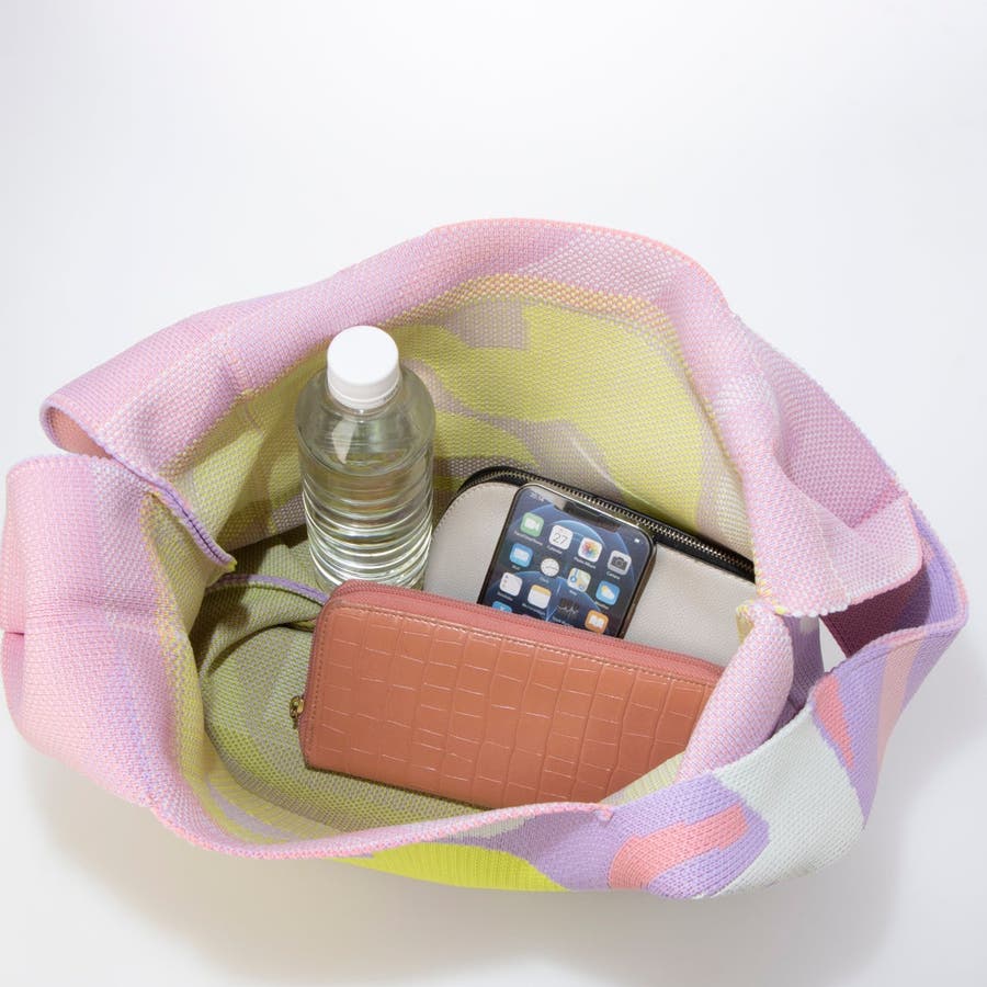インターシャニットの手法で柄を表現したショッパーバッグ。