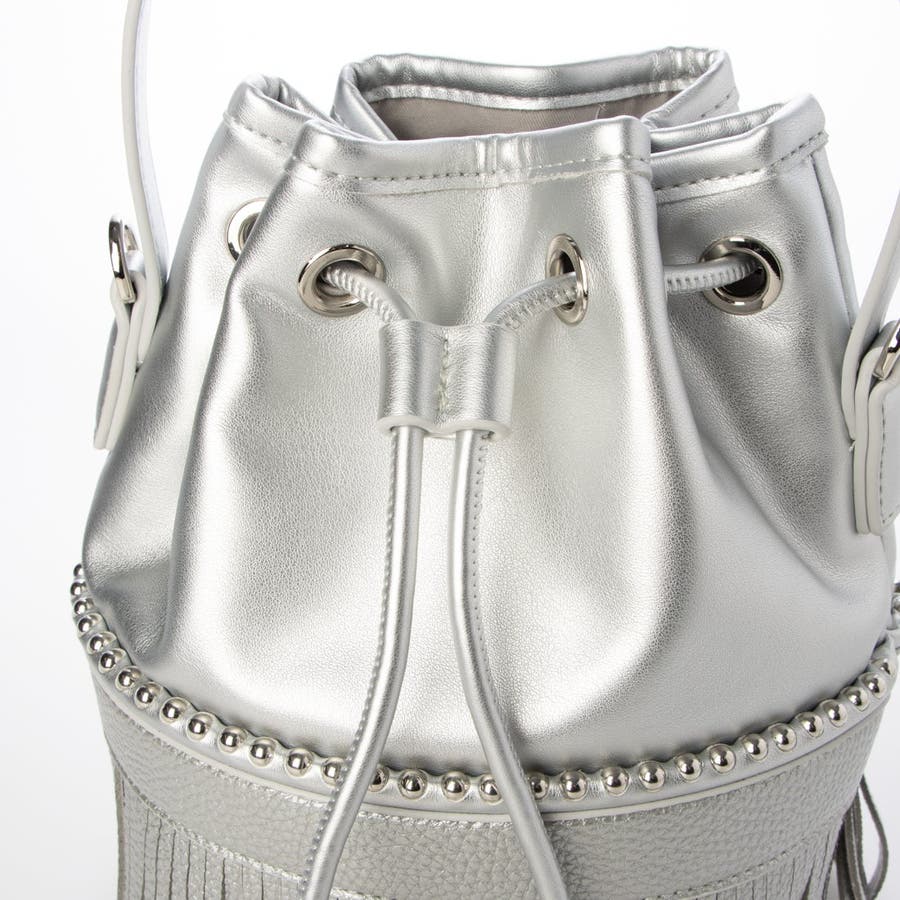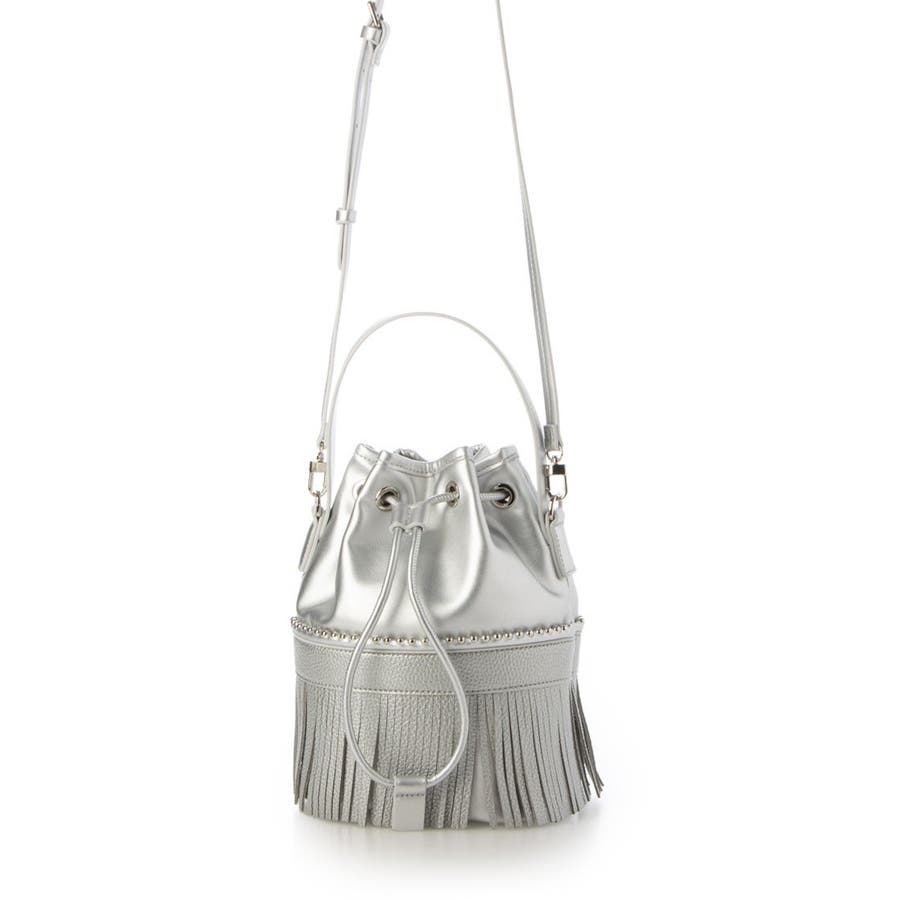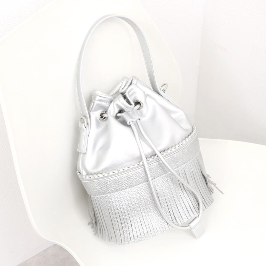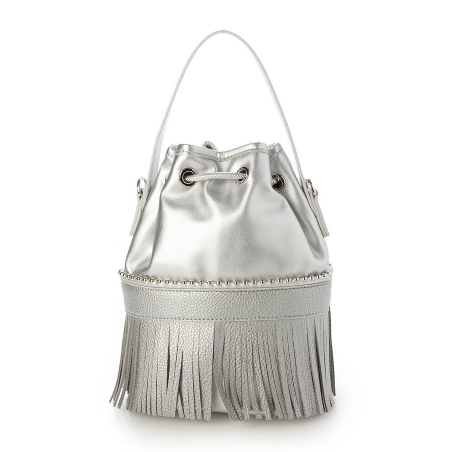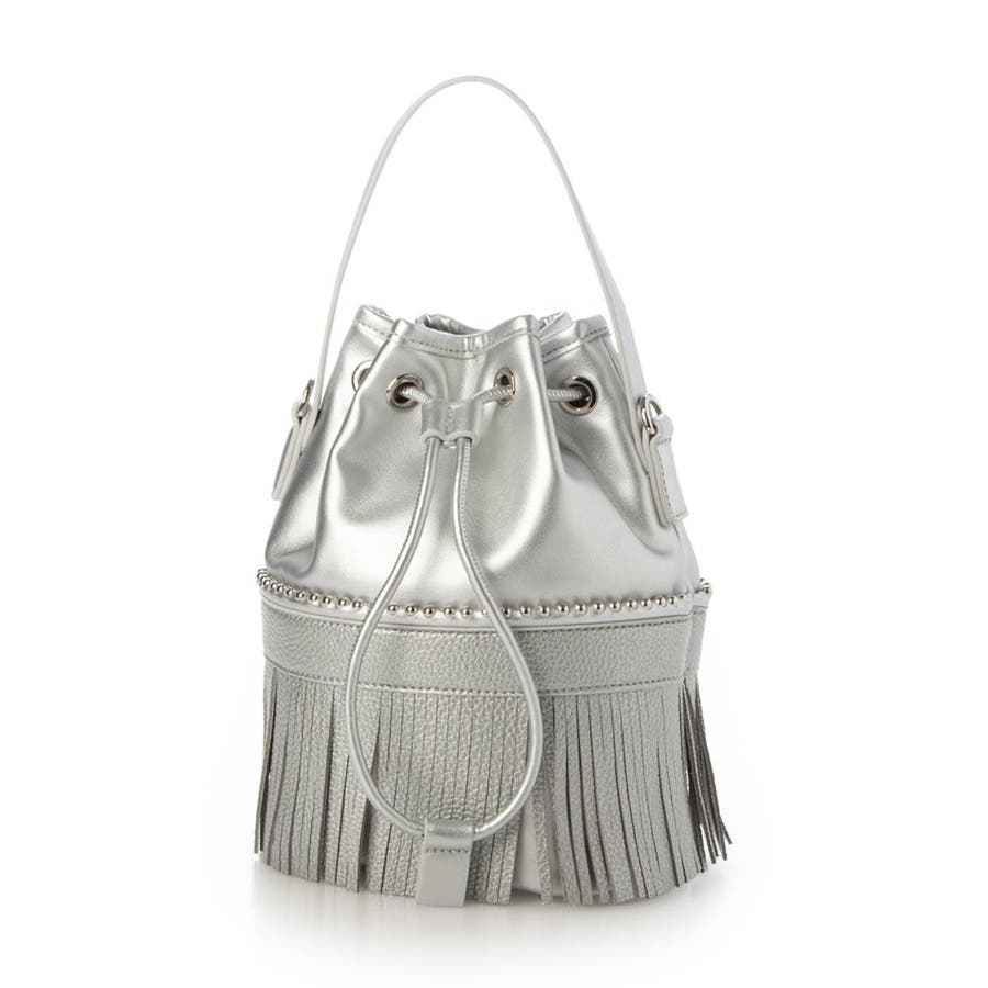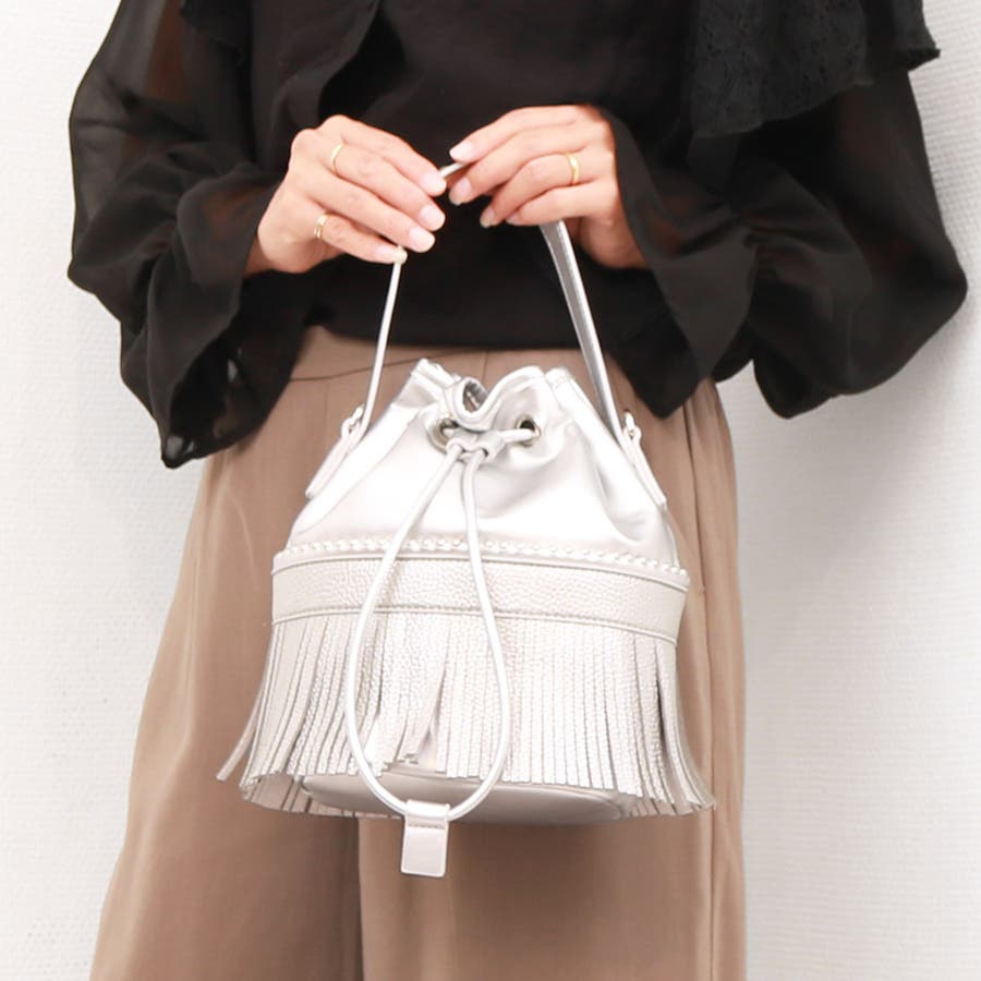 裾部分のフリンジとキラリと光るボールチェーンがポイントの巾着バッグ。