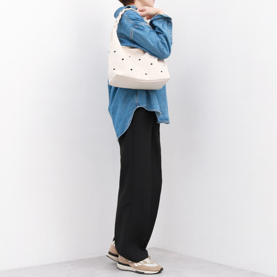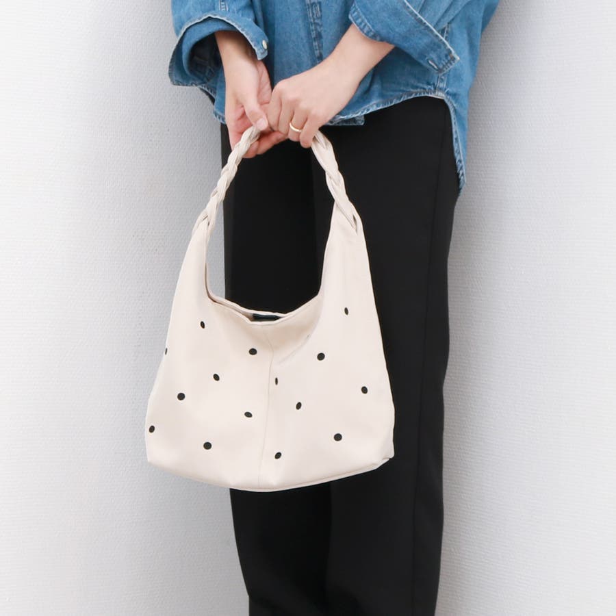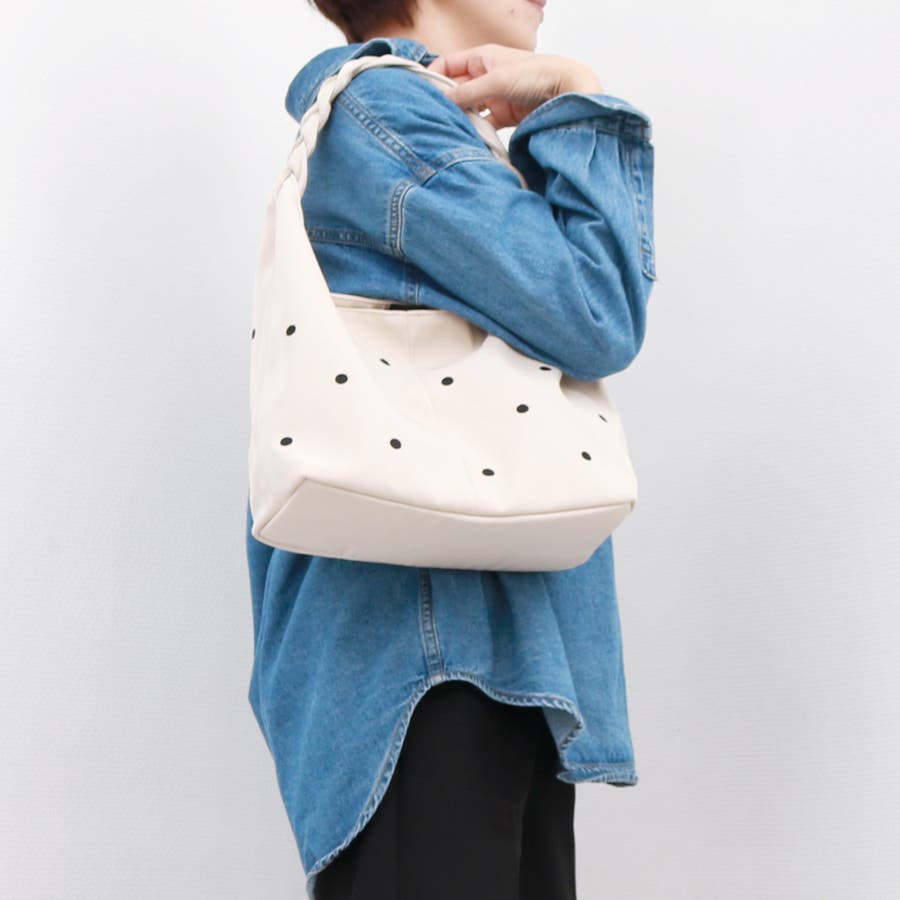 ドット刺繍がポイントの肩入れトート。