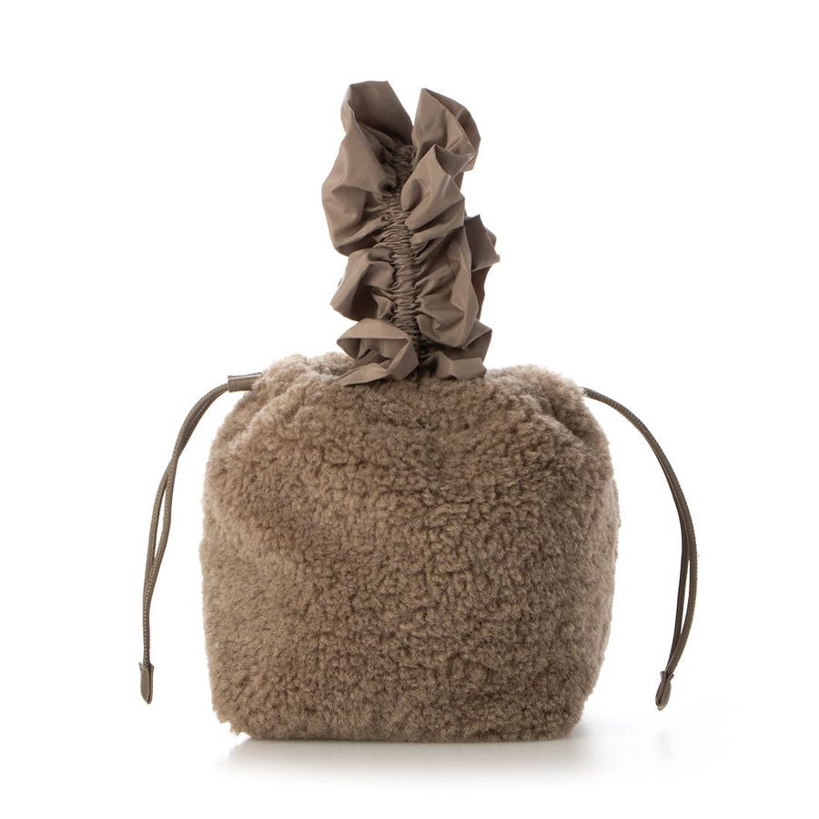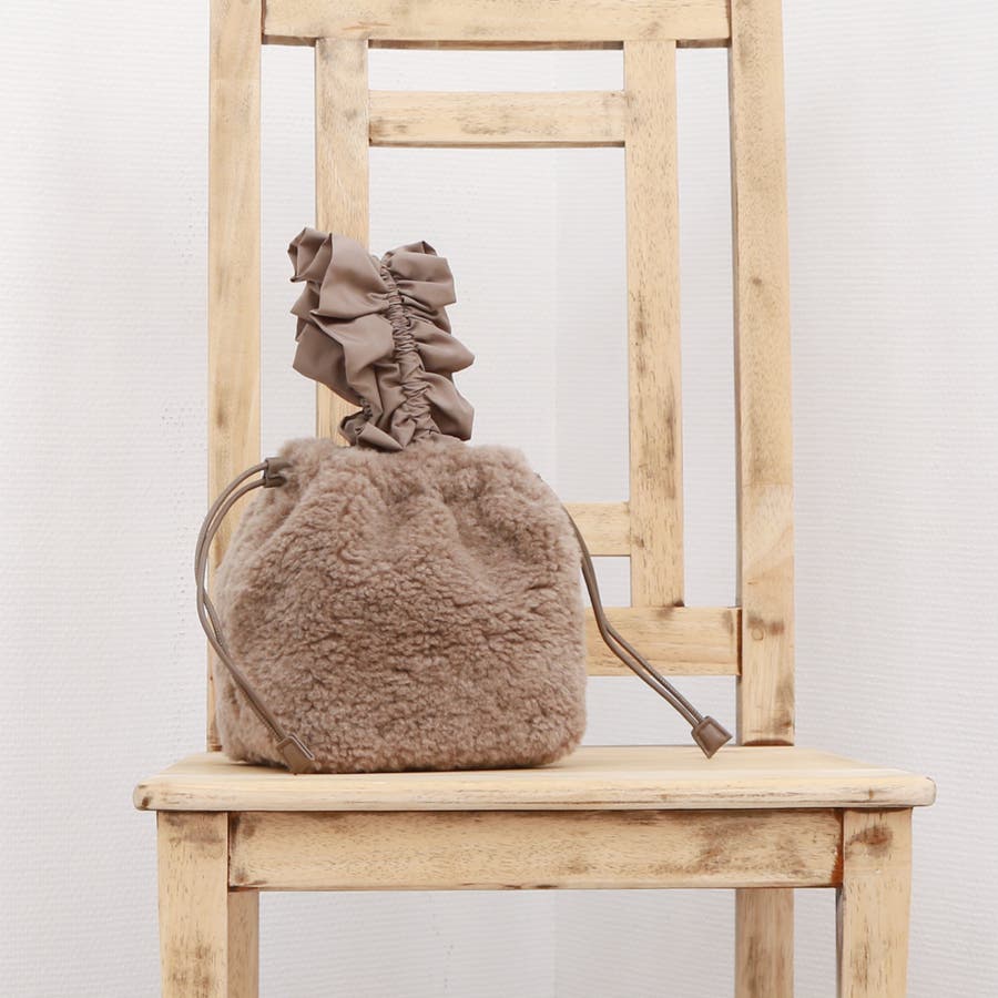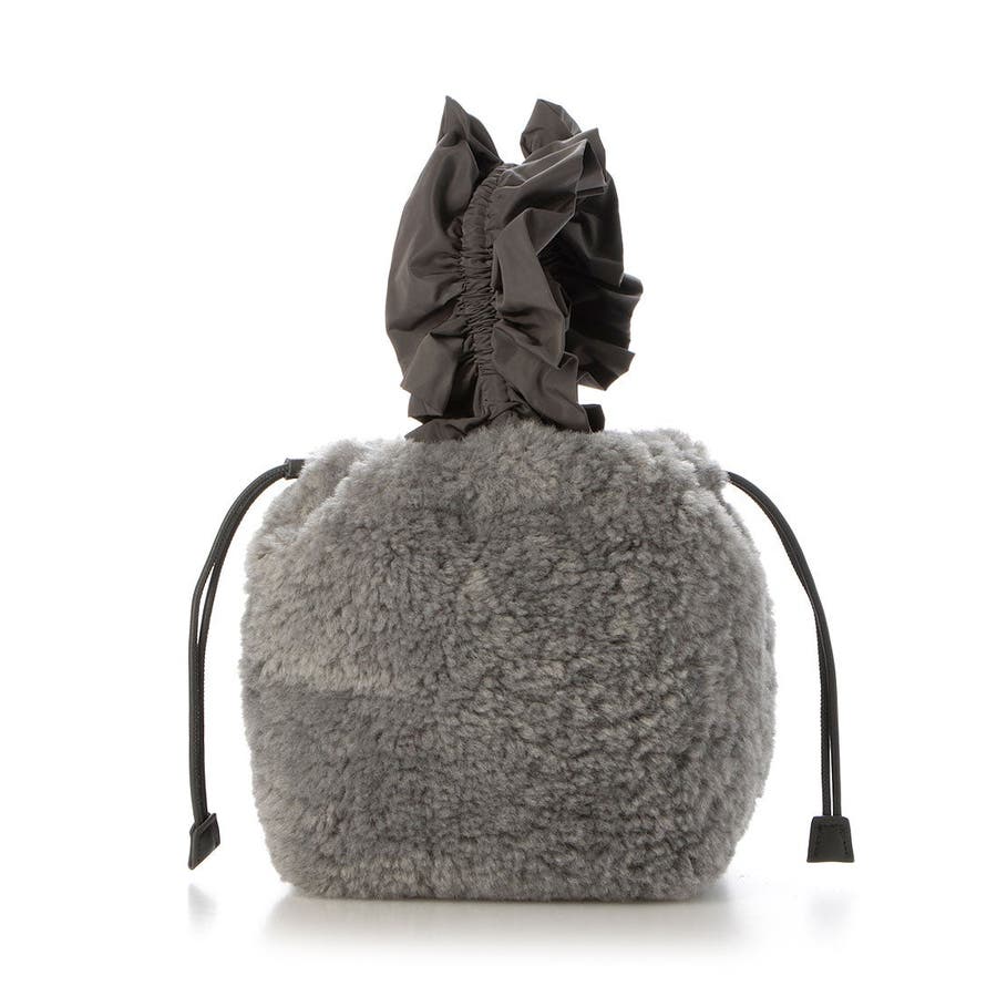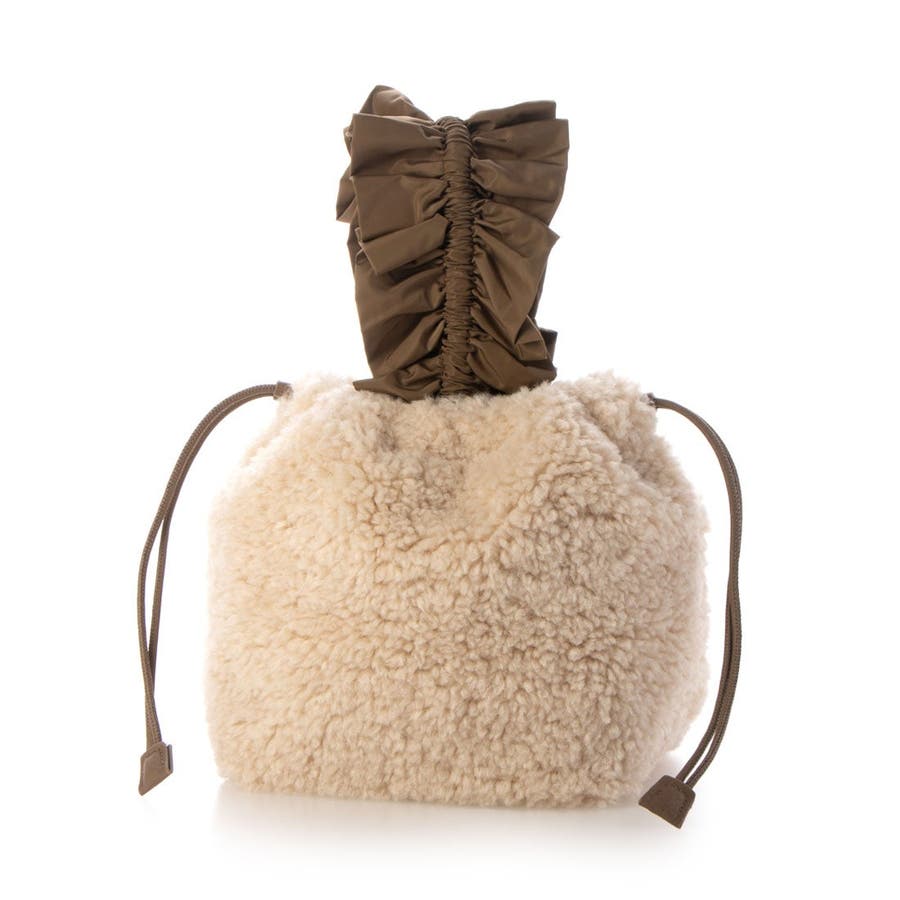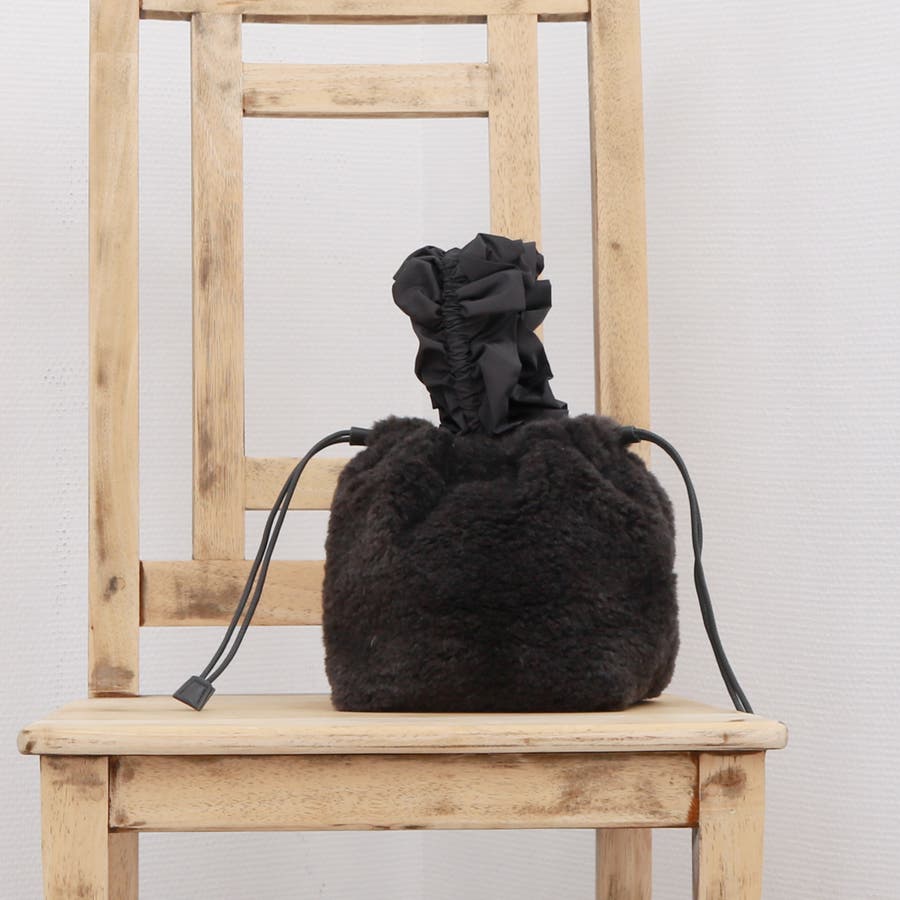 ボリュームフリルがポイントのボア巾着バッグ。