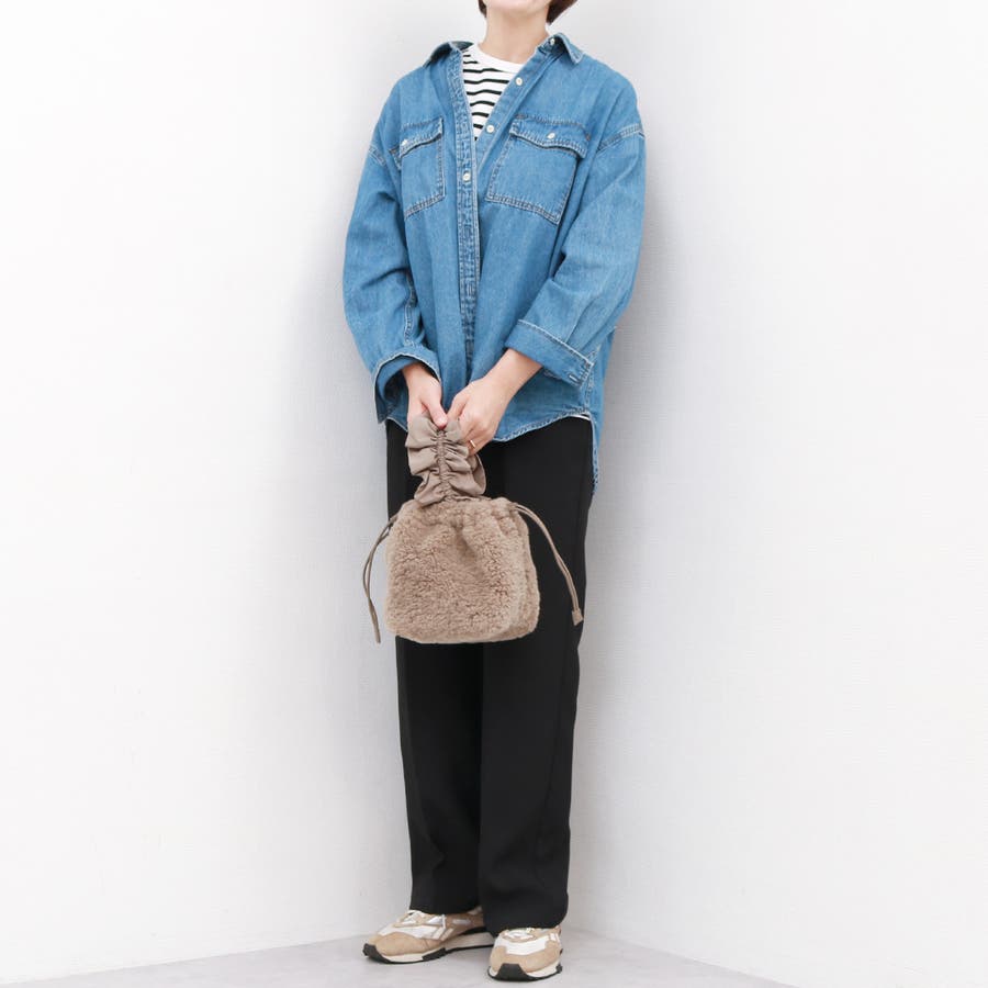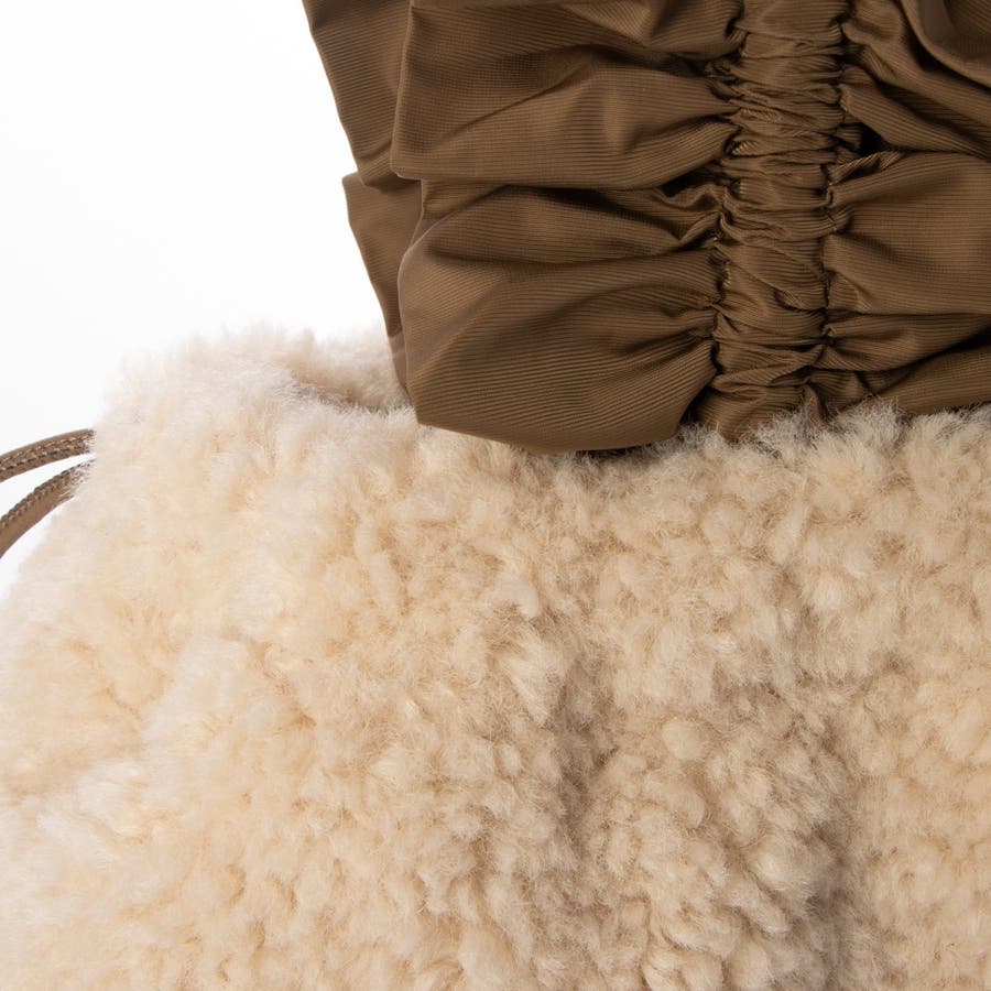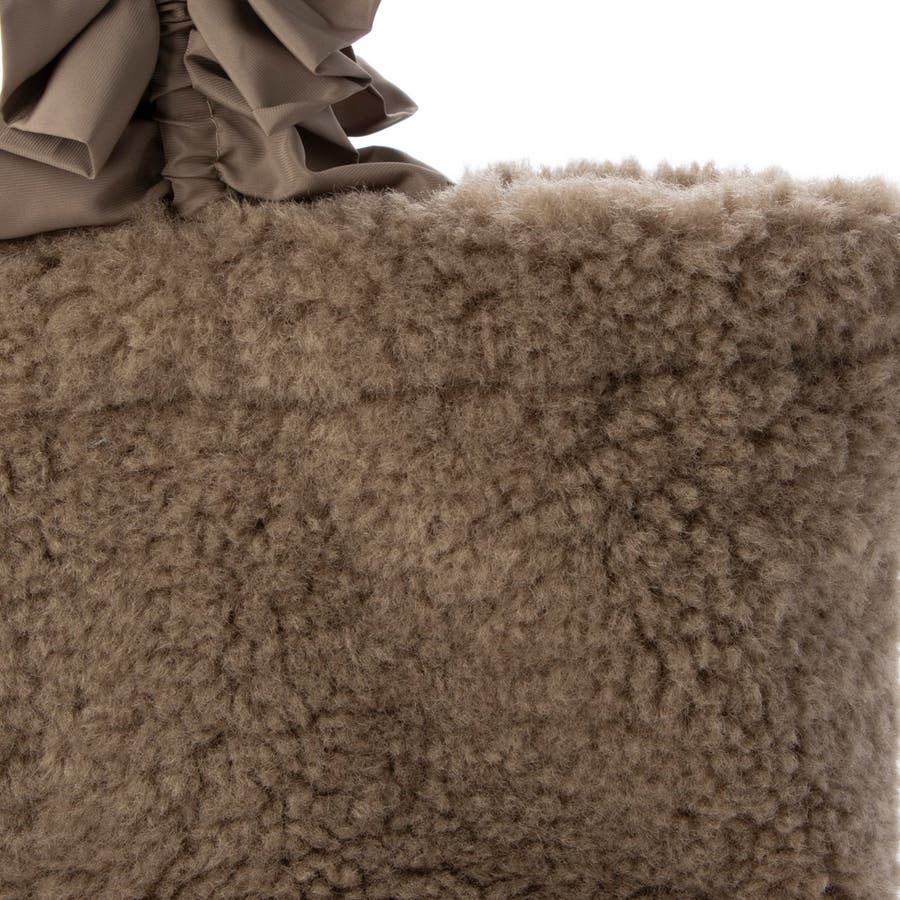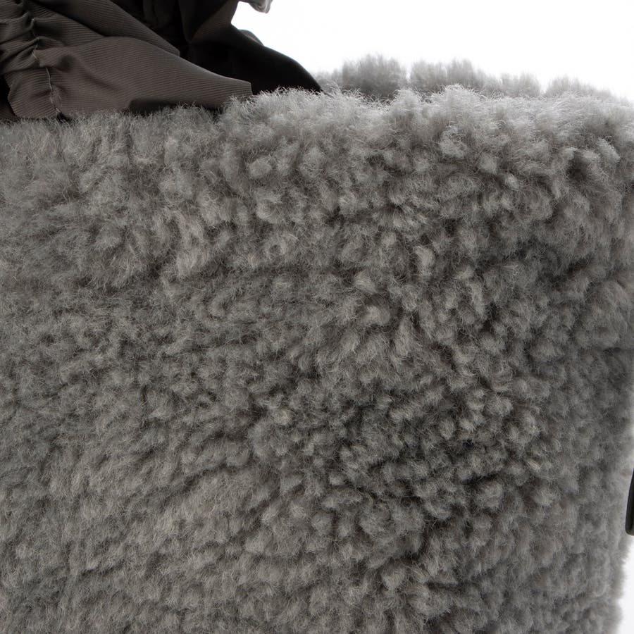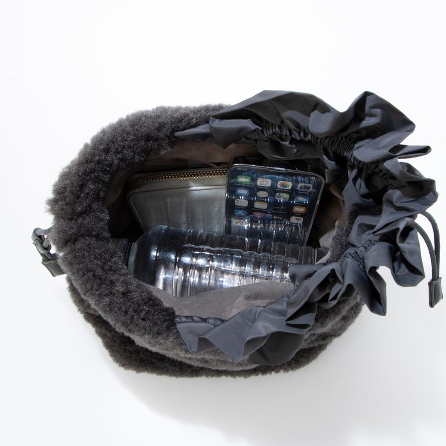 ボリュームフリルがポイントのボア巾着バッグ。